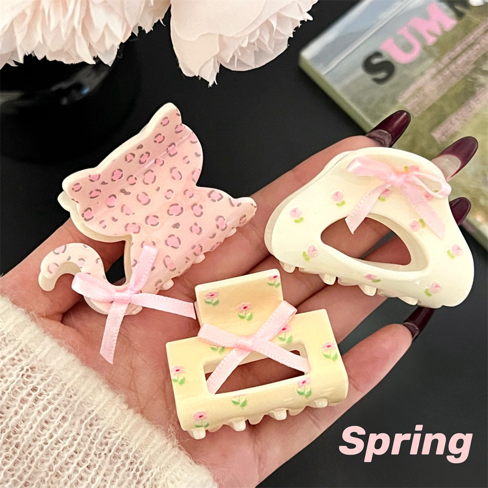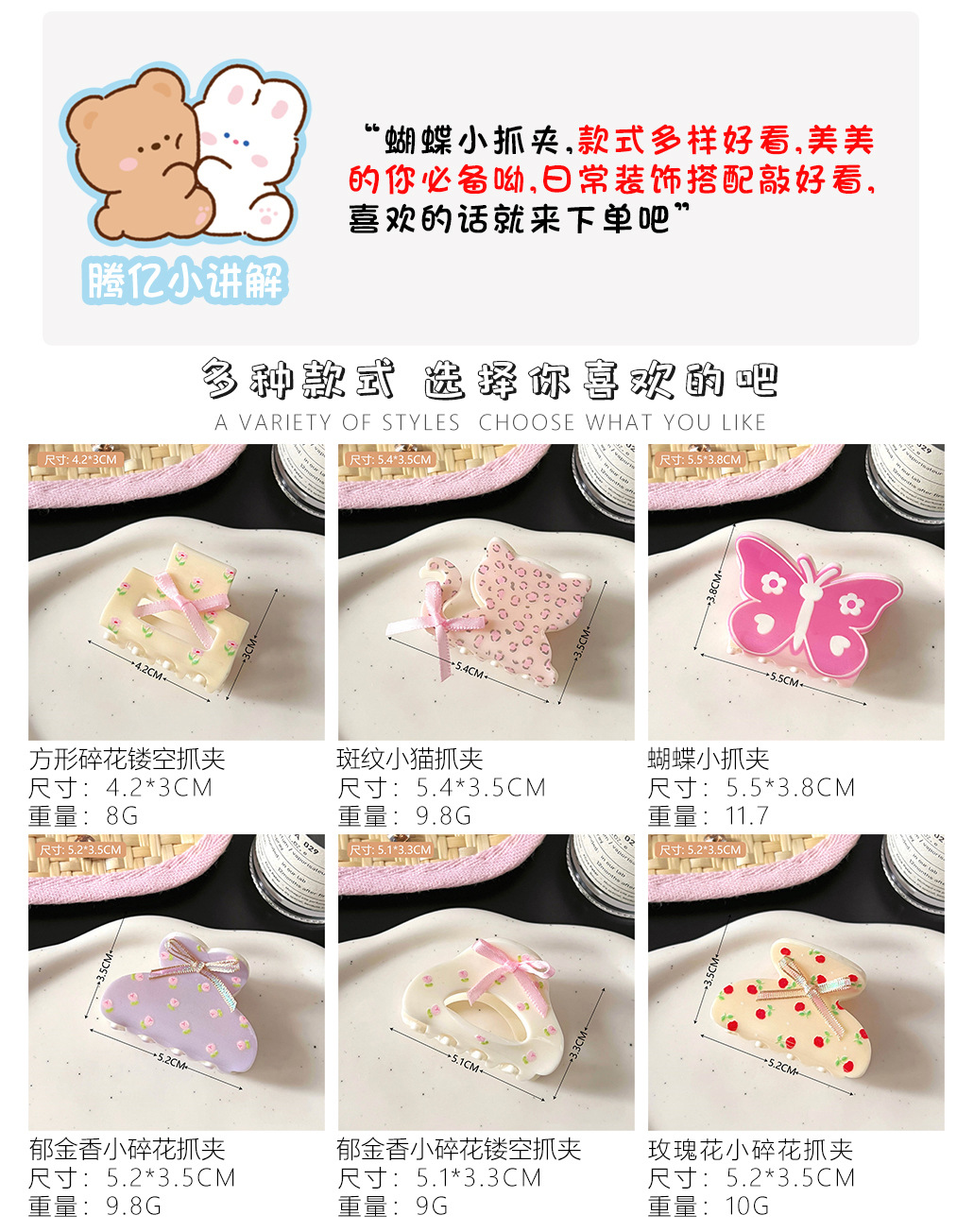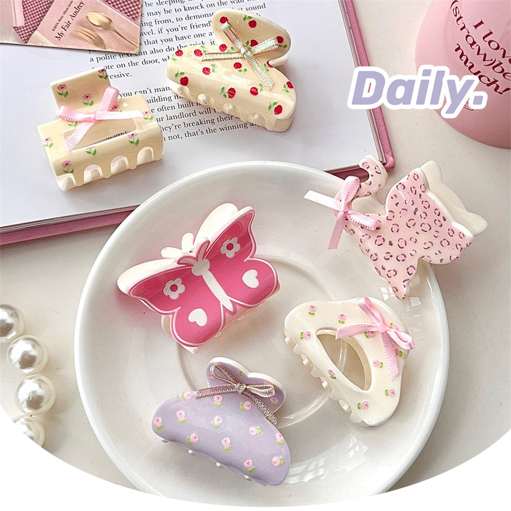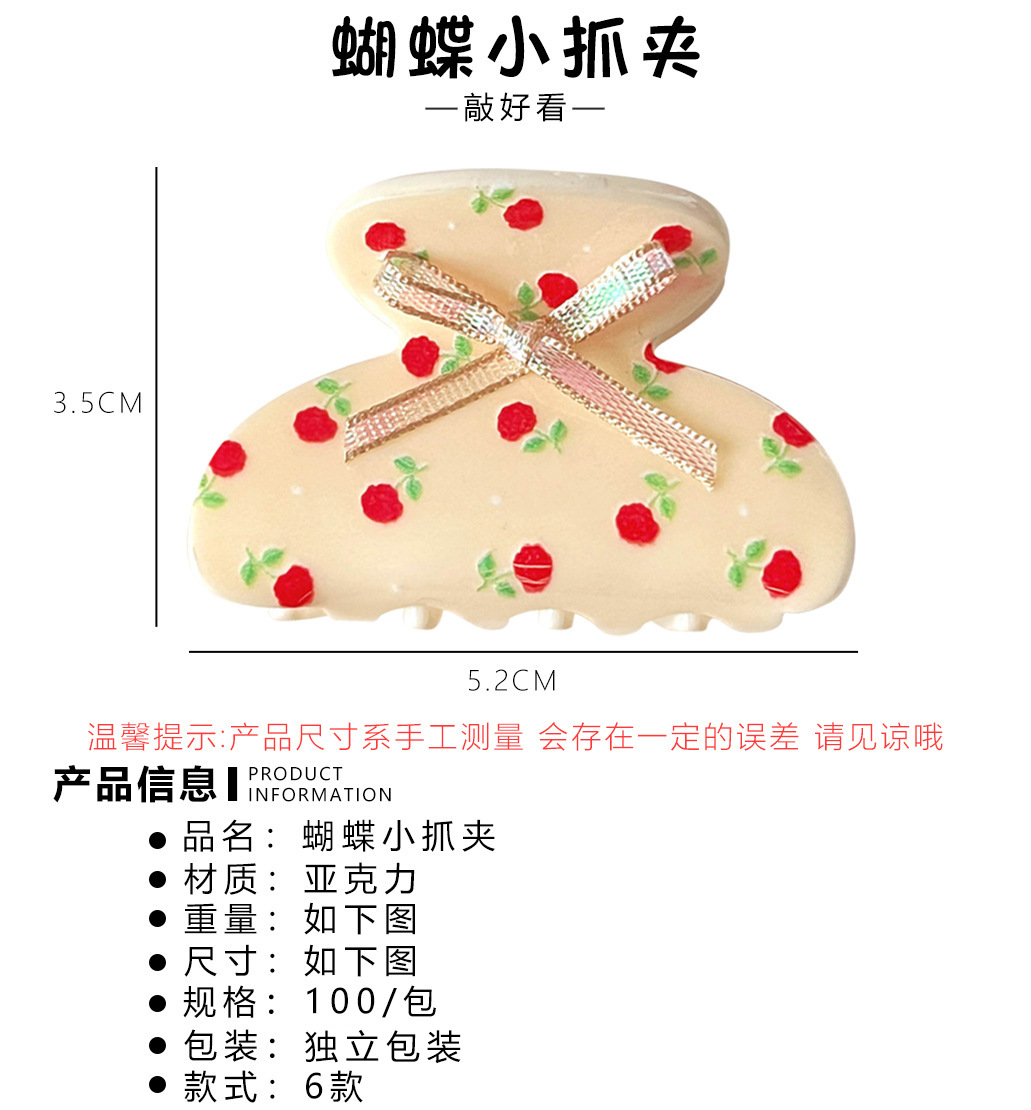 可爱甜美蝴蝶结碎花小抓夹优雅气质鲨鱼夹高级感发夹发卡发饰头饰