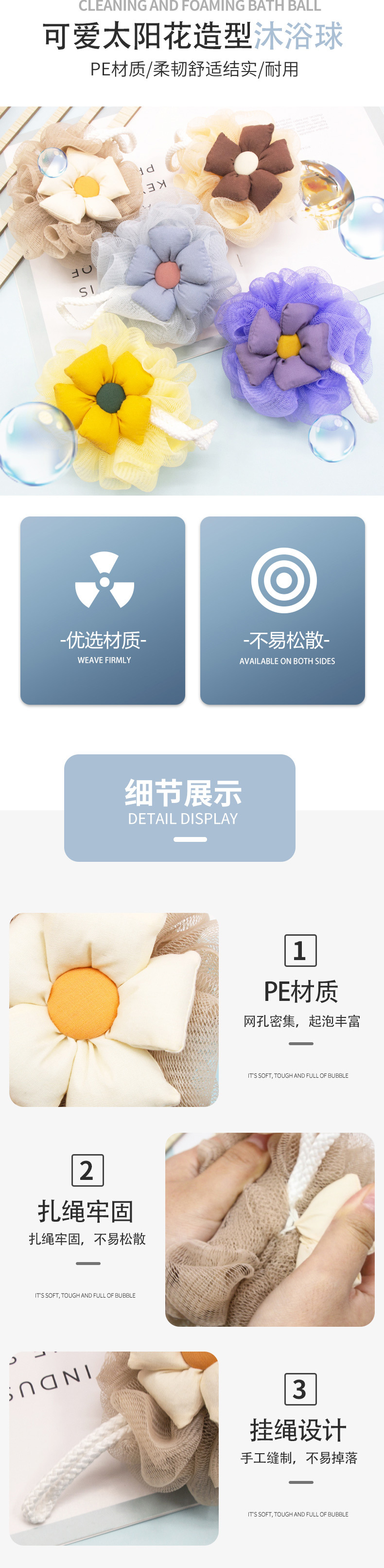 花朵沐浴球不散浴花球可爱搓澡起泡高档儿童洗浴用女沐浴花洗澡巾