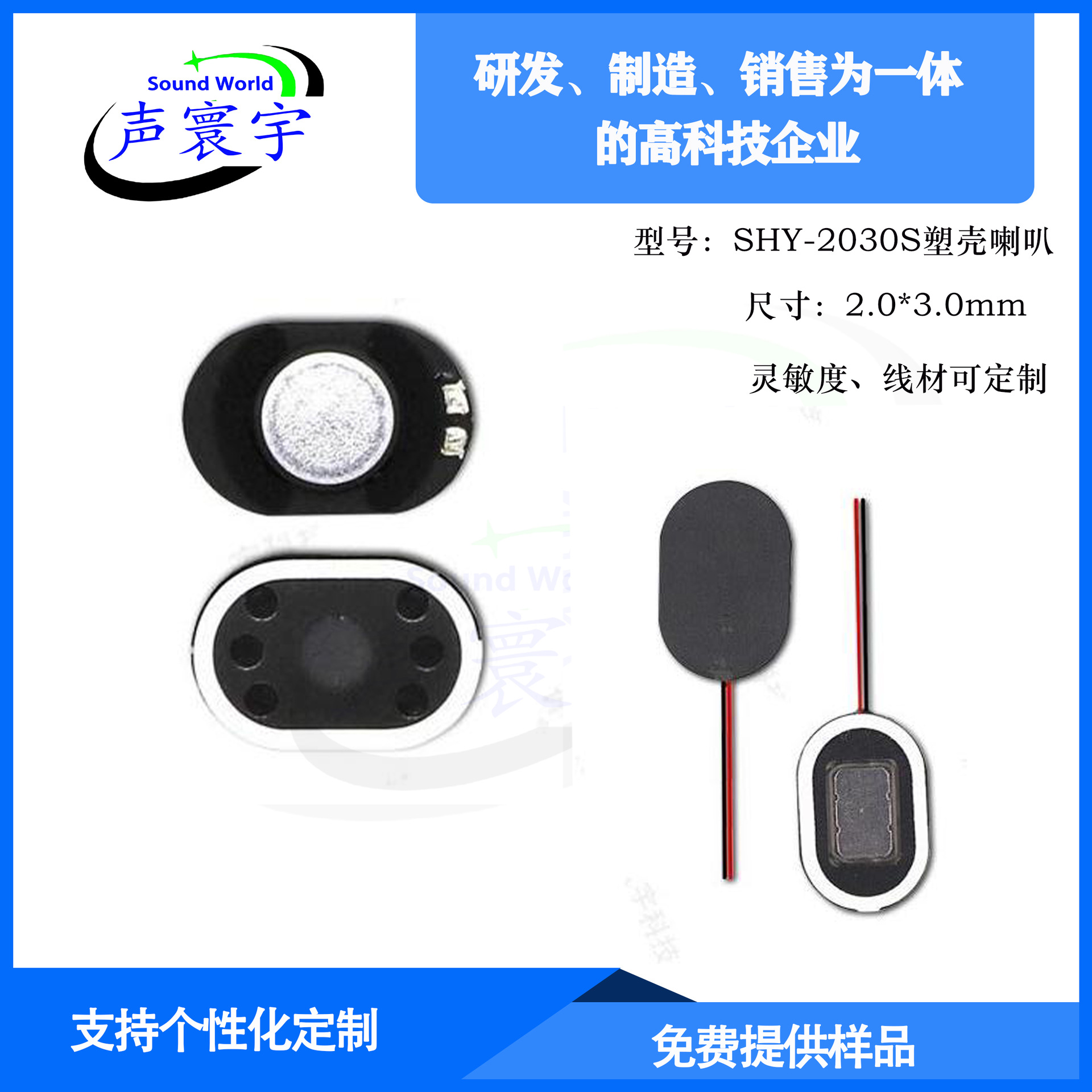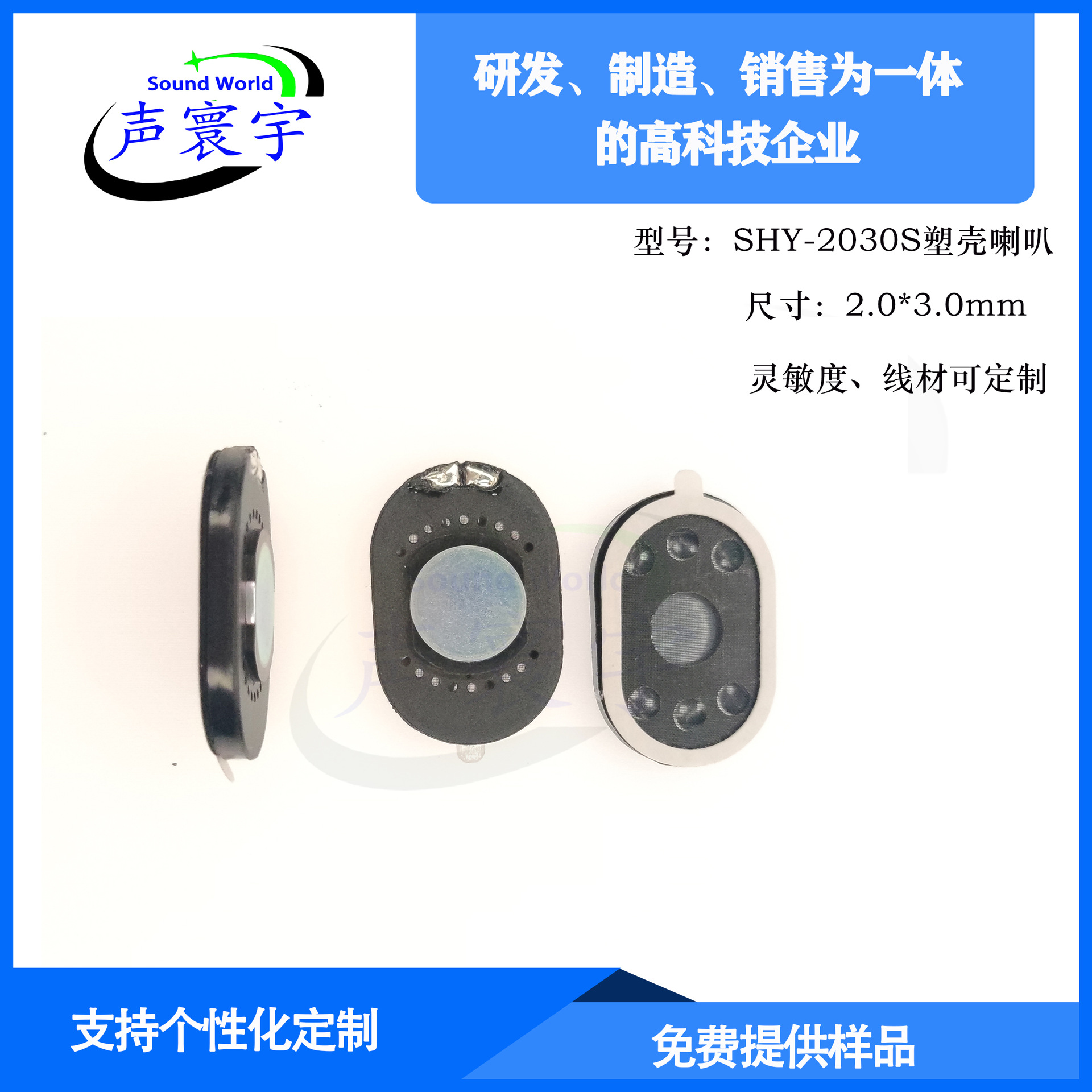 【工厂直供】2030mm喇叭 塑壳椭圆形内磁扬声器30*20mm8欧1瓦喇叭