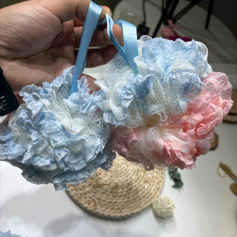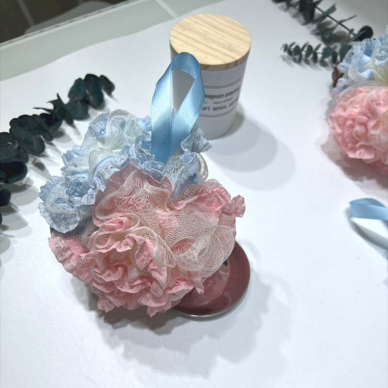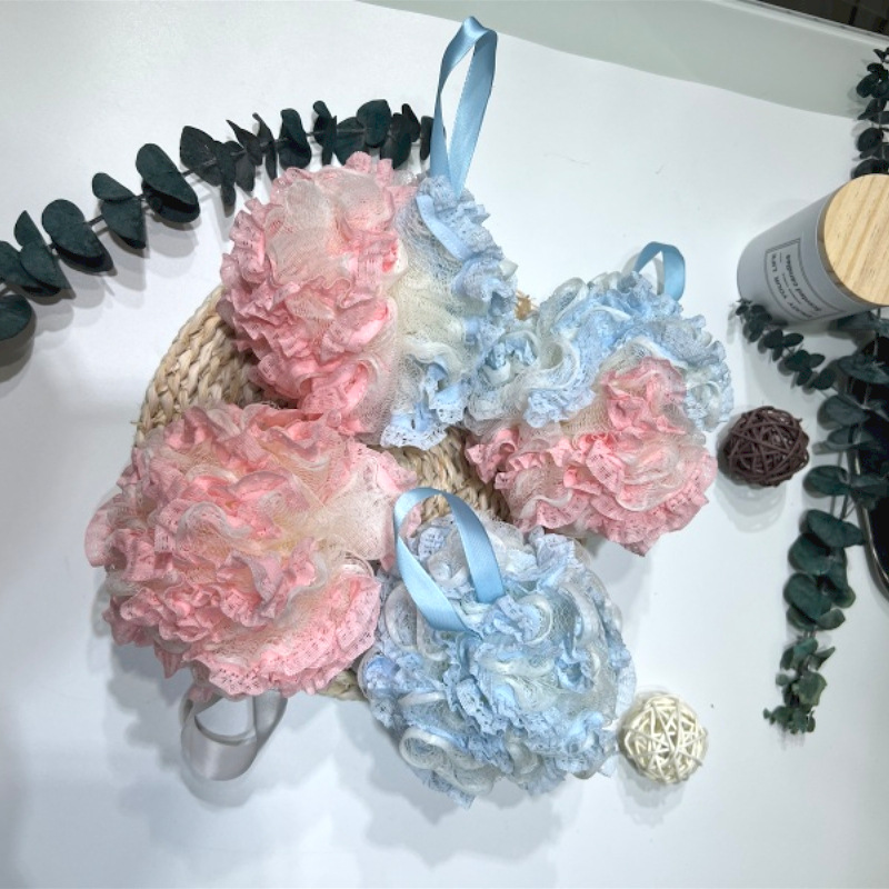 拼色蕾丝沐浴球夏季清新浴花超柔软大号不散高档可爱少女澡巾厂家