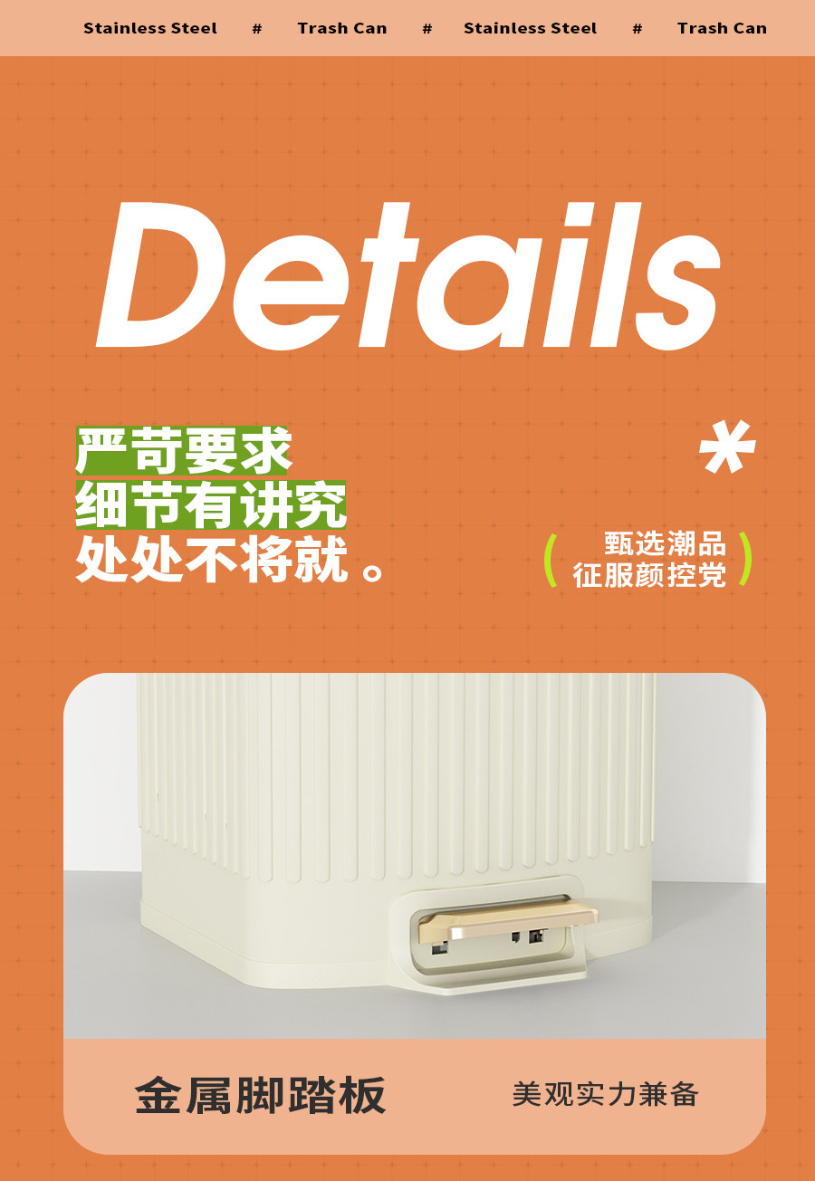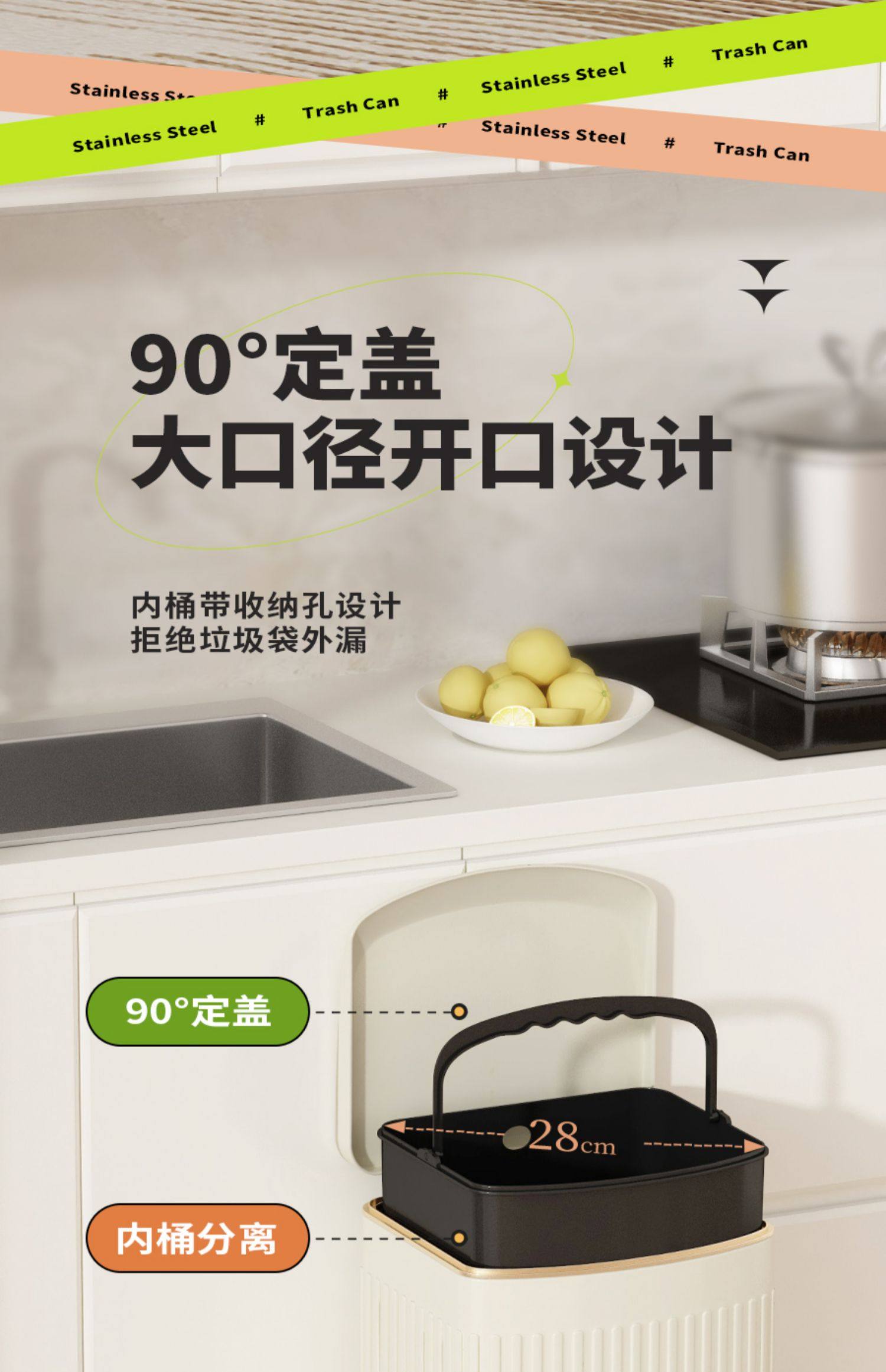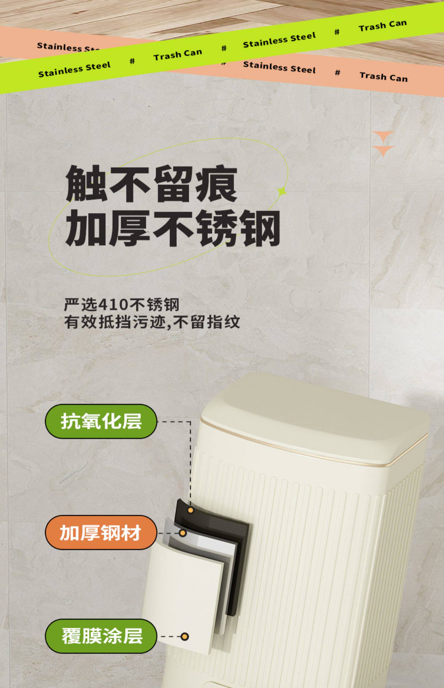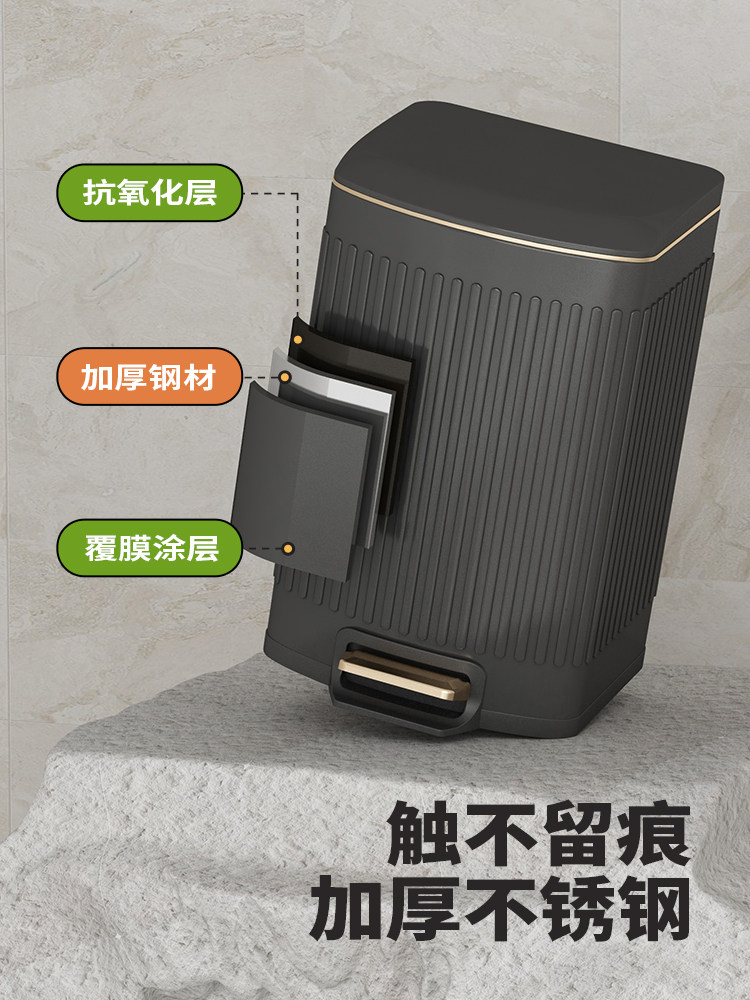 厨房不锈钢垃圾桶家用客厅卫生间厕所脚踩带盖大号容量筒2024新款