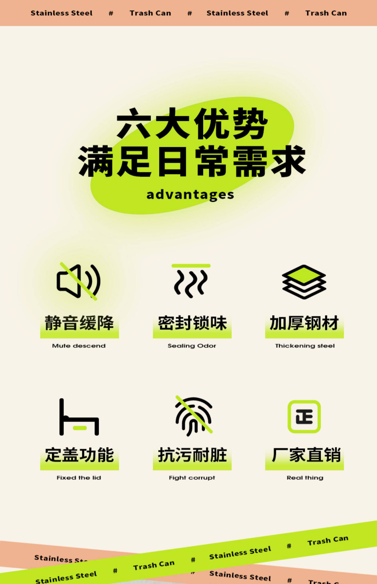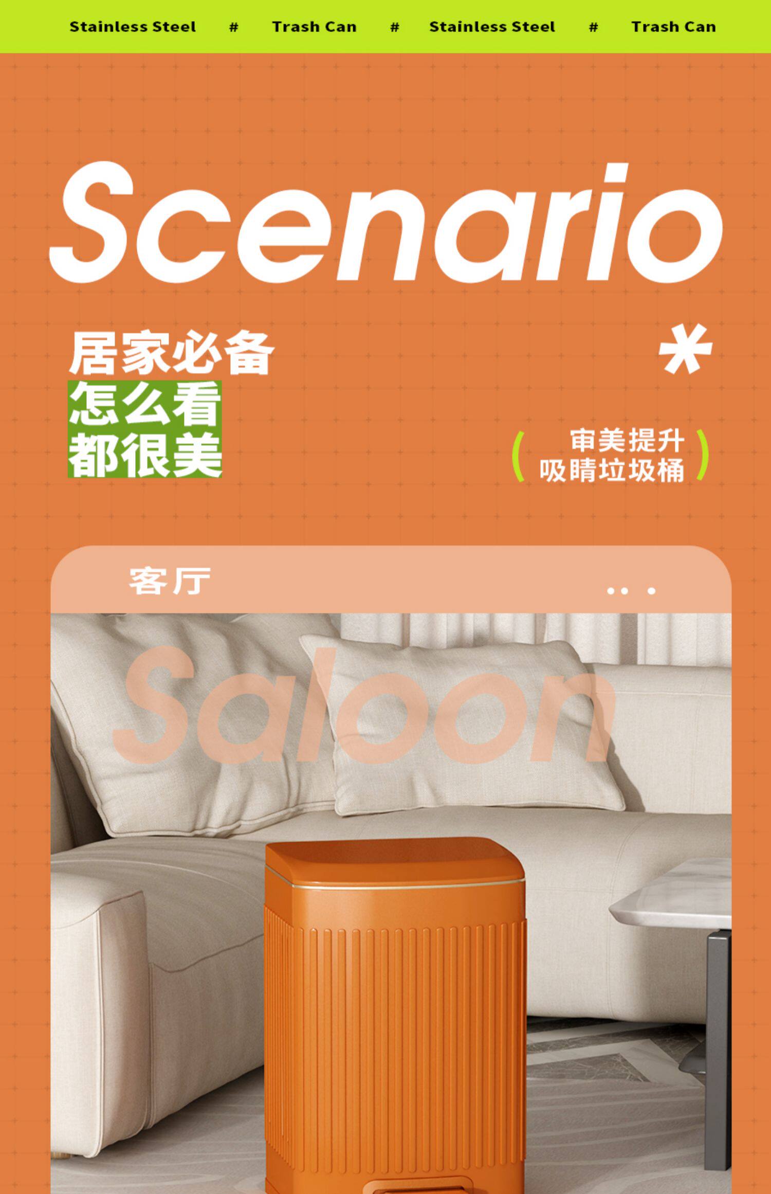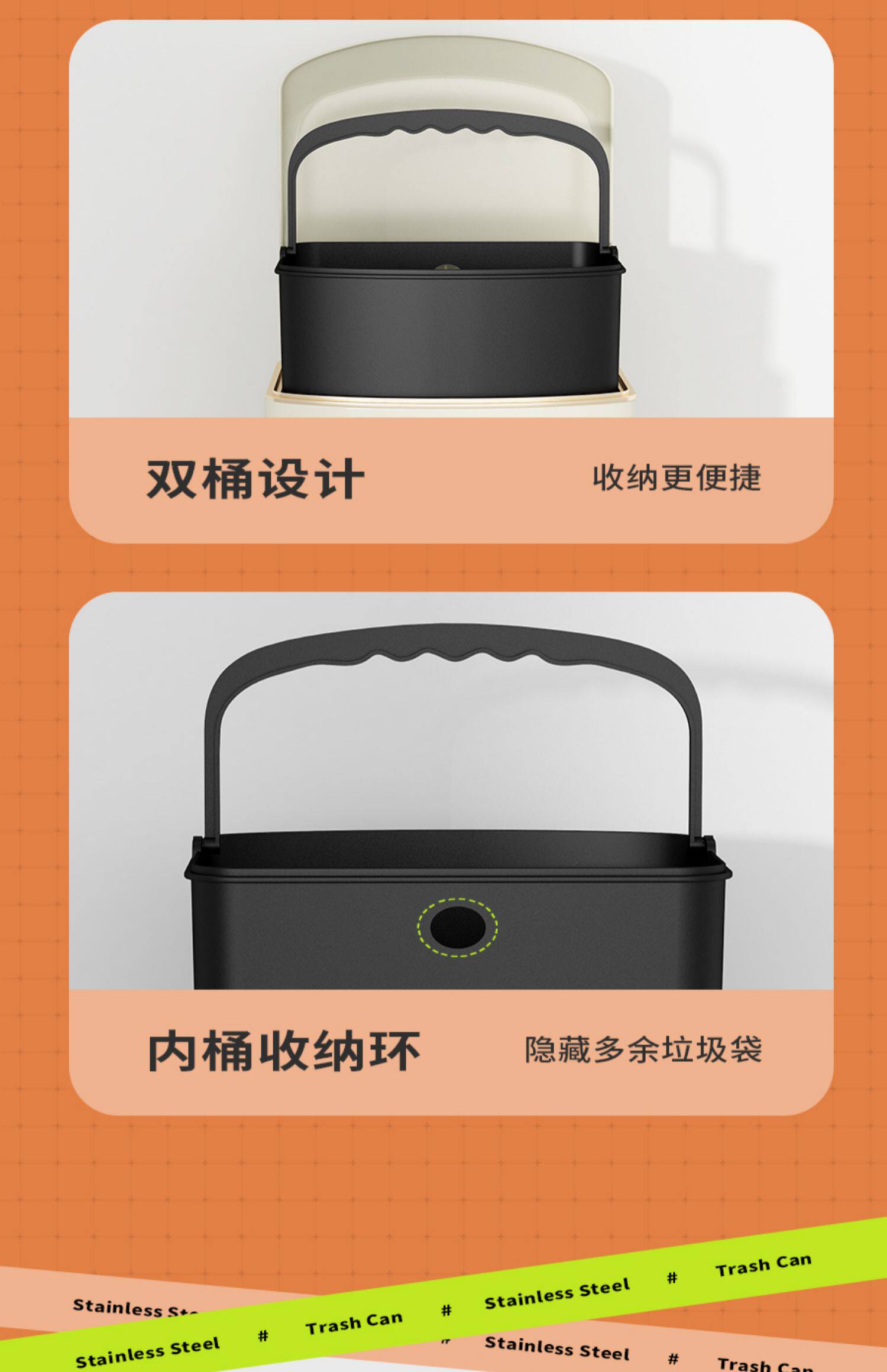 厨房不锈钢垃圾桶家用客厅卫生间厕所脚踩带盖大号容量筒2024新款