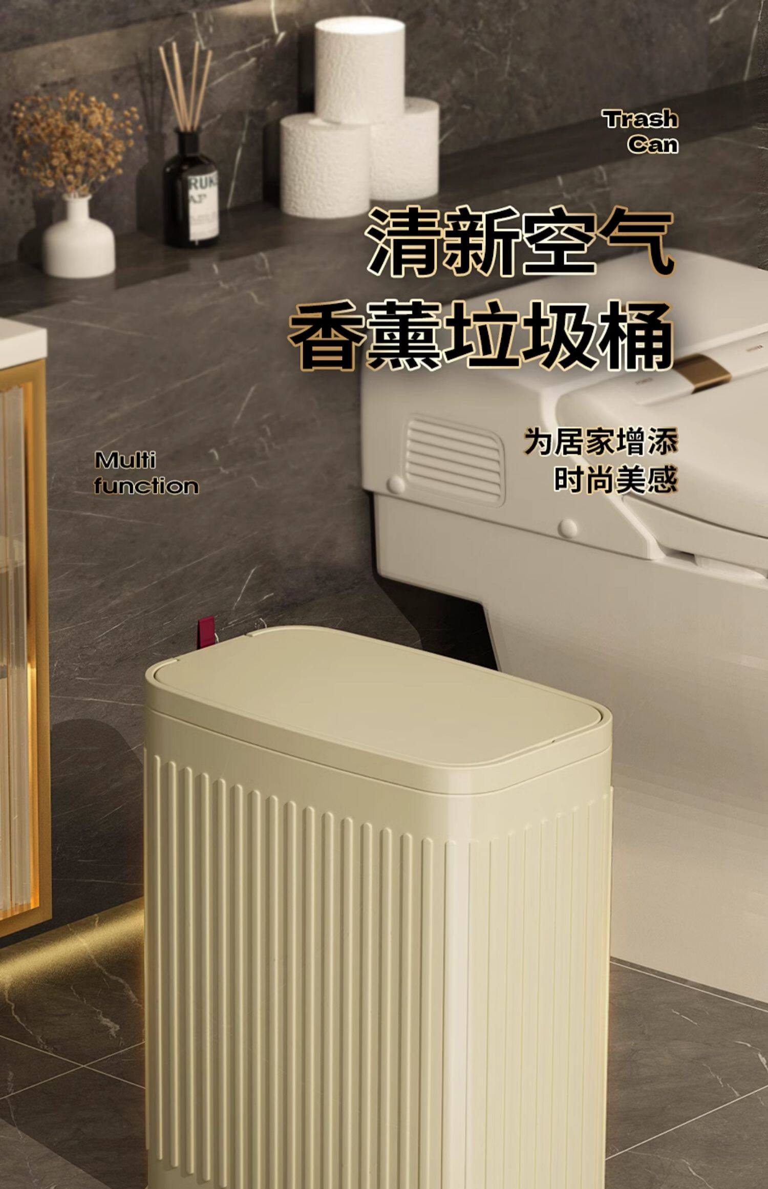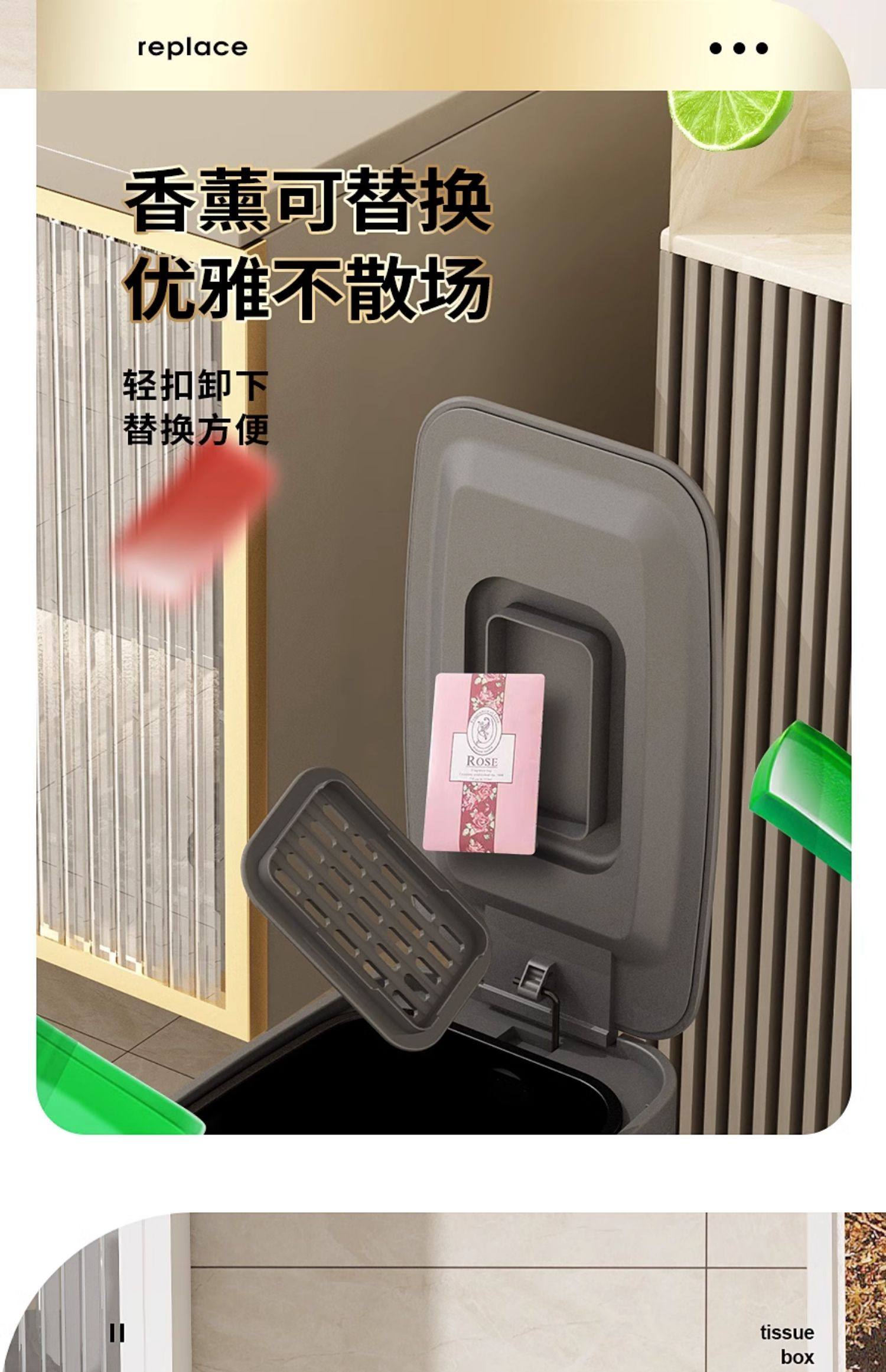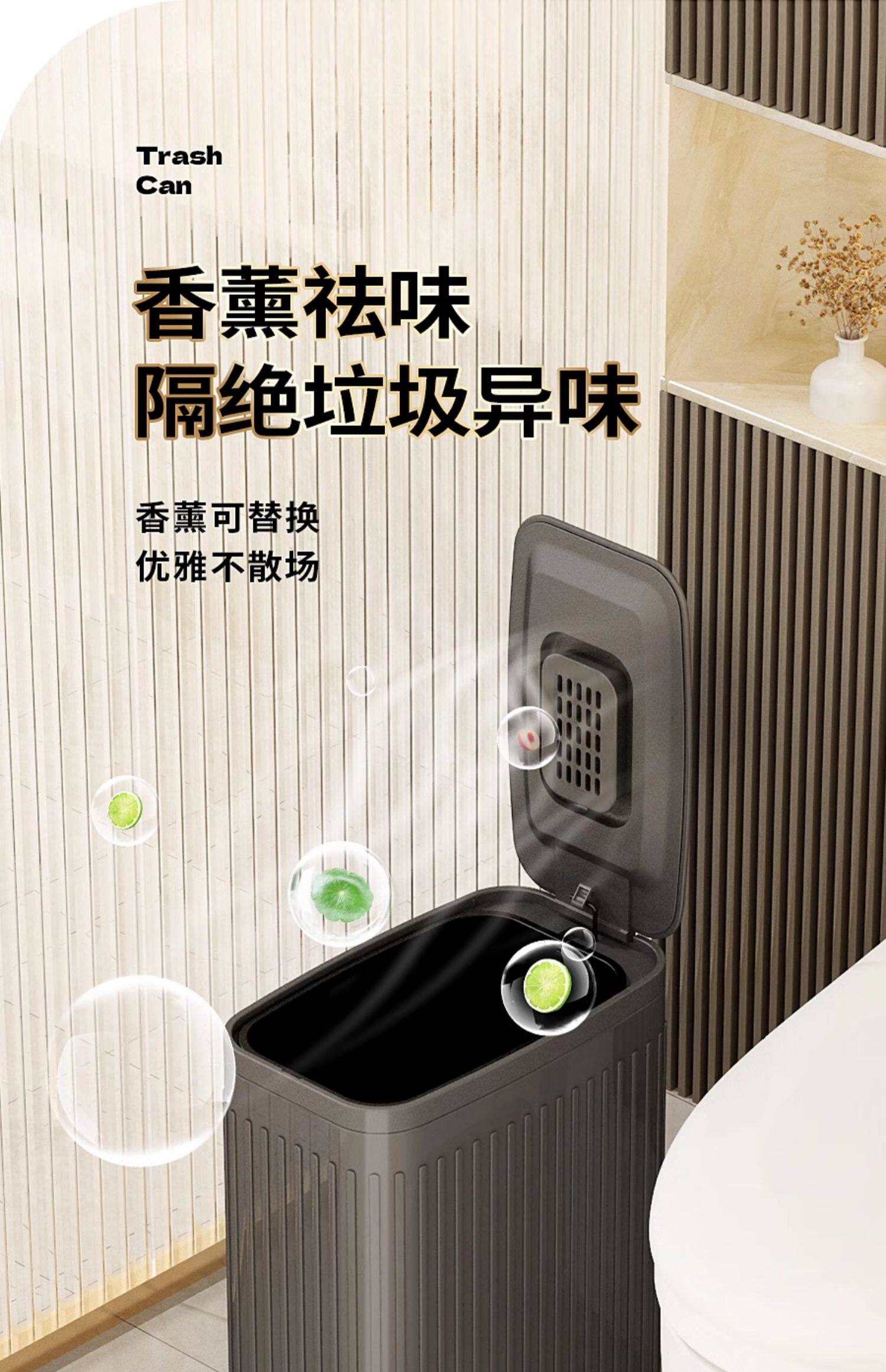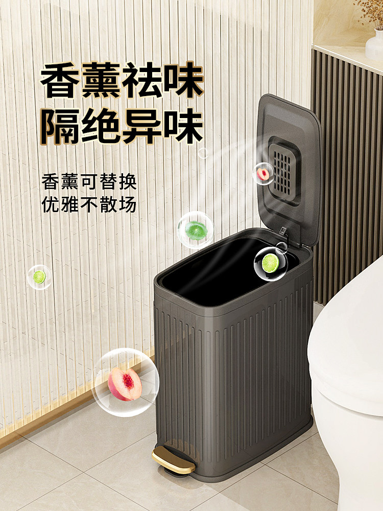 香薰垃圾桶家用2023新款不锈钢带盖客厅轻奢厕所卫生间夹缝脚踏式