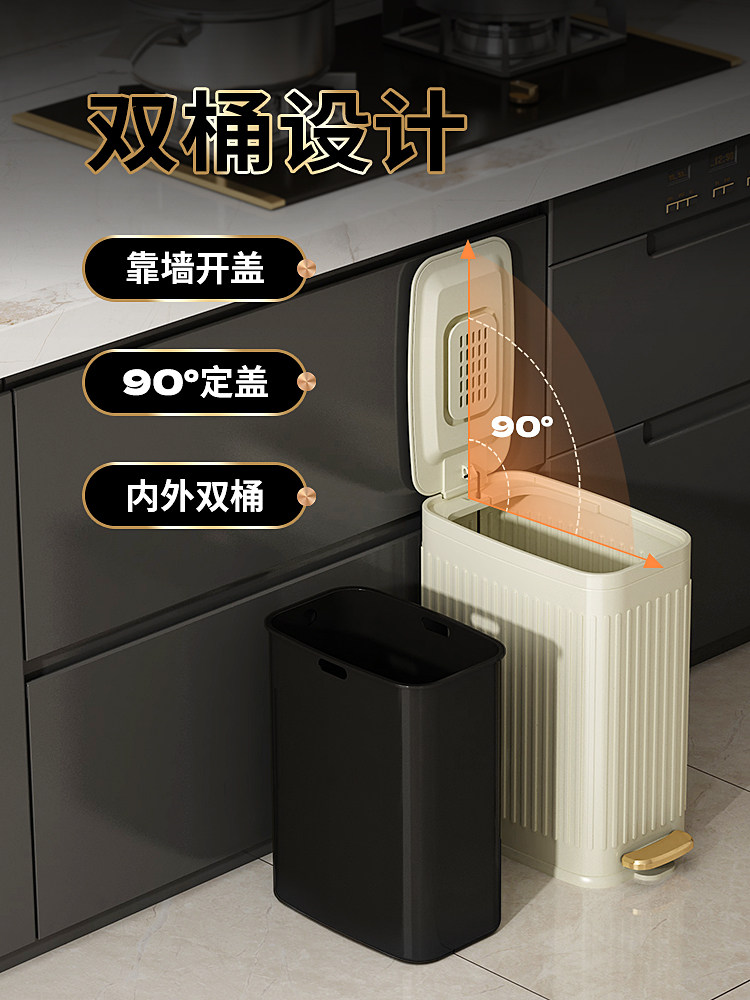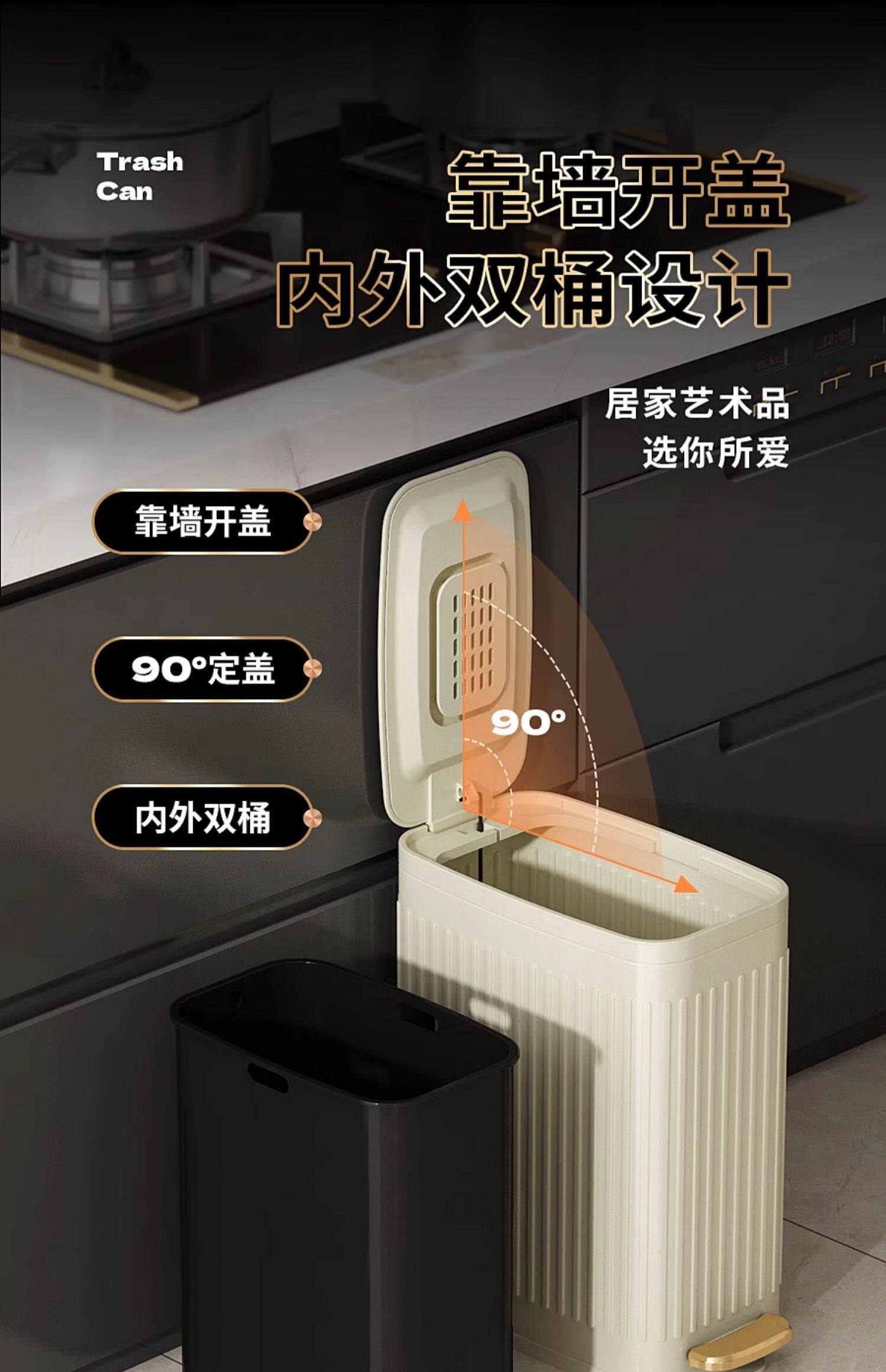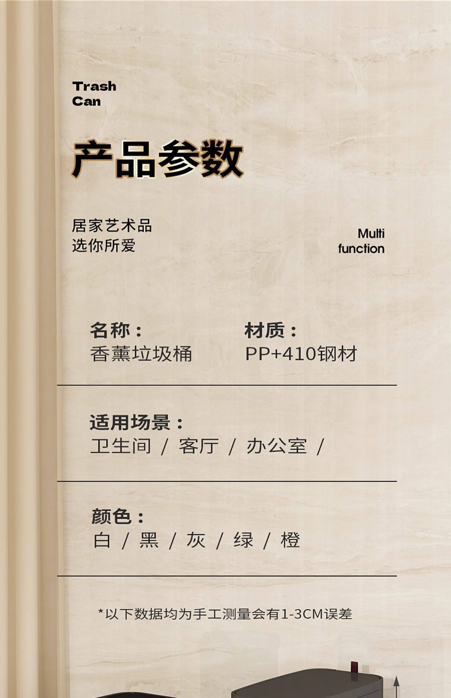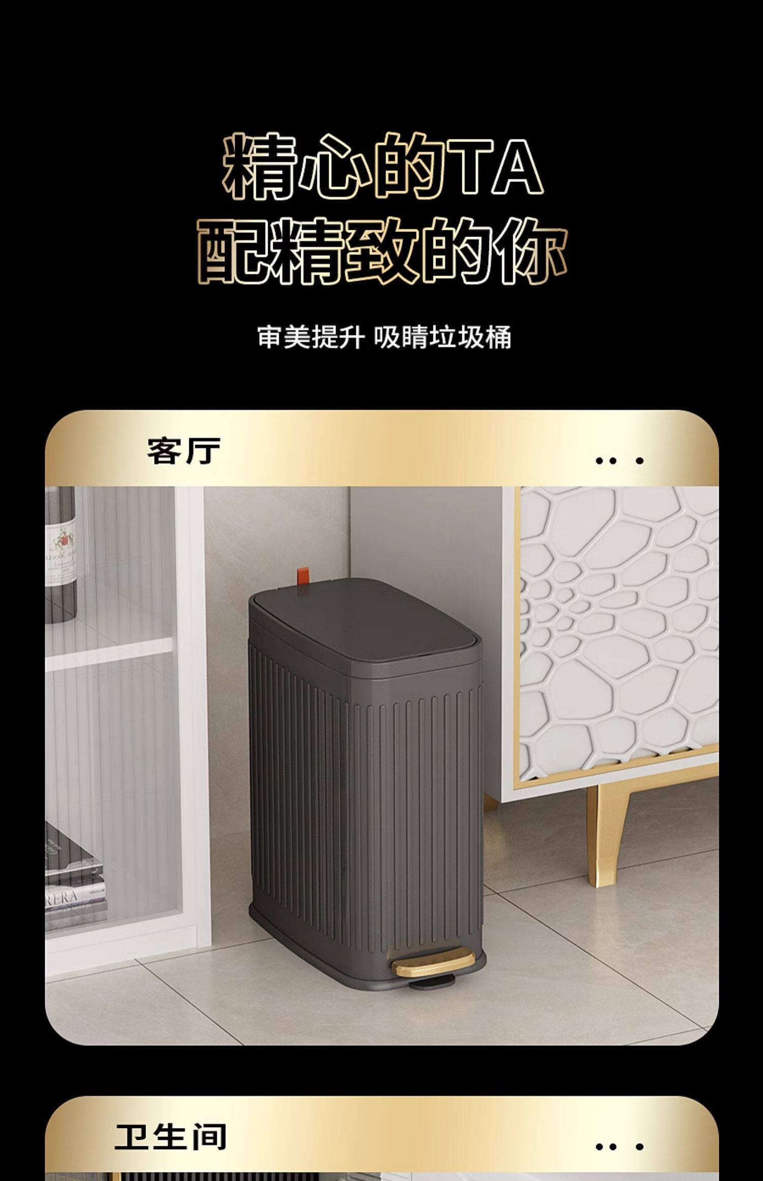 香薰垃圾桶家用2023新款不锈钢带盖客厅轻奢厕所卫生间夹缝脚踏式