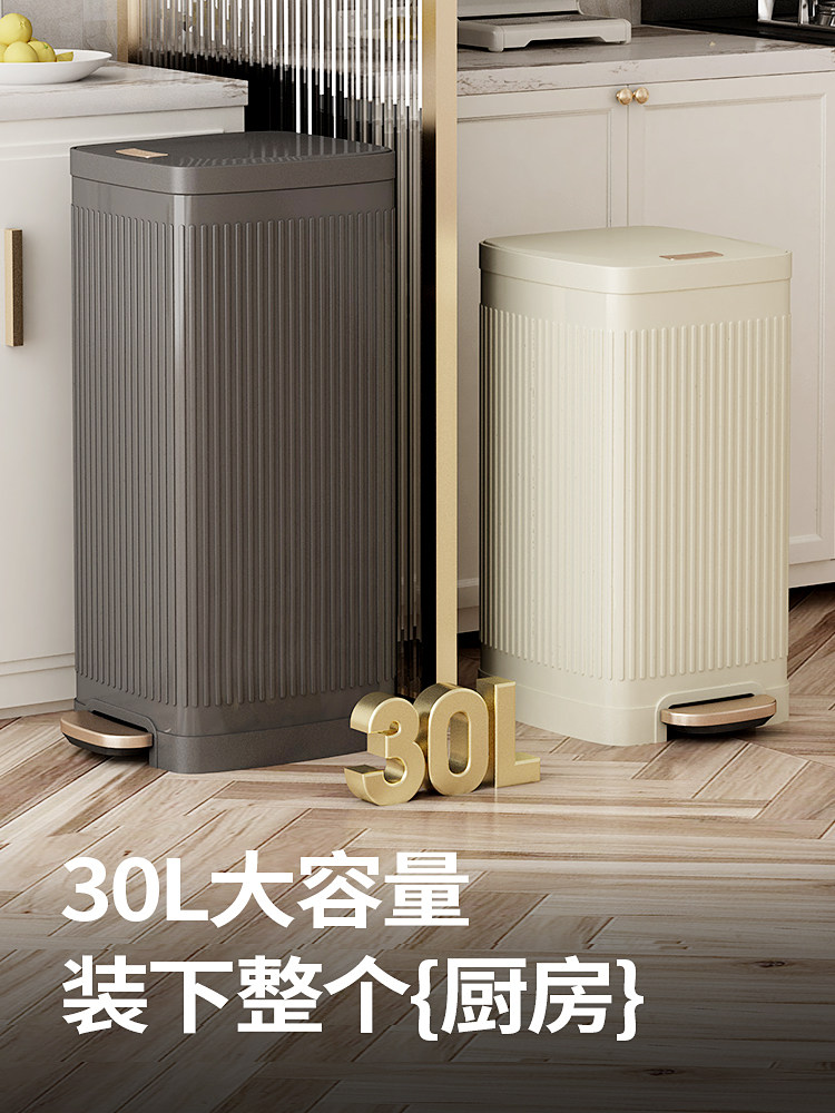 JF不锈钢垃圾桶厨房专用家用超大号脚踏式带盖大容量商用酒店30升