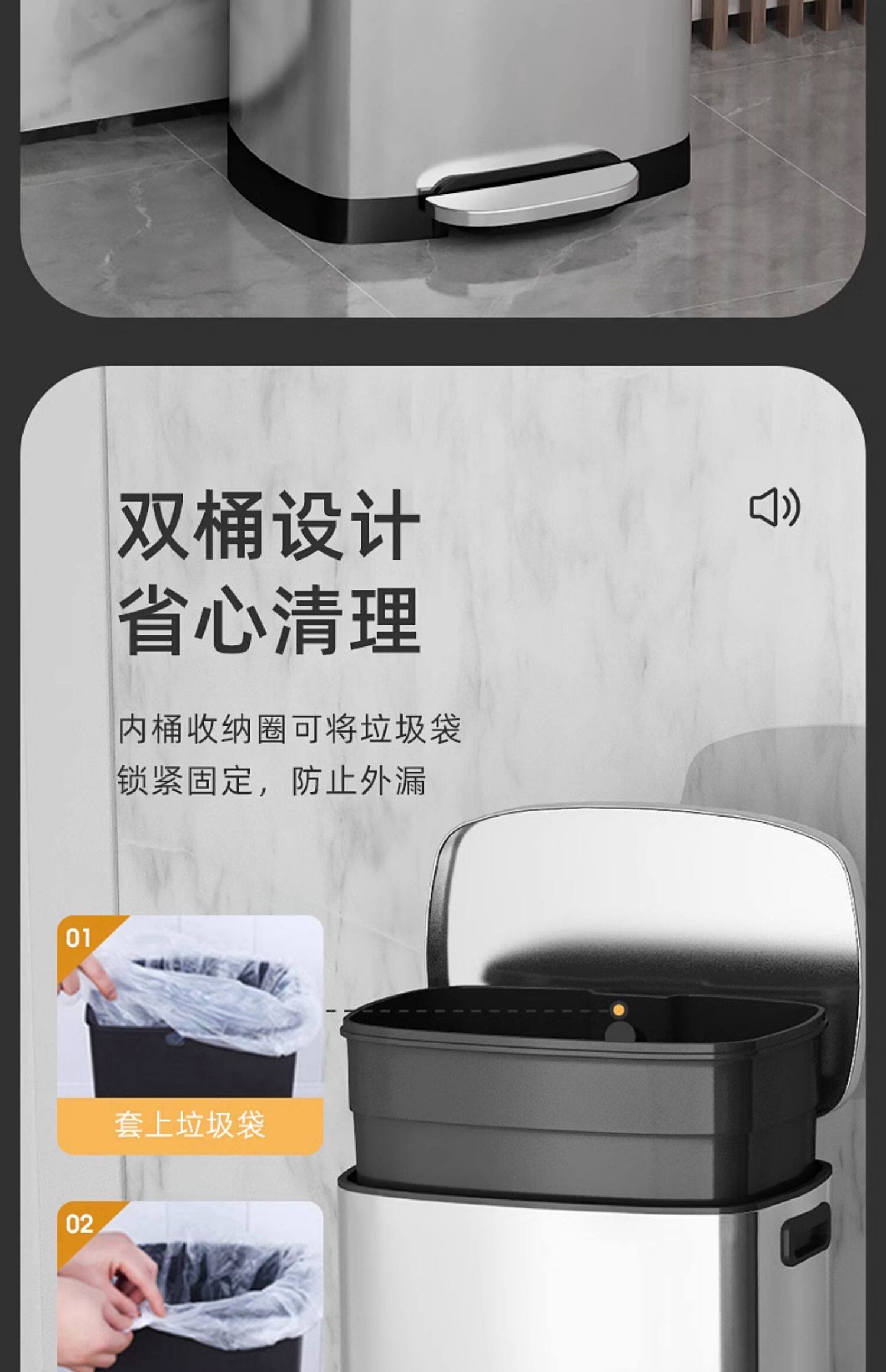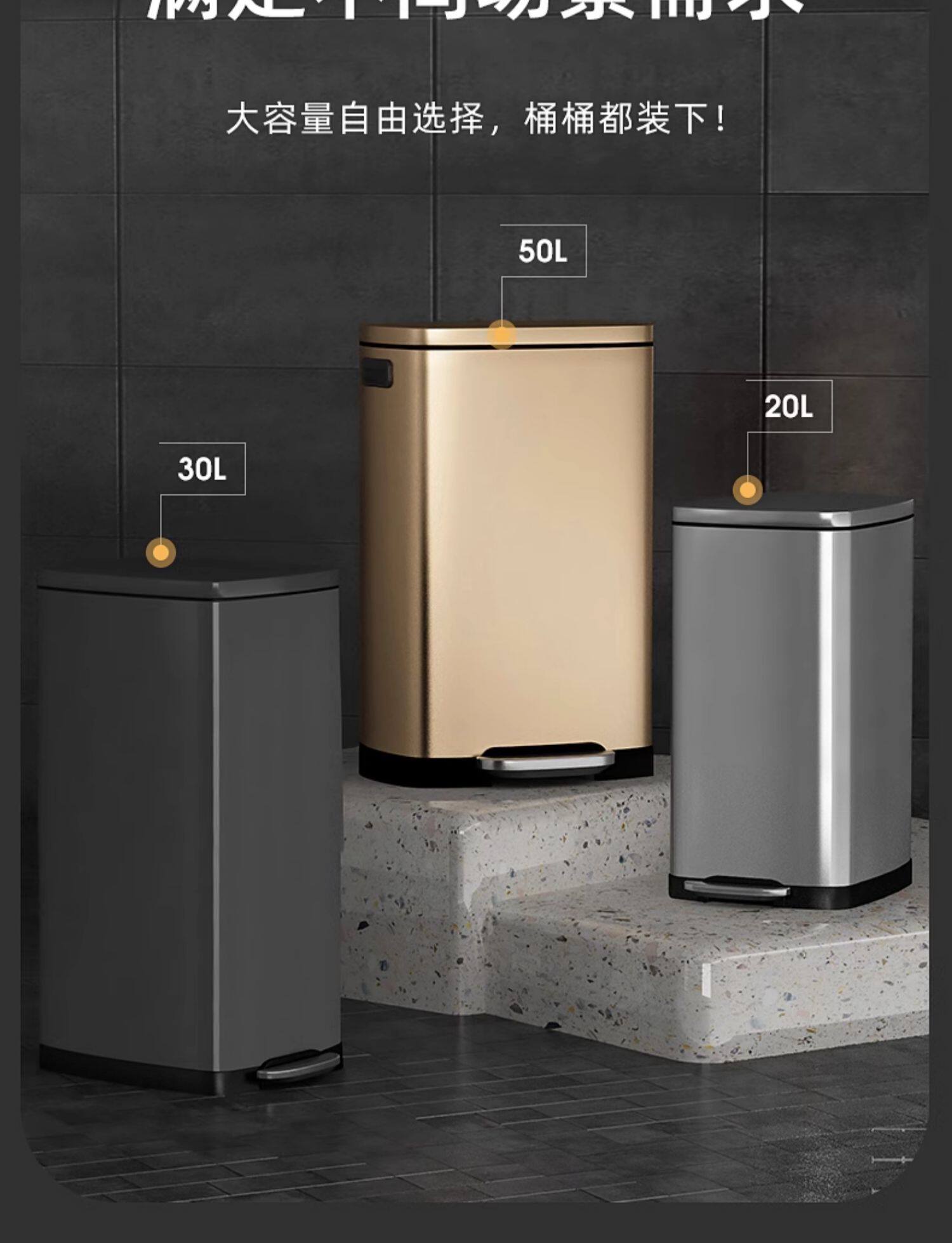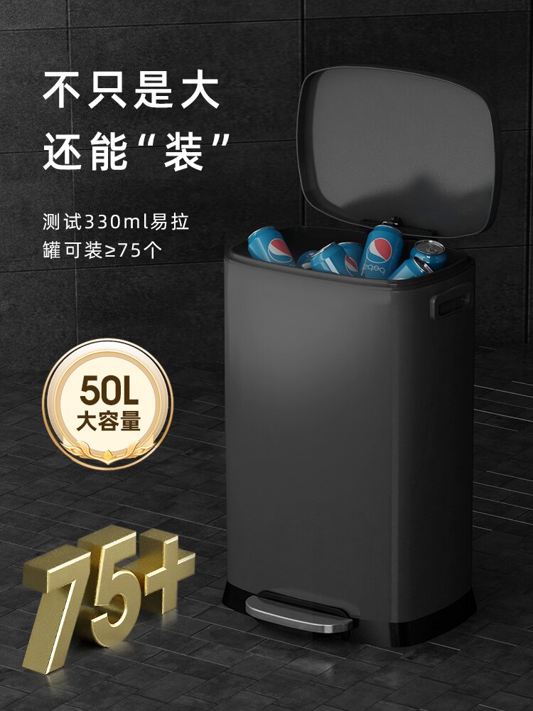 厨房专用商用垃圾桶家用大户型脚踏式大容量不锈钢垃圾桶带盖50升