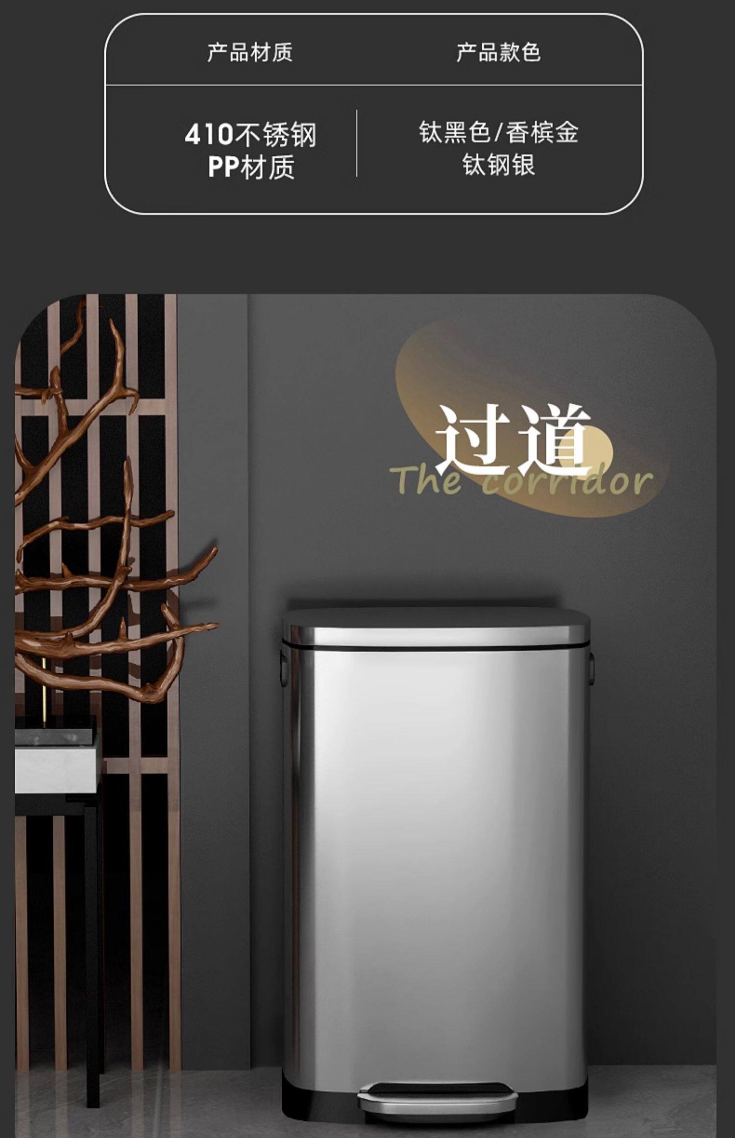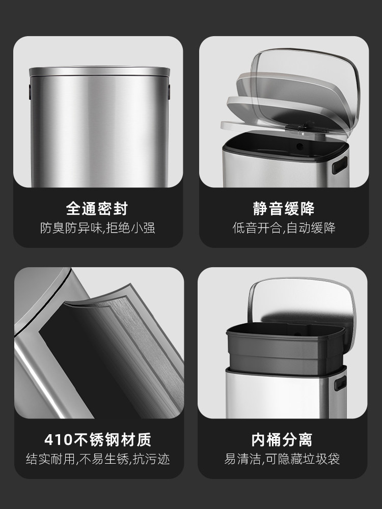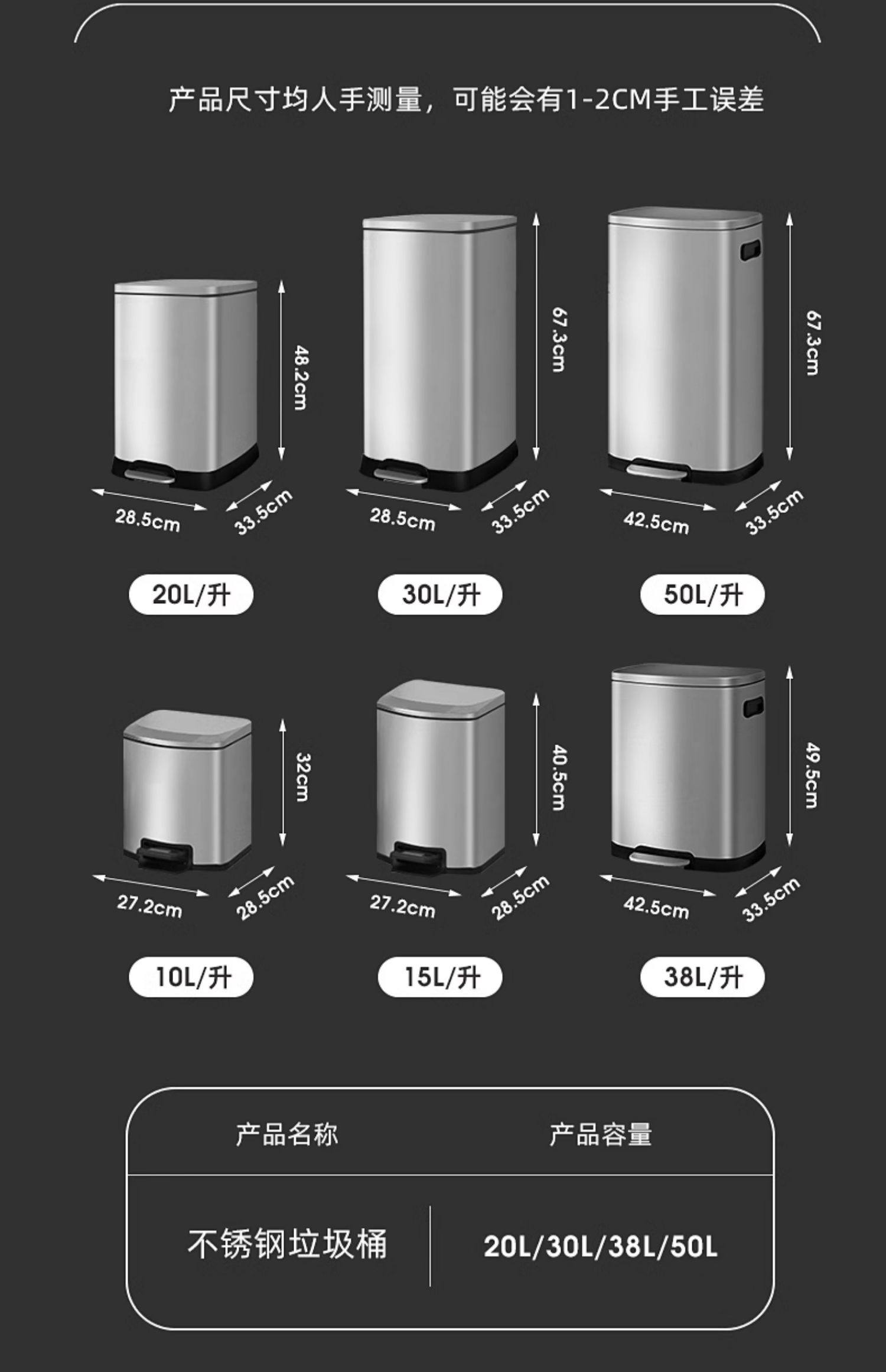 厨房专用商用垃圾桶家用大户型脚踏式大容量不锈钢垃圾桶带盖50升
