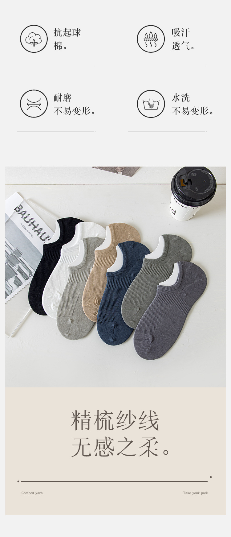 24年春夏新款袜子男短袜网眼透气抗起球浅口隐形袜运动束腰船袜男