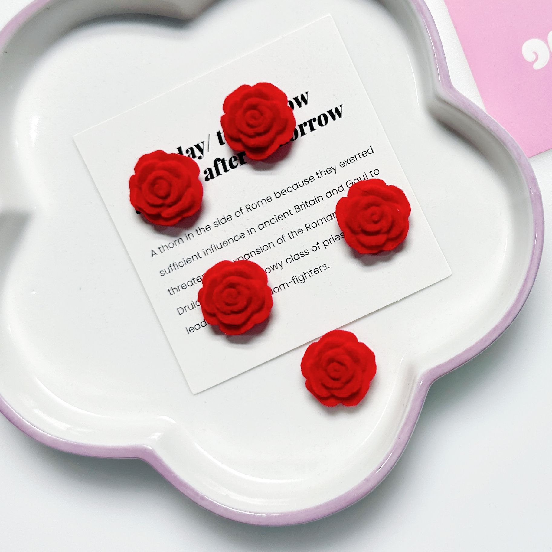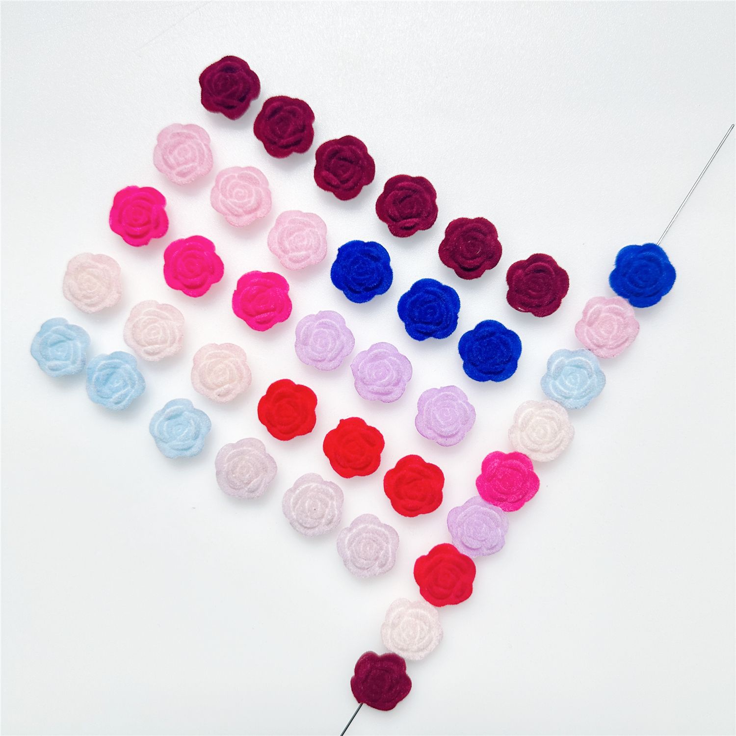 立体植绒玫瑰花 浪漫花朵山茶花19mm彩色通孔diy材料奶油胶配件