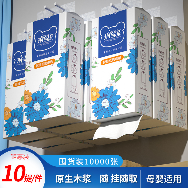 批发10提挂式抽纸巾原生浆大包餐巾纸加厚壁挂式底部悬挂卫生抽纸