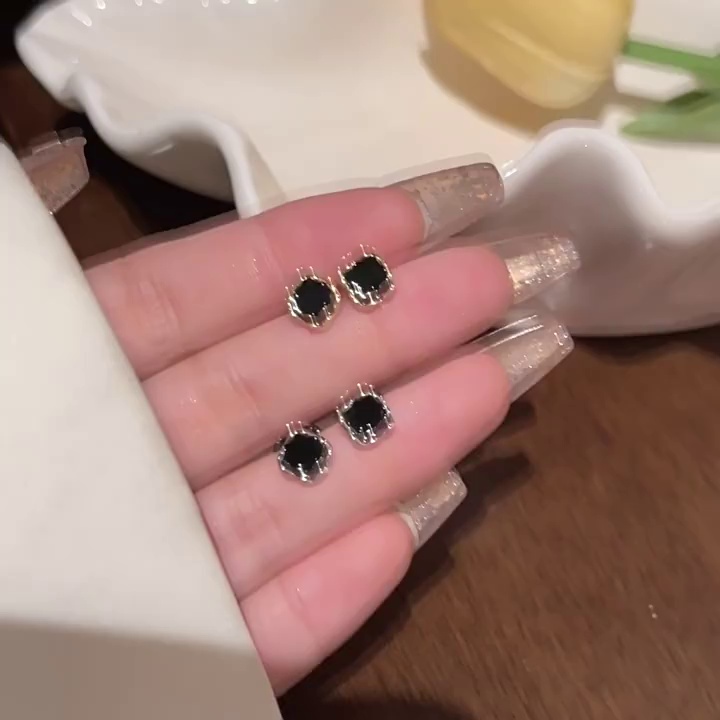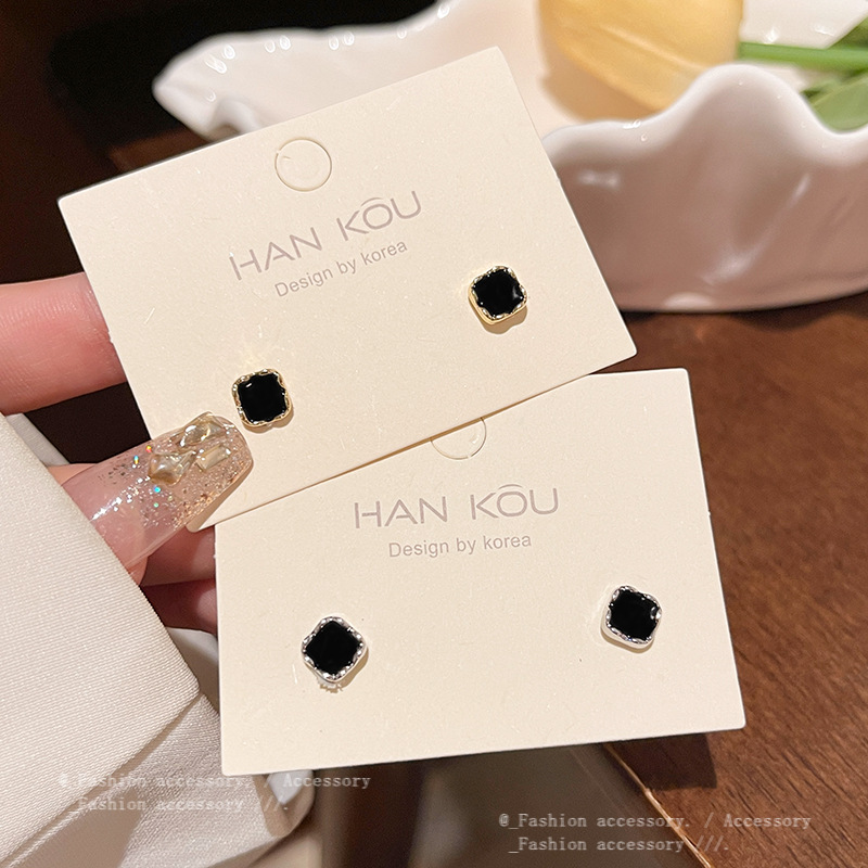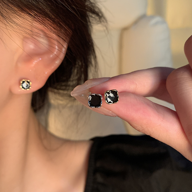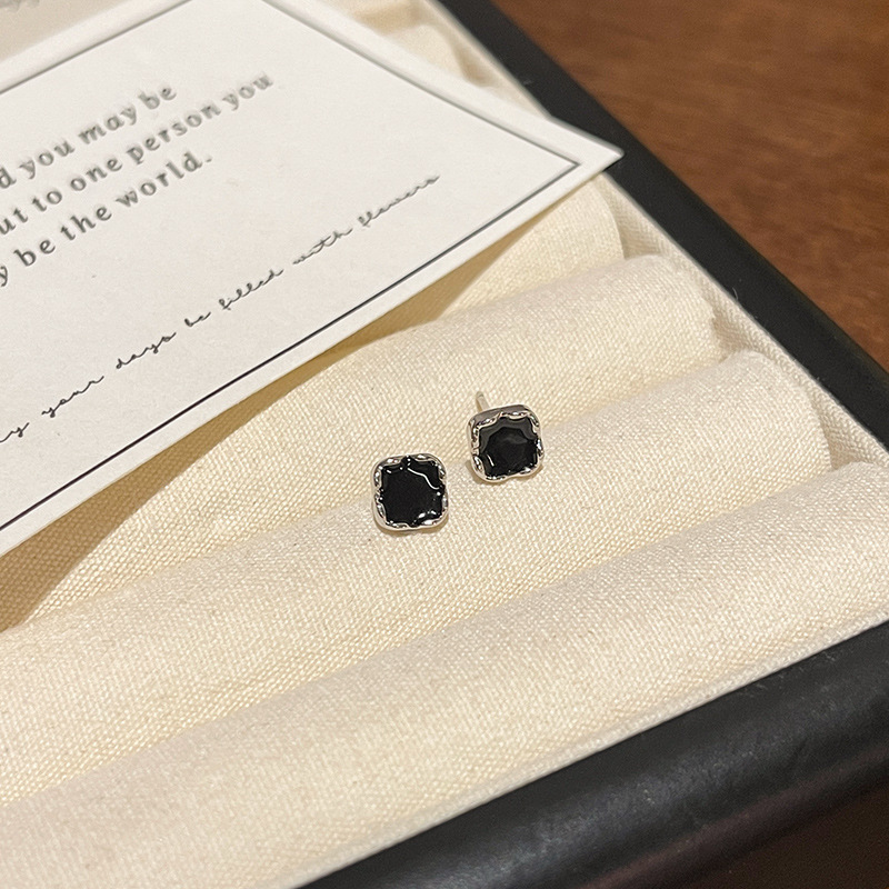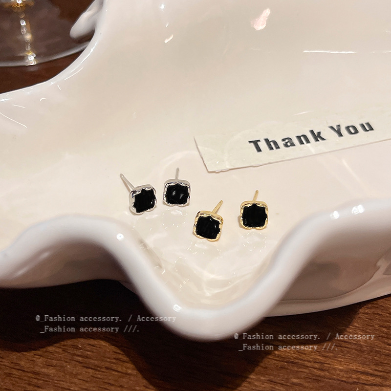 S925银针简约气质小方块耳钉女经典款滴釉几何形耳环百搭气质耳饰