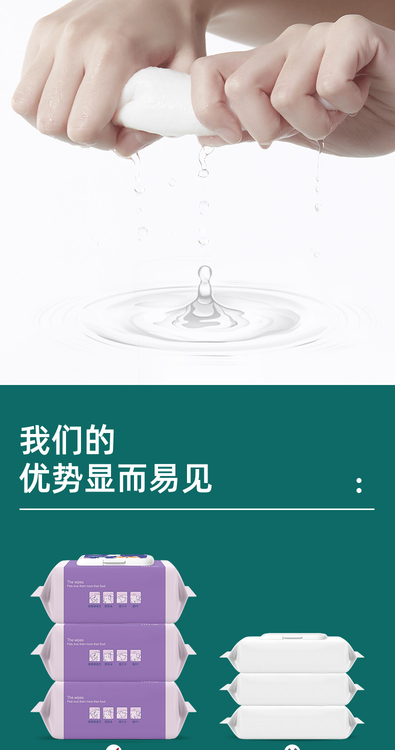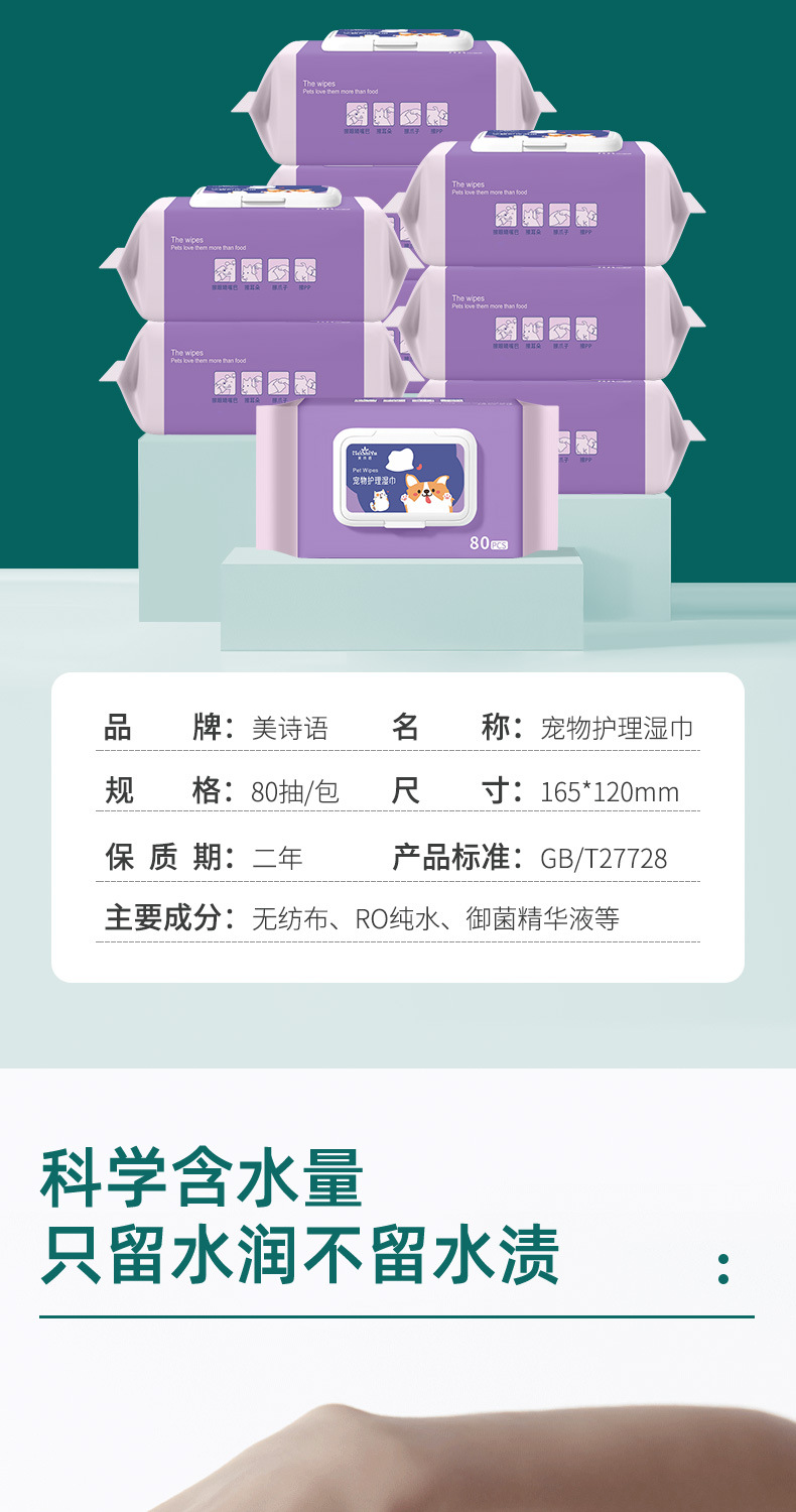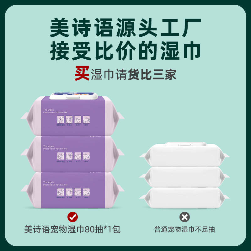 宠物湿巾80片大包猫咪狗狗身体耳朵眼部去泪痕清洁湿纸巾厂家批发
