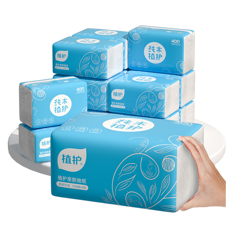 植护抽纸30包整箱纸巾400张餐巾纸批发家用4层大包装抽取式面巾纸