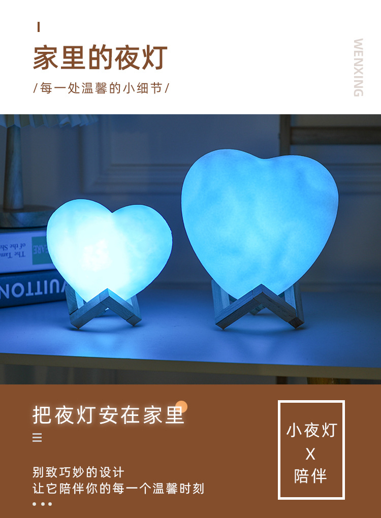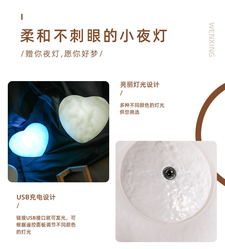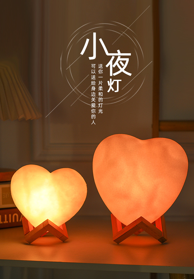 创意爱心小夜灯USB充电遥控台灯寝室护眼柔光氛围感卧室床头摆件
