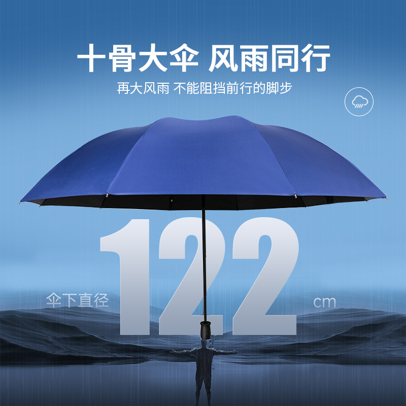 双人特大十骨商务黑胶遮阳雨伞大号晴雨两用太阳三折防晒雨伞批发