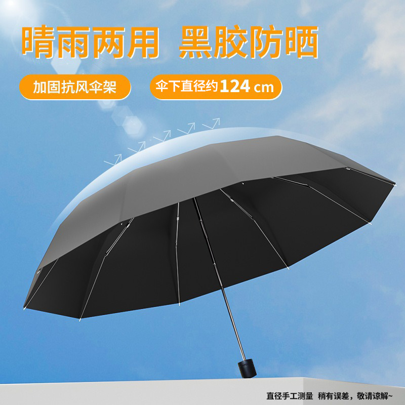 双人大号雨伞晴雨两用十骨折叠遮阳伞加固加厚防紫外线抗风太阳伞