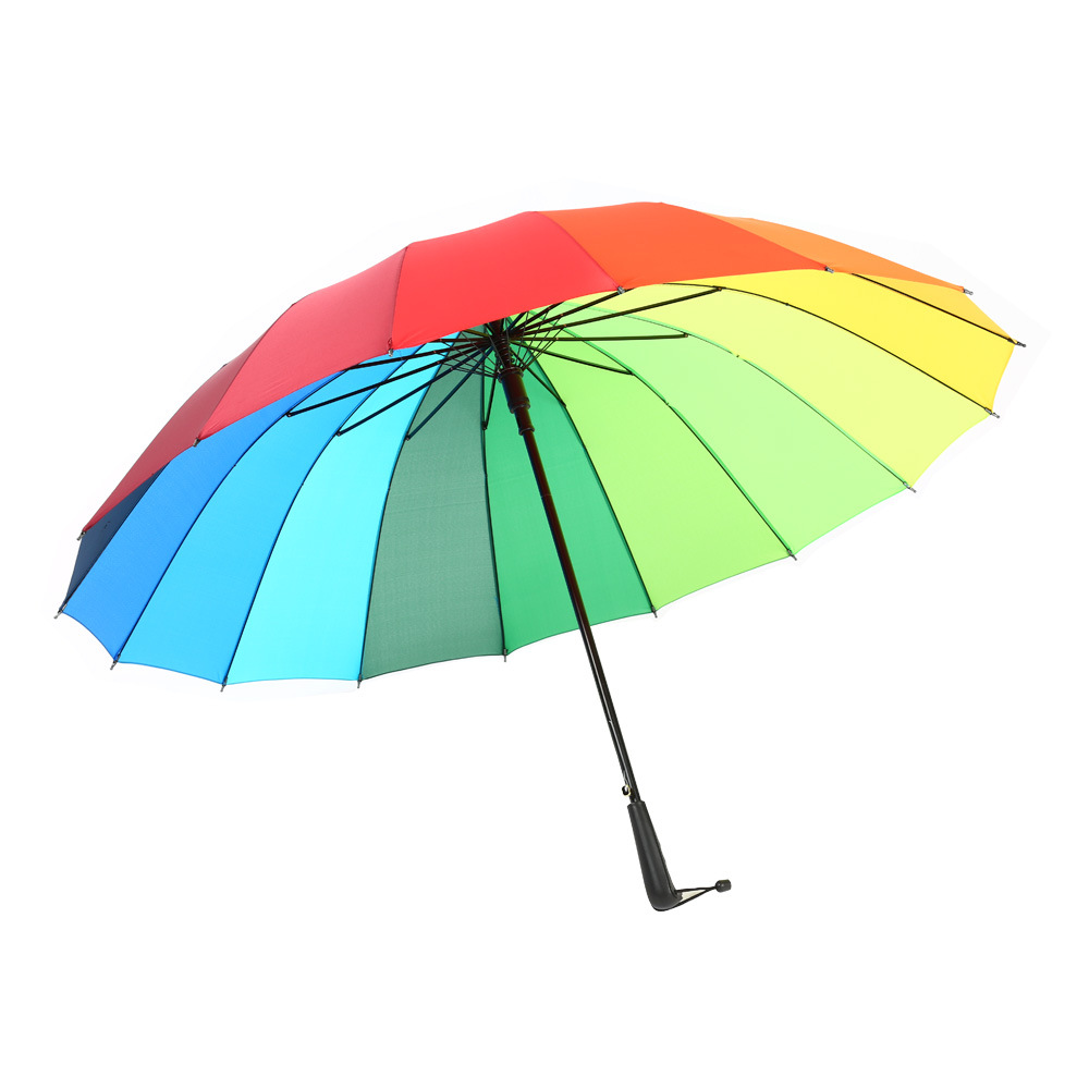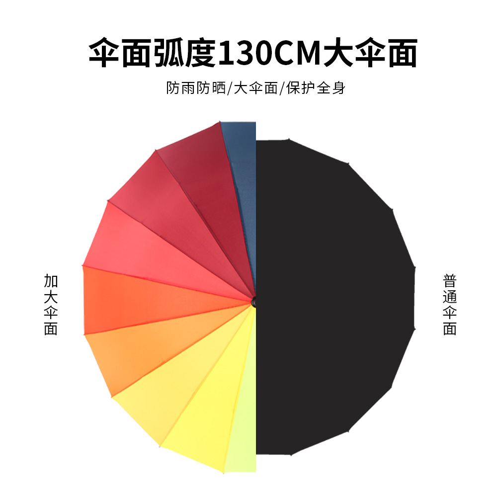 素色彩虹伞16骨超大防风伞商务伞防雨晴雨伞广告伞批发可定logo