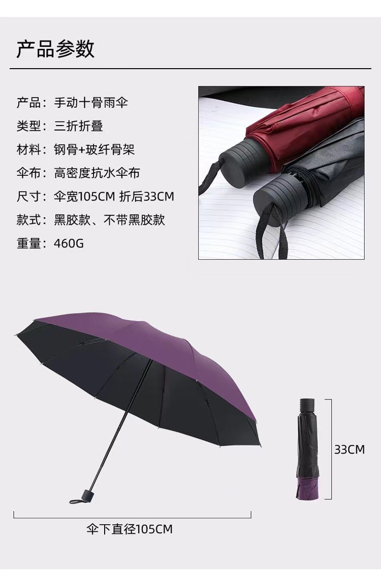 十骨全自动大号商务广告伞晴雨伞黑胶防晒三折叠伞礼品太阳伞批发
