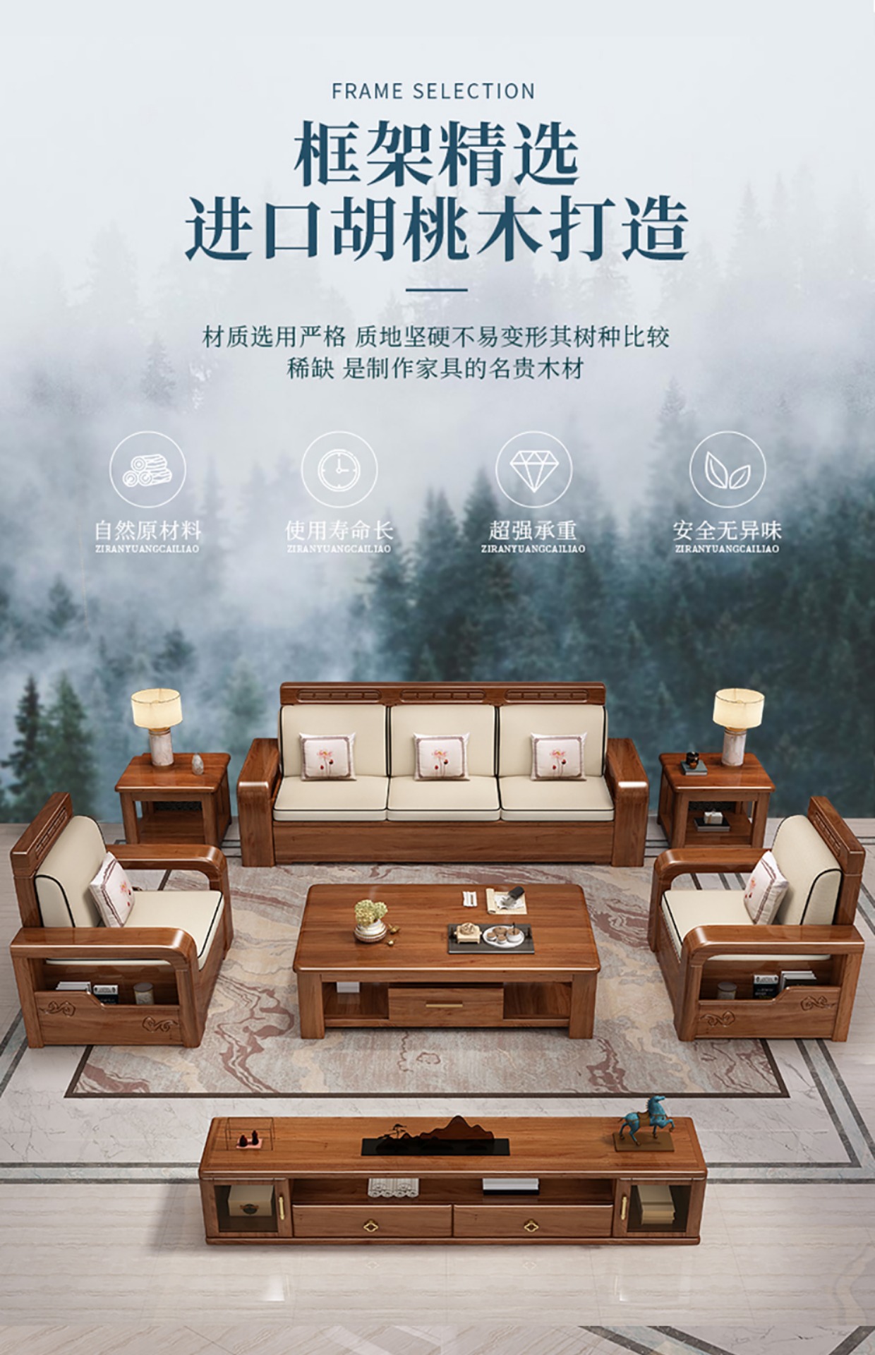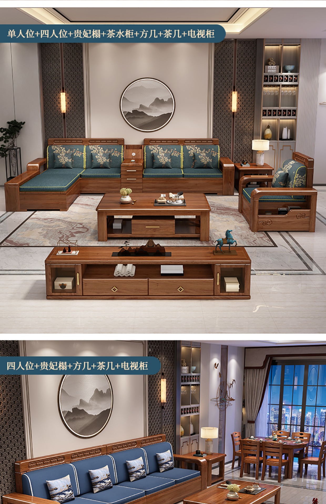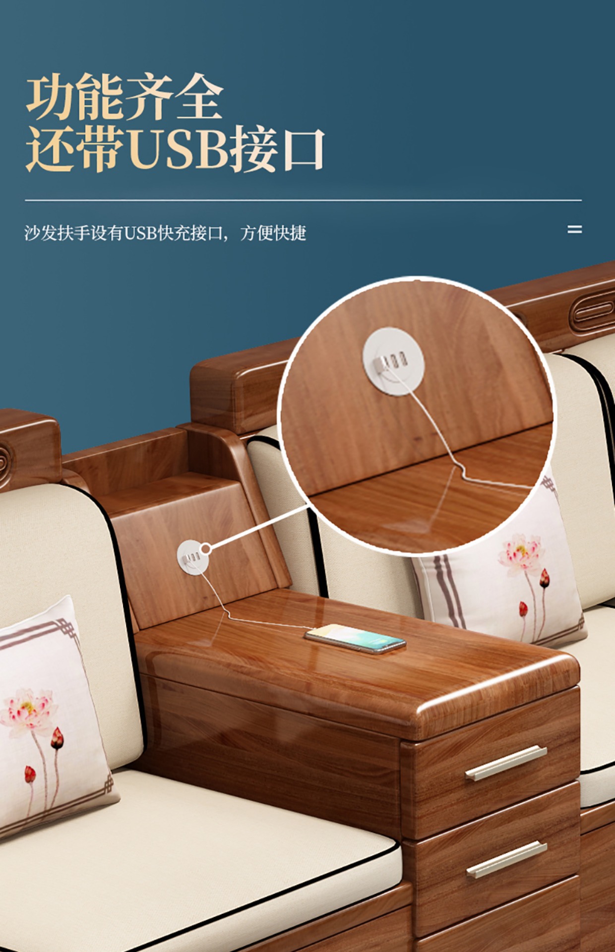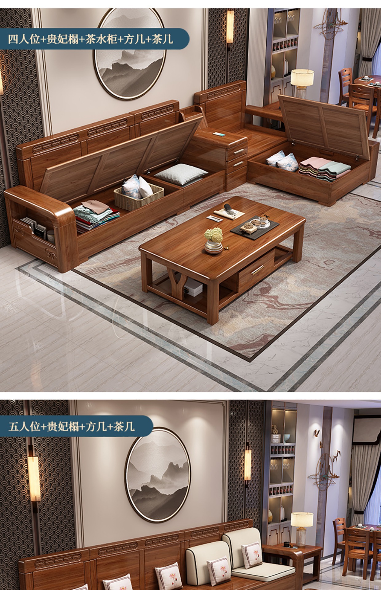 胡桃木实木沙发冬夏两用大小户型中式组合布艺客厅储物家具沙发
