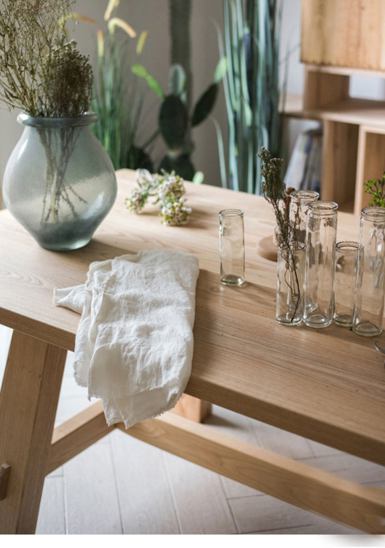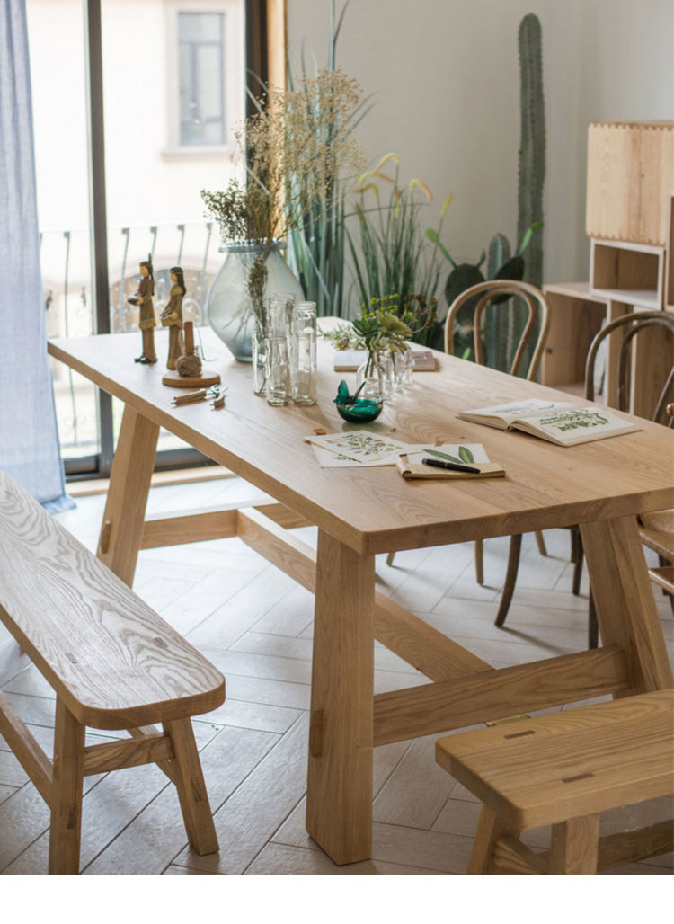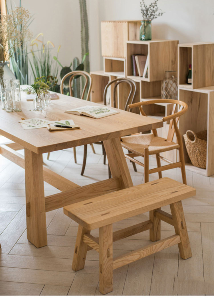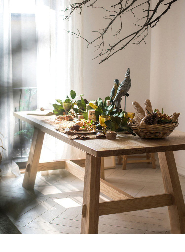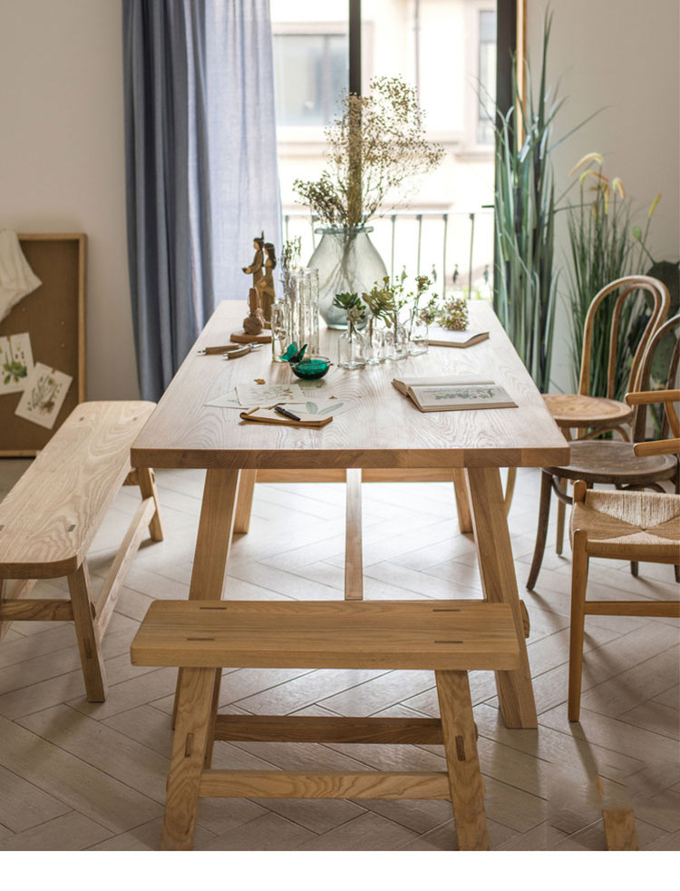 客厅家用餐桌实木工作台桌椅设计师家具原木色餐台北欧书桌写字台