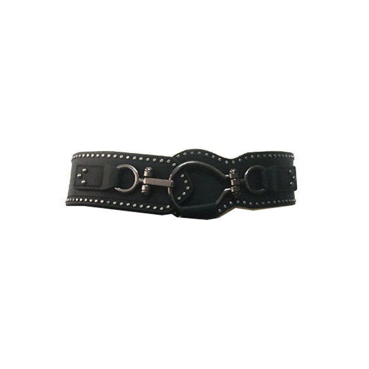 欧美朋克风超长流苏裙摆女士腰封时尚铆钉宽腰带松紧黑色搭扣配饰