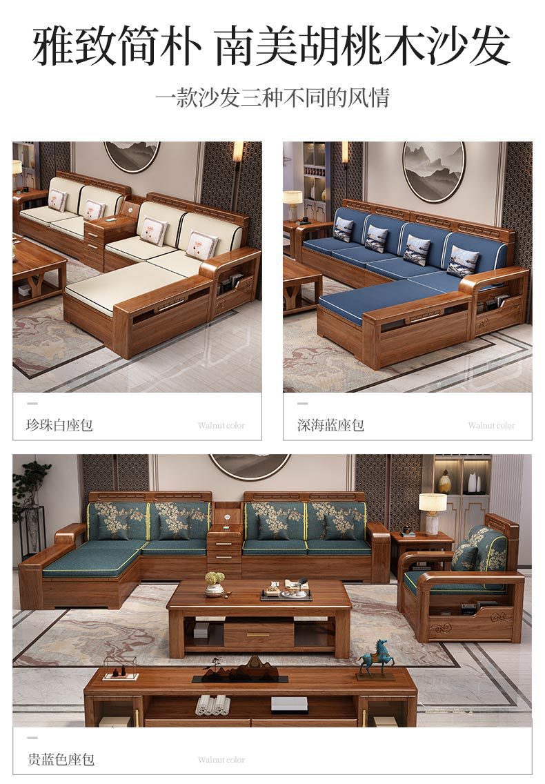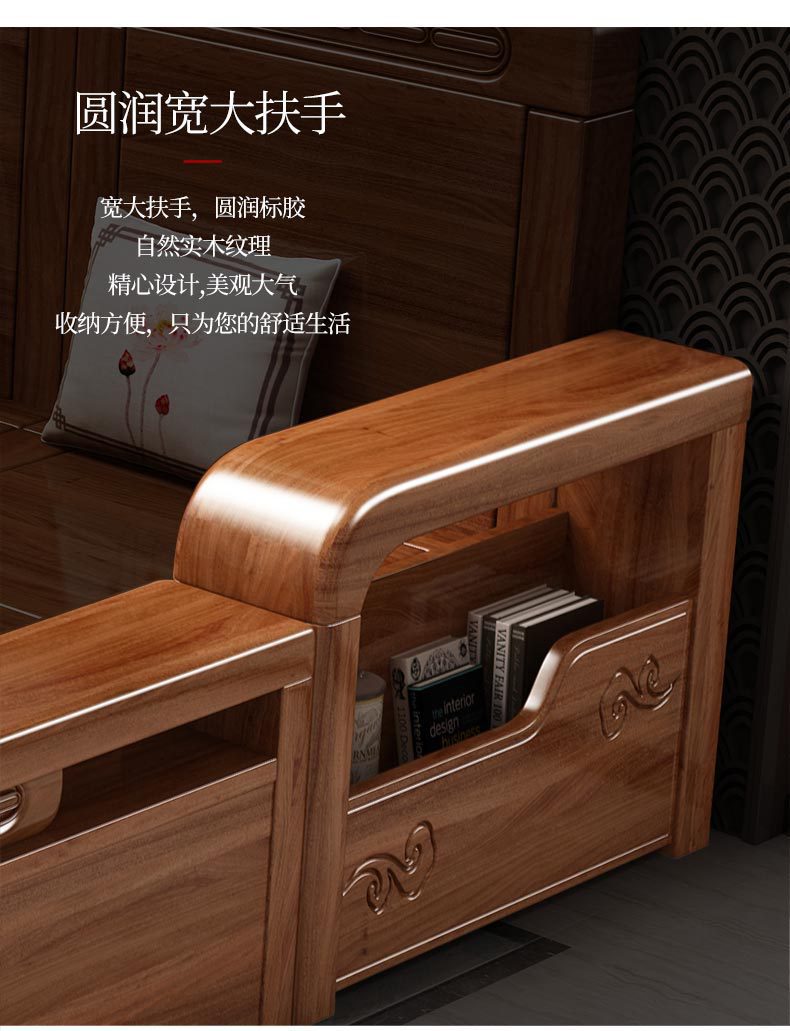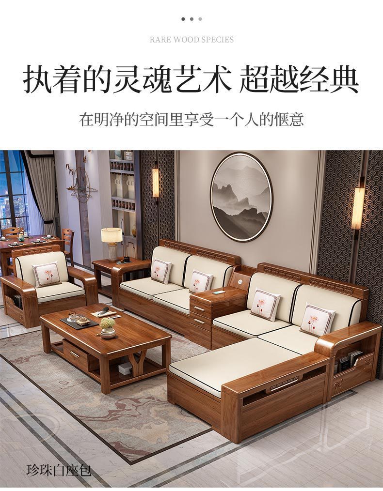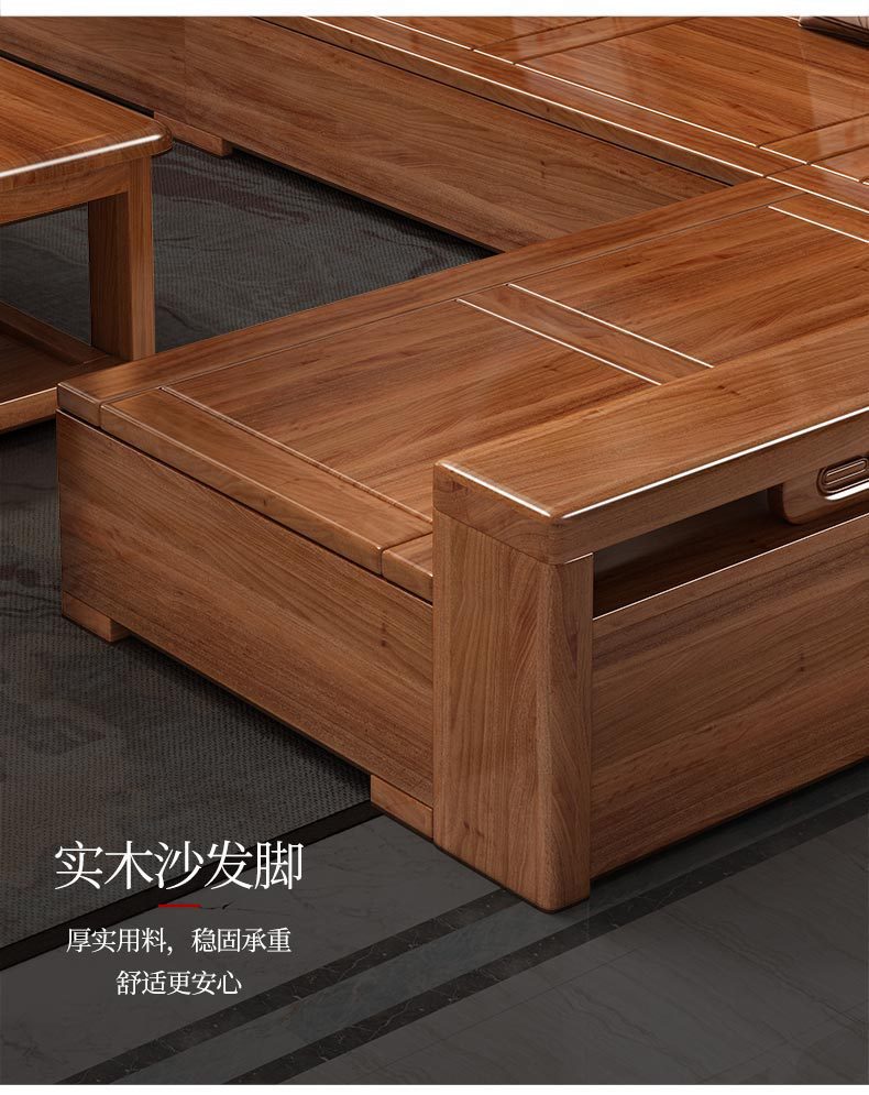 胡桃木中式实木沙发组合客厅贵妃冬夏两用L型转角经济型储物沙发