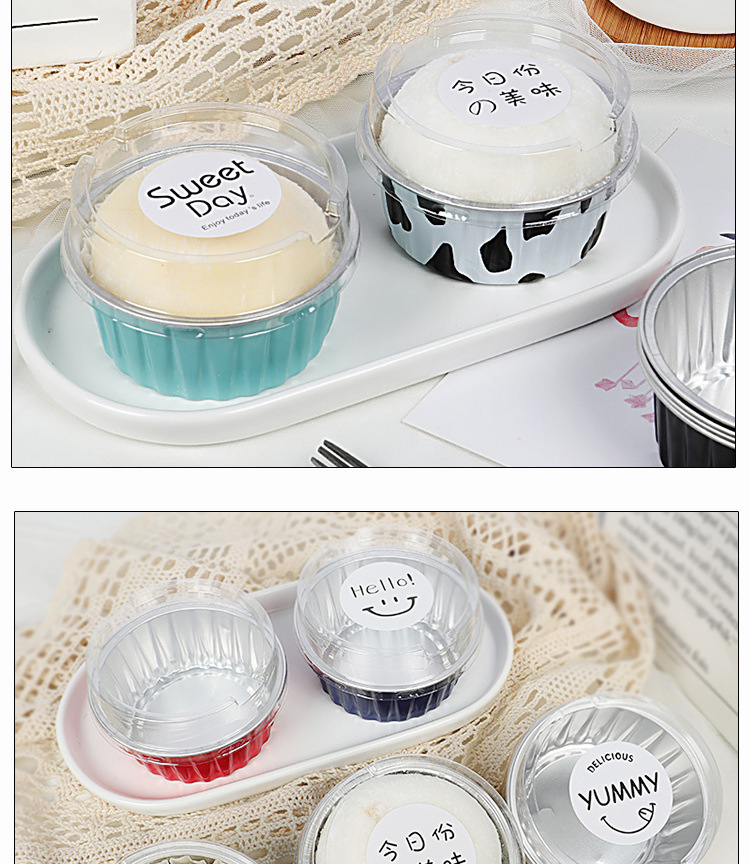 雪媚娘包装盒子 ins风大福布丁圆形锡纸铝箔打包盒烘焙慕斯蛋糕杯