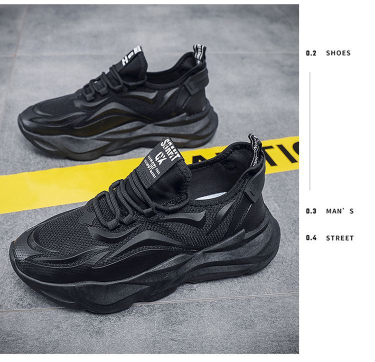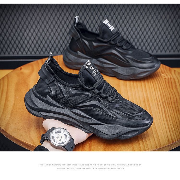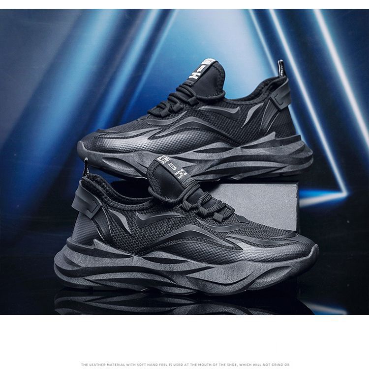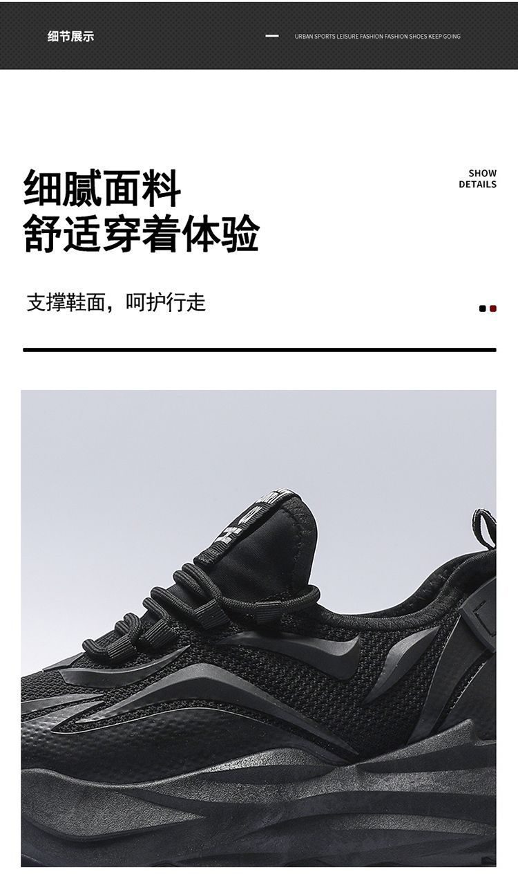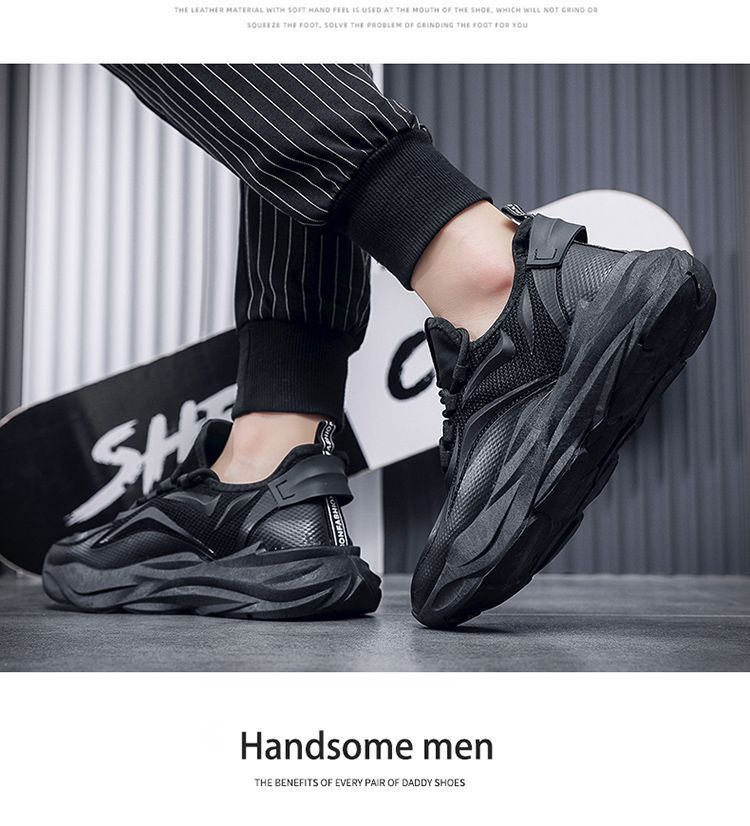 黑色男鞋夏季透气男士工作劳保鞋厚底老爹鞋男款网面休闲运动网鞋