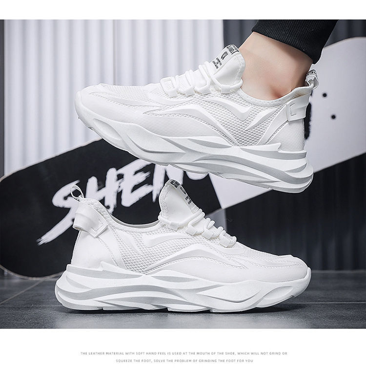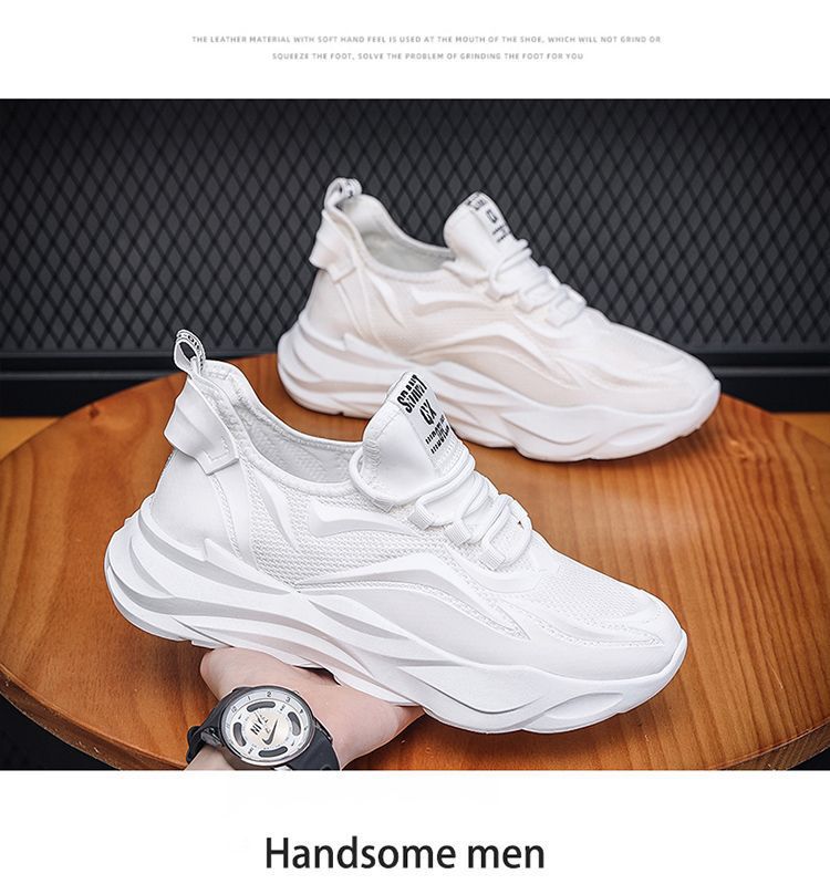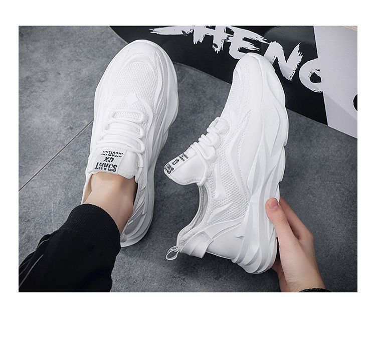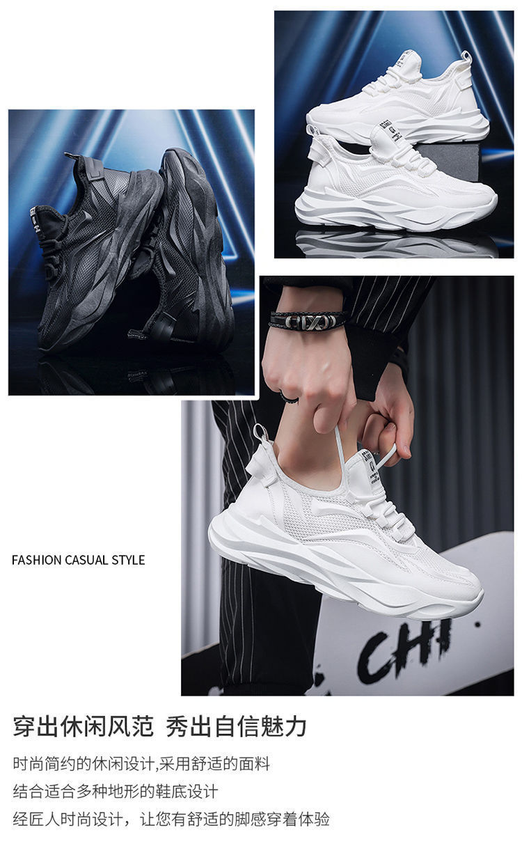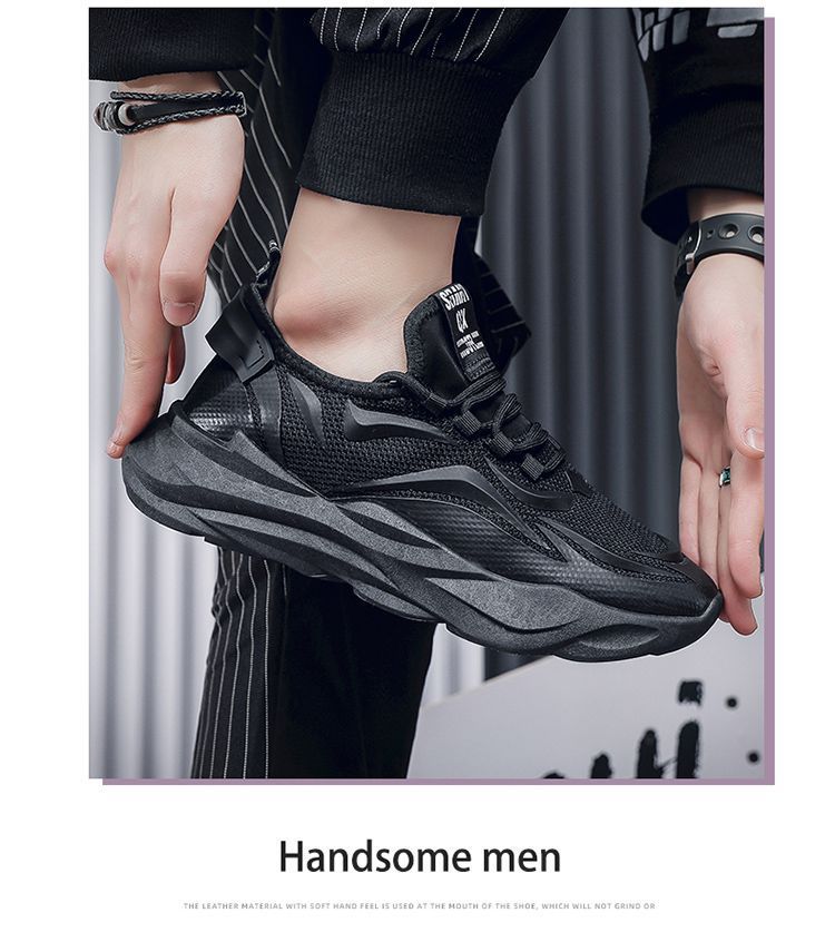黑色男鞋夏季透气男士工作劳保鞋厚底老爹鞋男款网面休闲运动网鞋