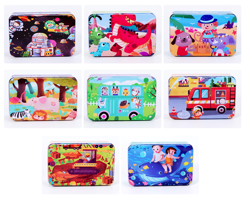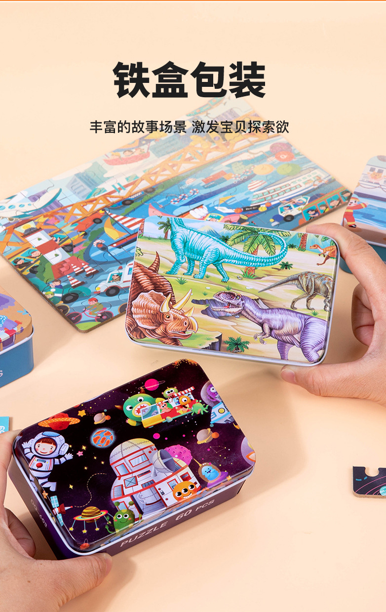 立体新品60片铁盒拼图幼儿童益智早教3-6岁动漫卡通拼图玩具批发