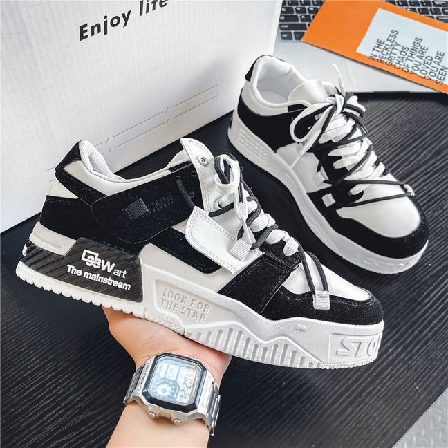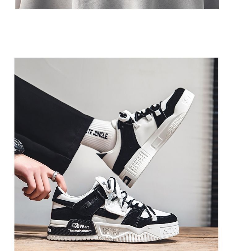 2024春季男鞋新款潮流百搭休闲运动鞋男原创小众厚底熊猫板鞋子男