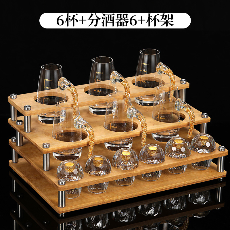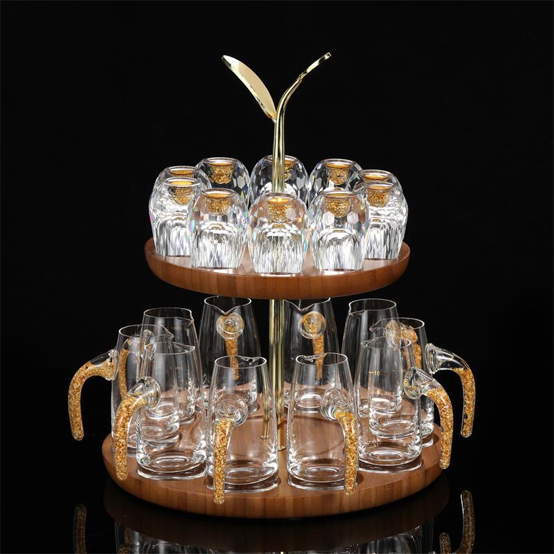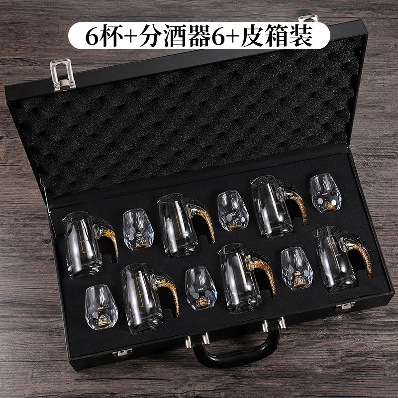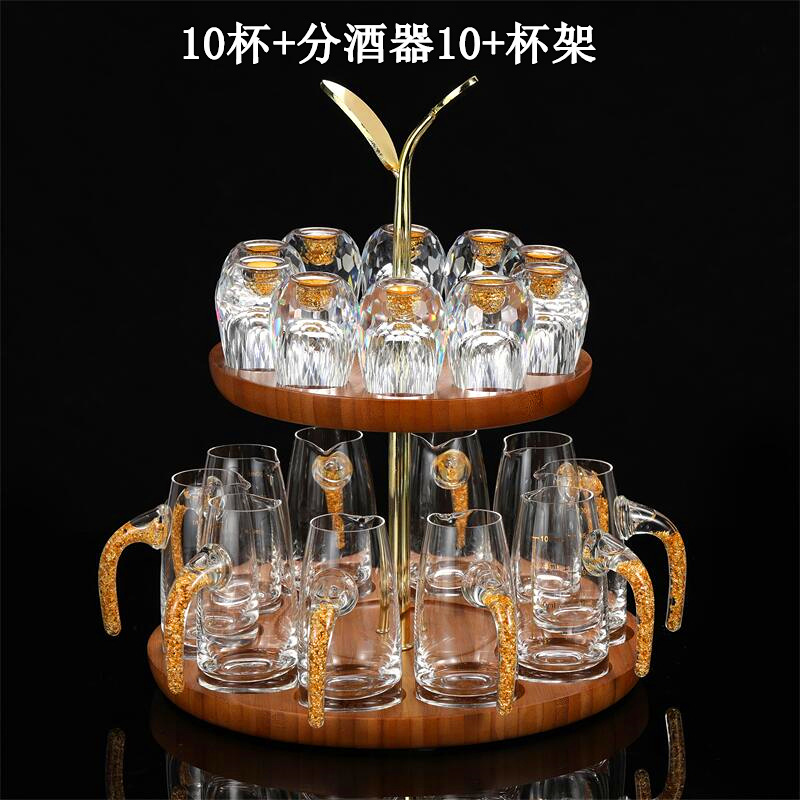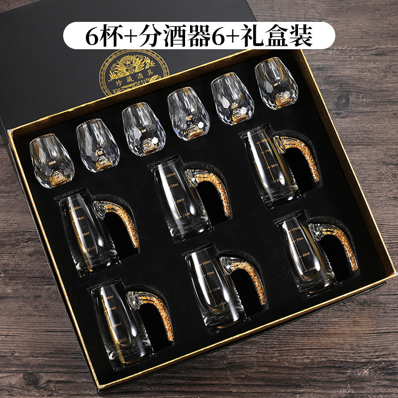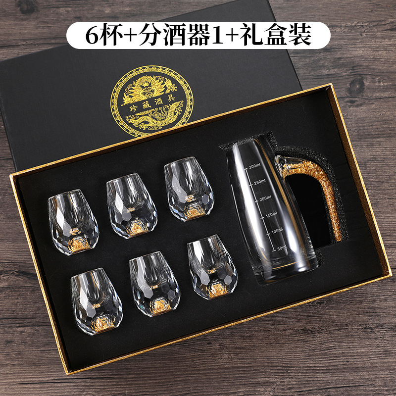轻奢金箔白酒杯套装水晶玻璃分酒器家用一套小酒杯酒具一件代发