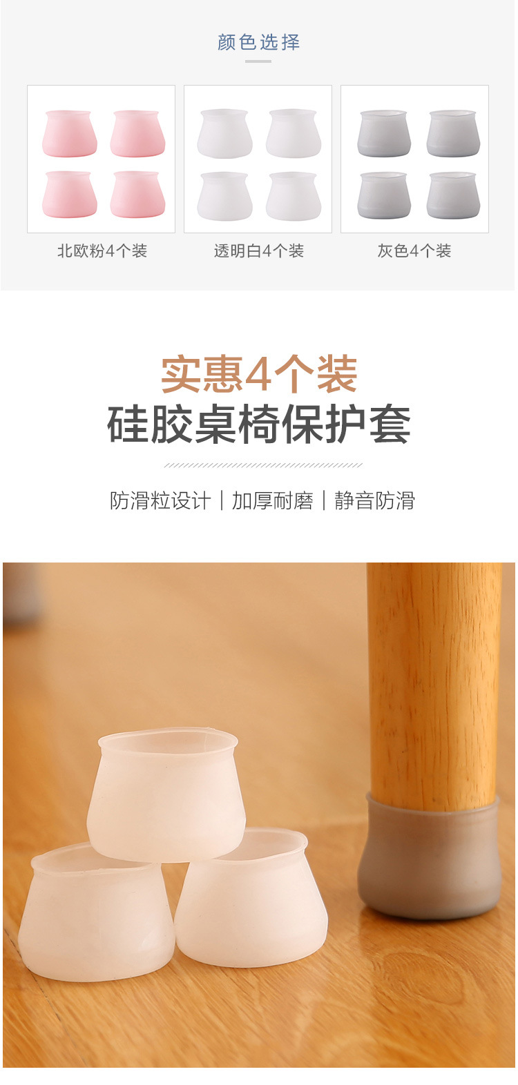 批发硅胶桌椅脚套白色灰色桌椅保护套防滑椅子脚套静音套凳子脚套