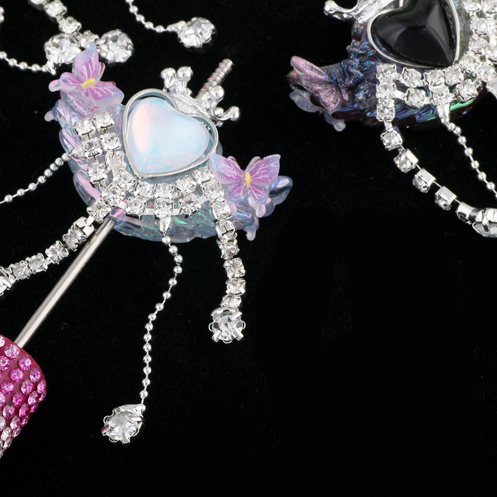 爱心皇冠满钻流苏钻球爆款可穿笔直孔珠子DIY手机钥匙扣项链配件