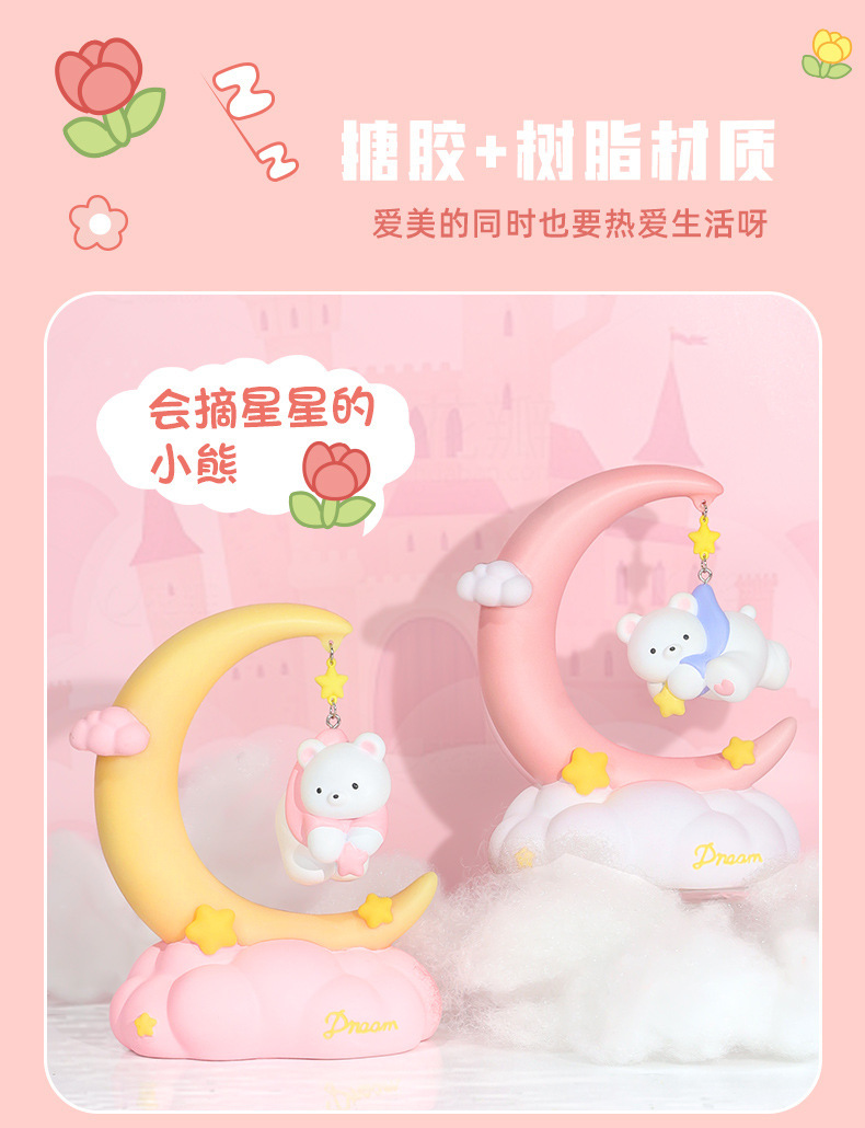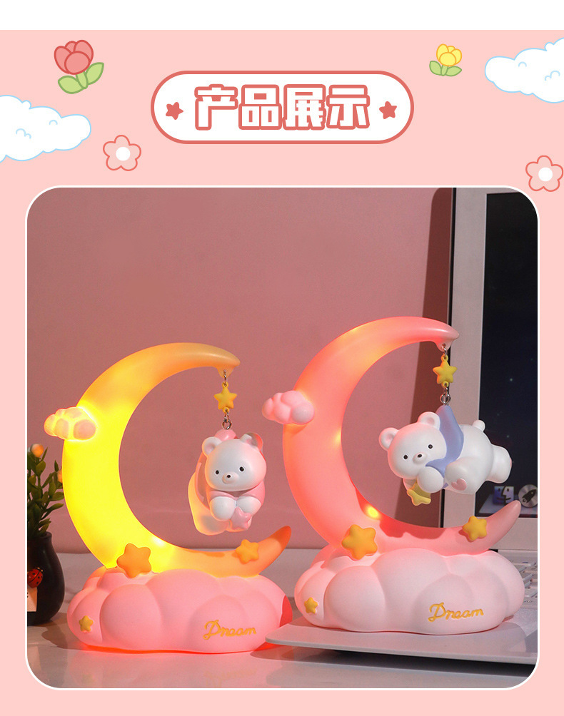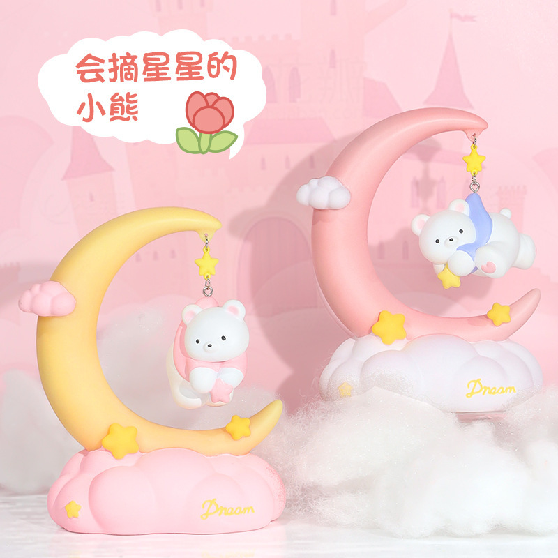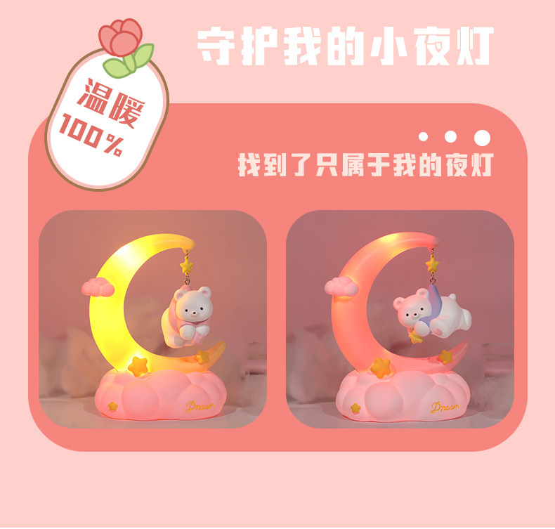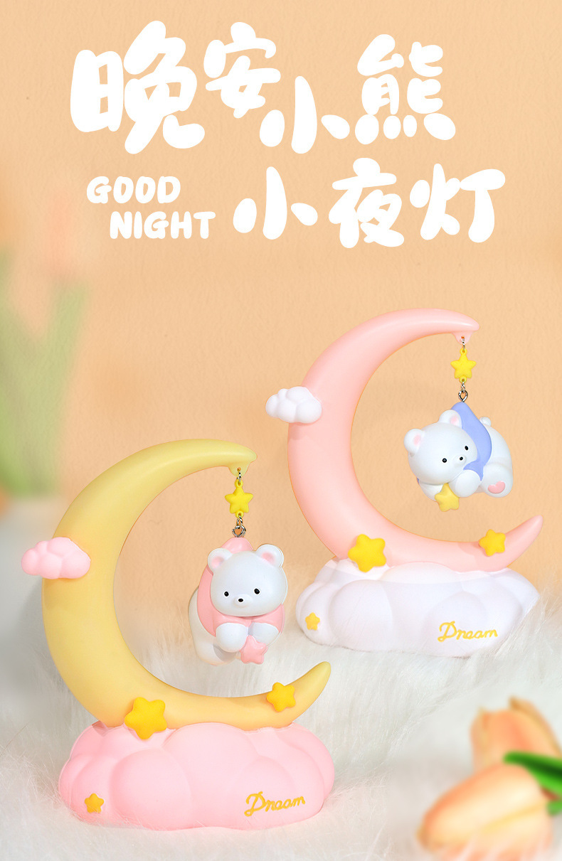 晚安小熊小夜灯 摘星星小熊灯树脂搪胶可爱网红摆摊节日礼物批发