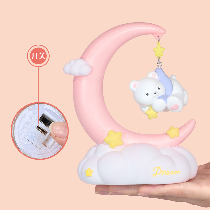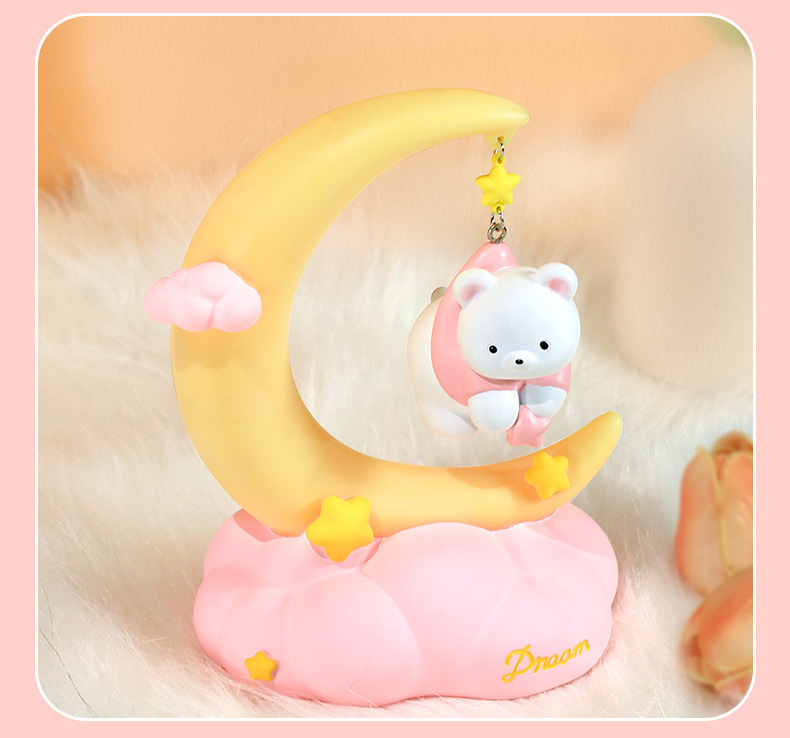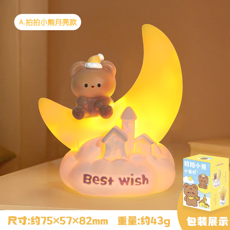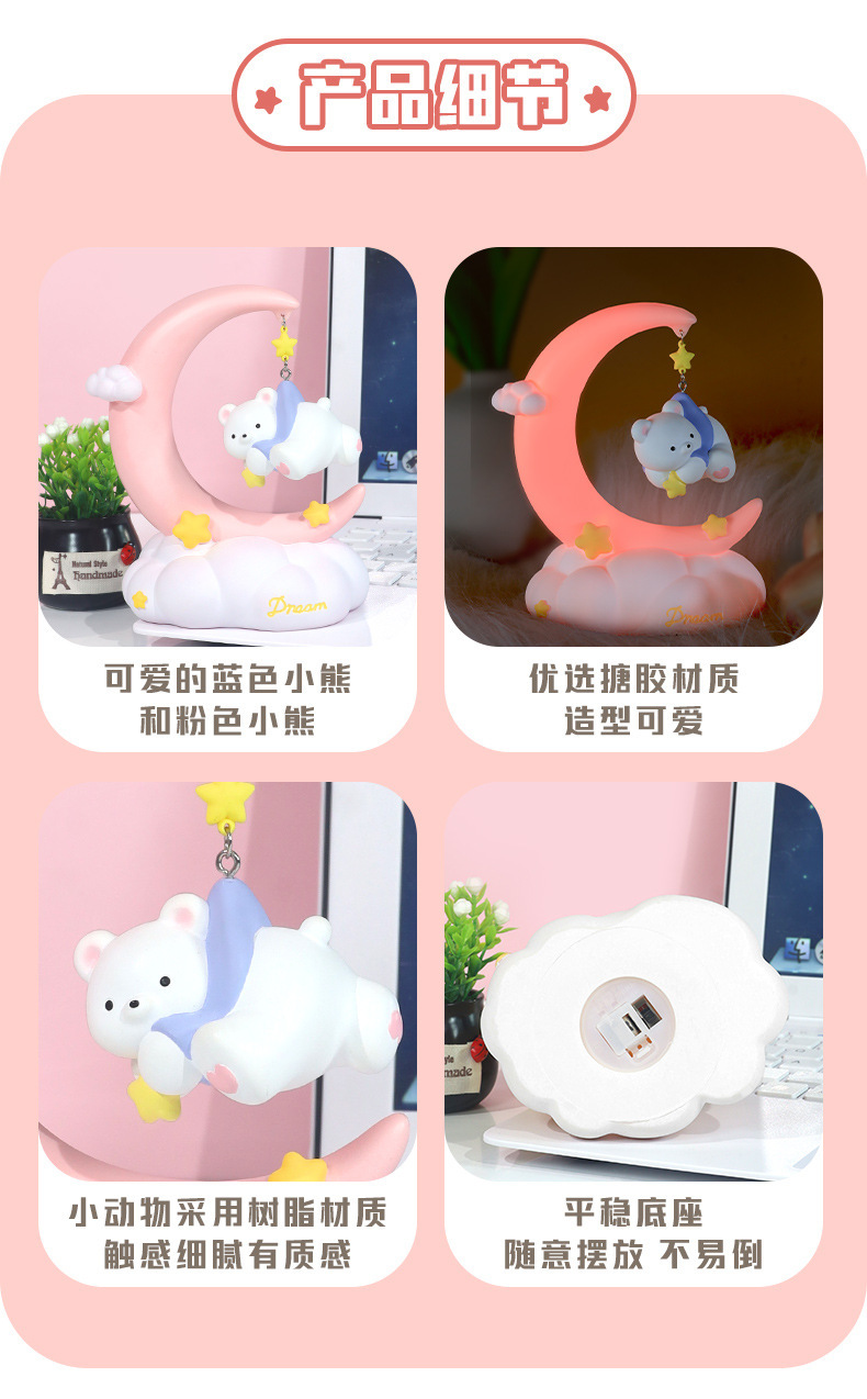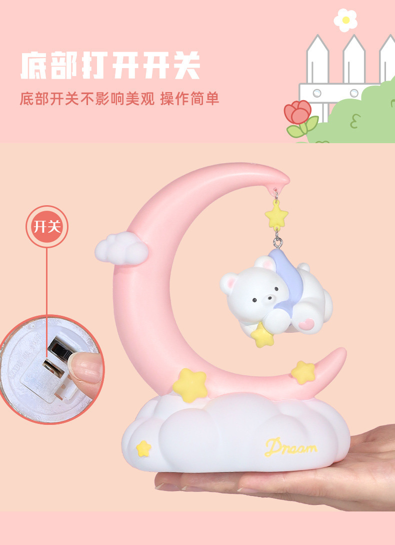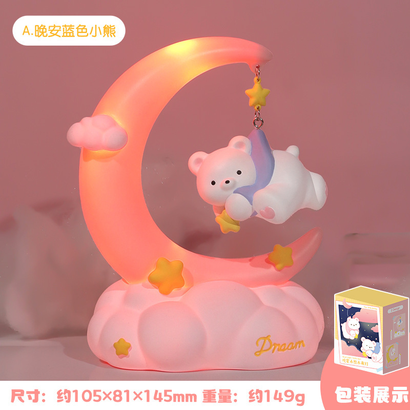 晚安小熊小夜灯 摘星星小熊灯树脂搪胶可爱网红摆摊节日礼物批发
