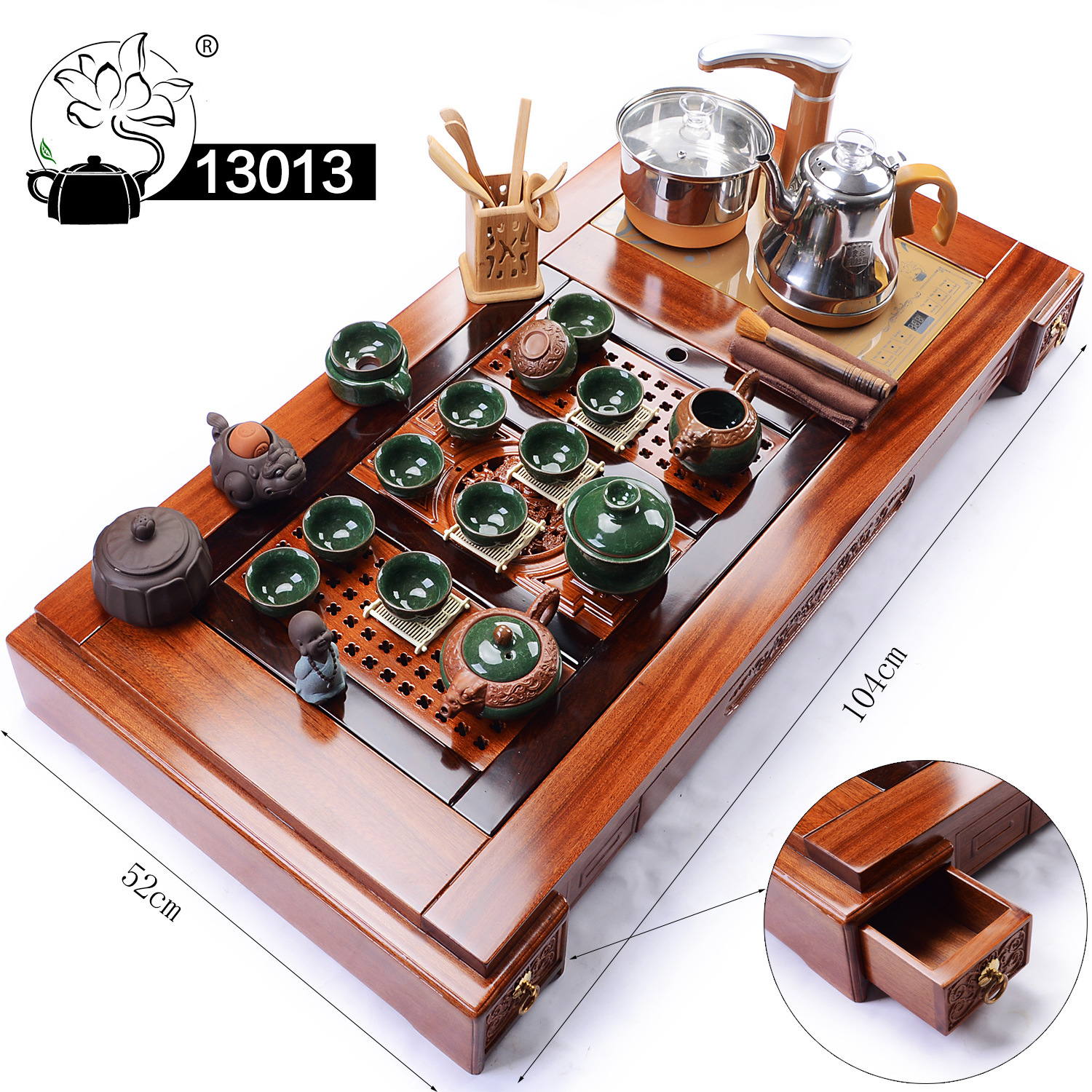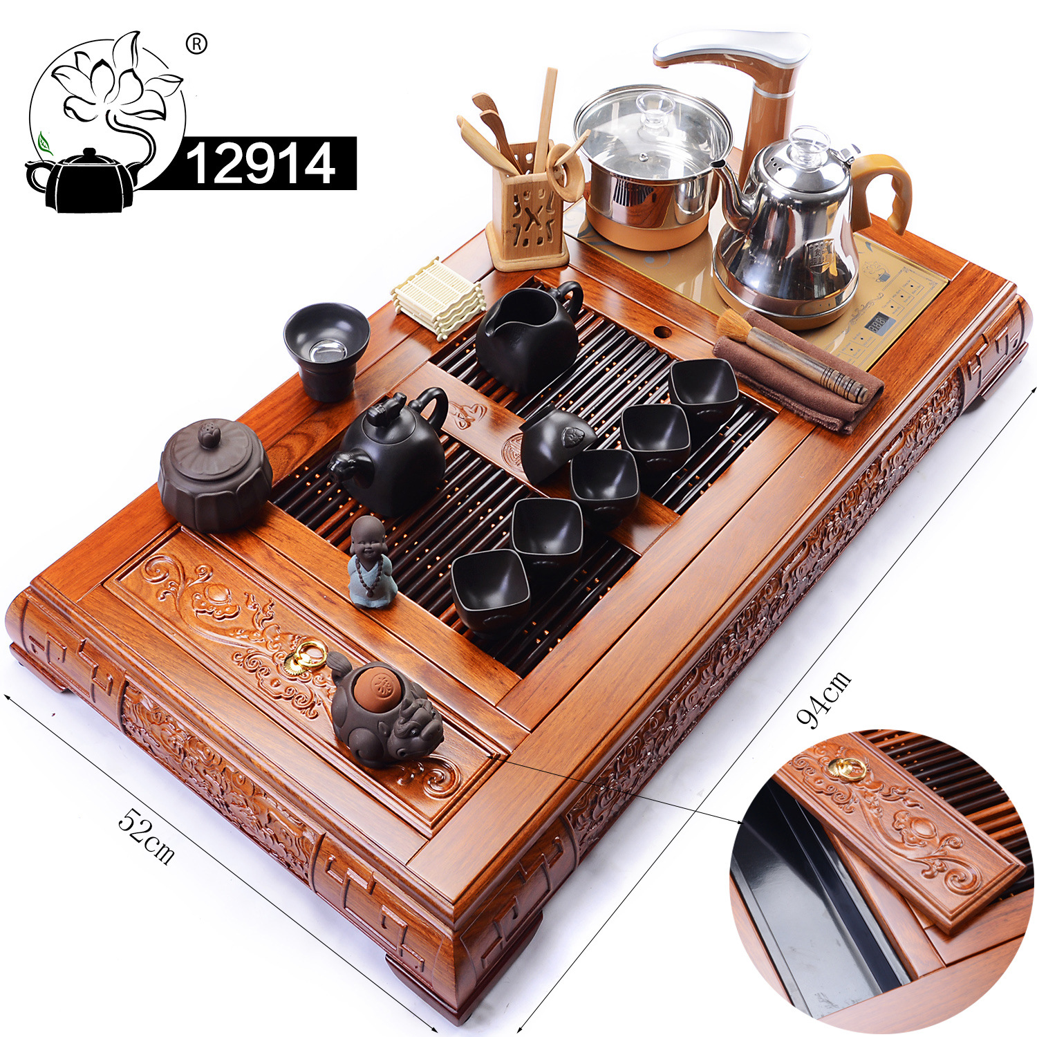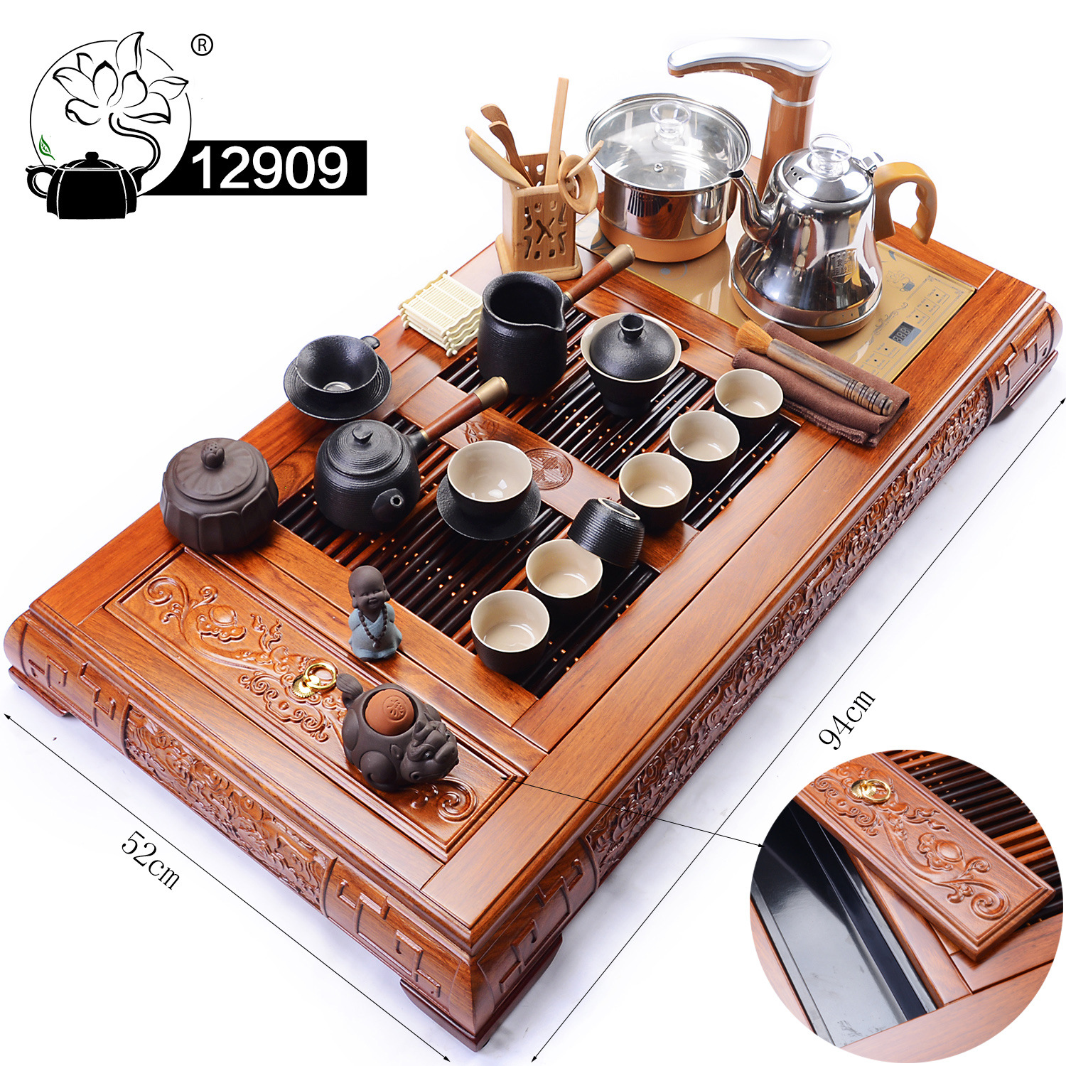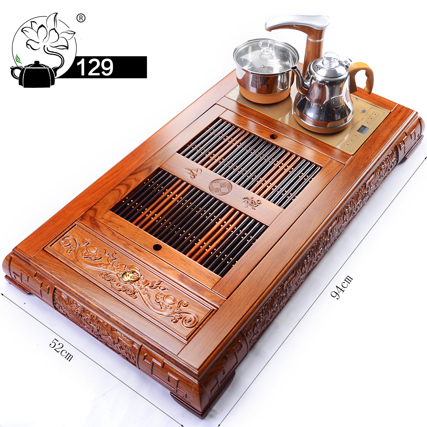 129花梨木黑檀茶盘家用套装客厅办公室茶台烧水壶一体嵌入式实木