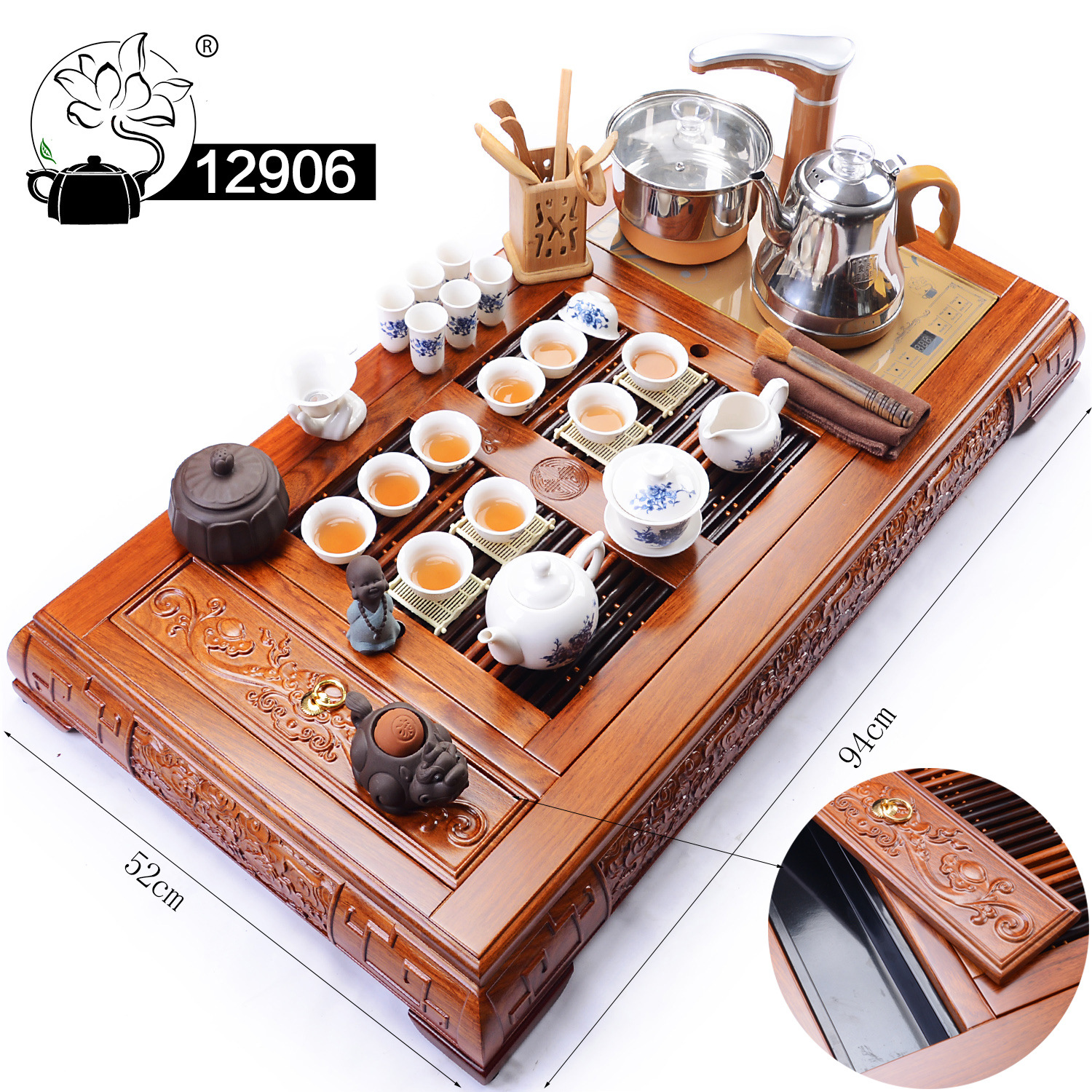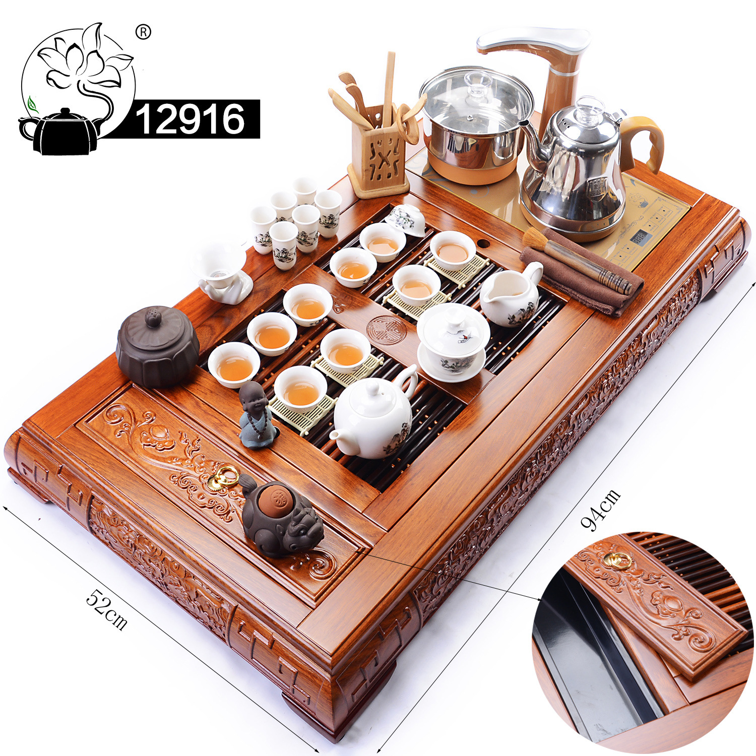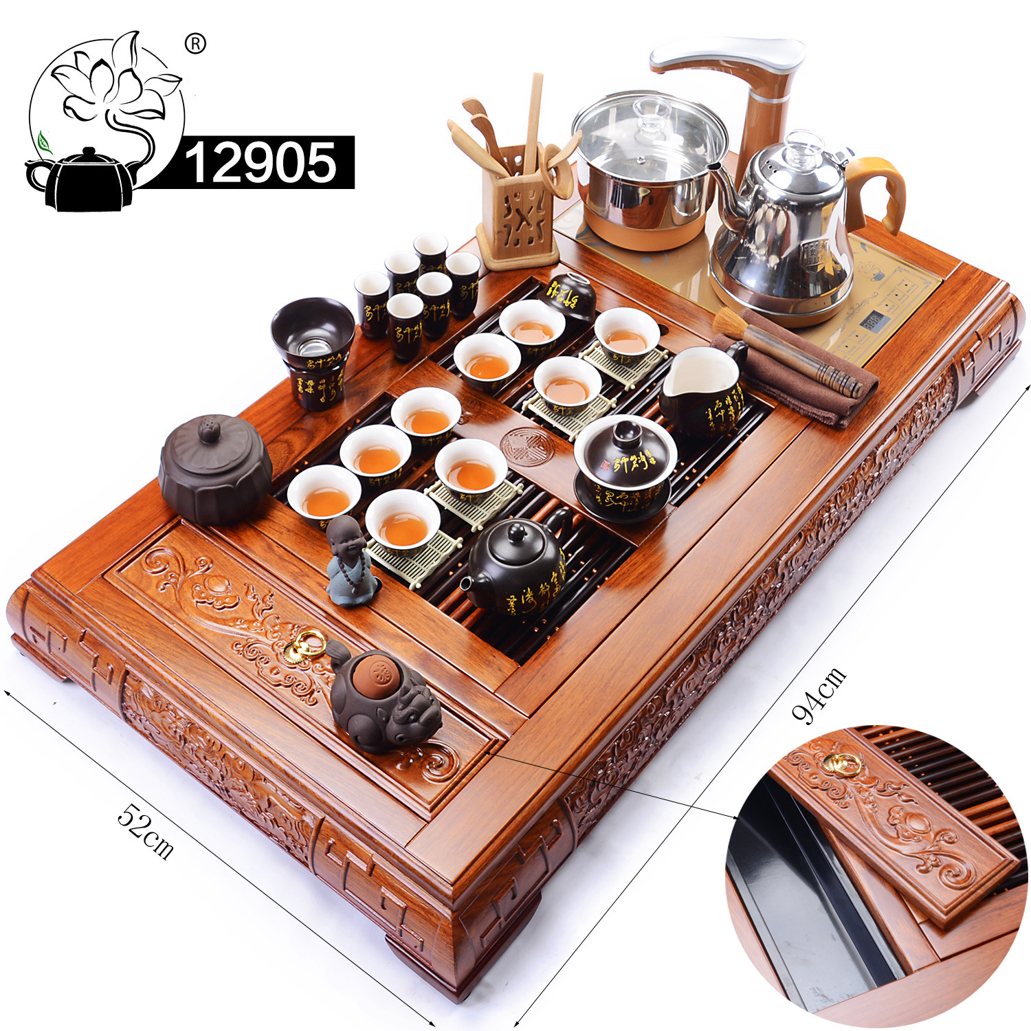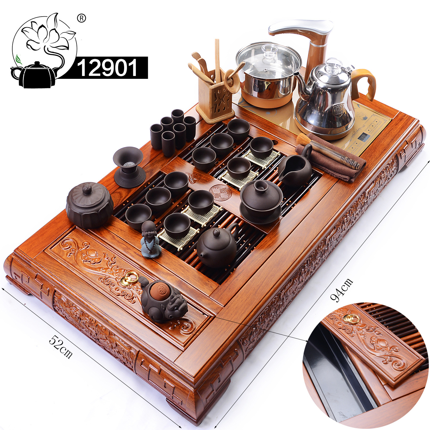 129花梨木黑檀茶盘家用套装客厅办公室茶台烧水壶一体嵌入式实木