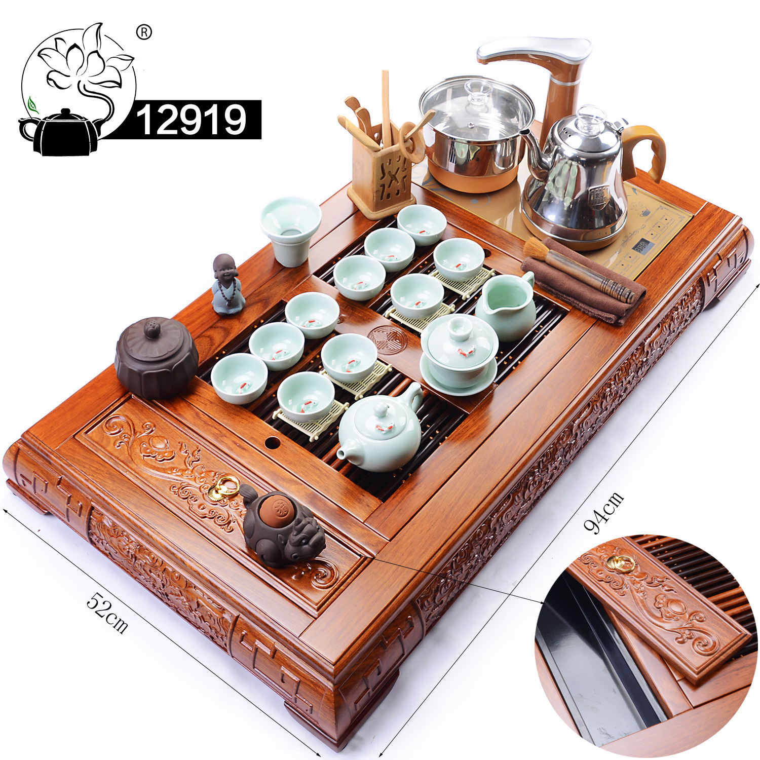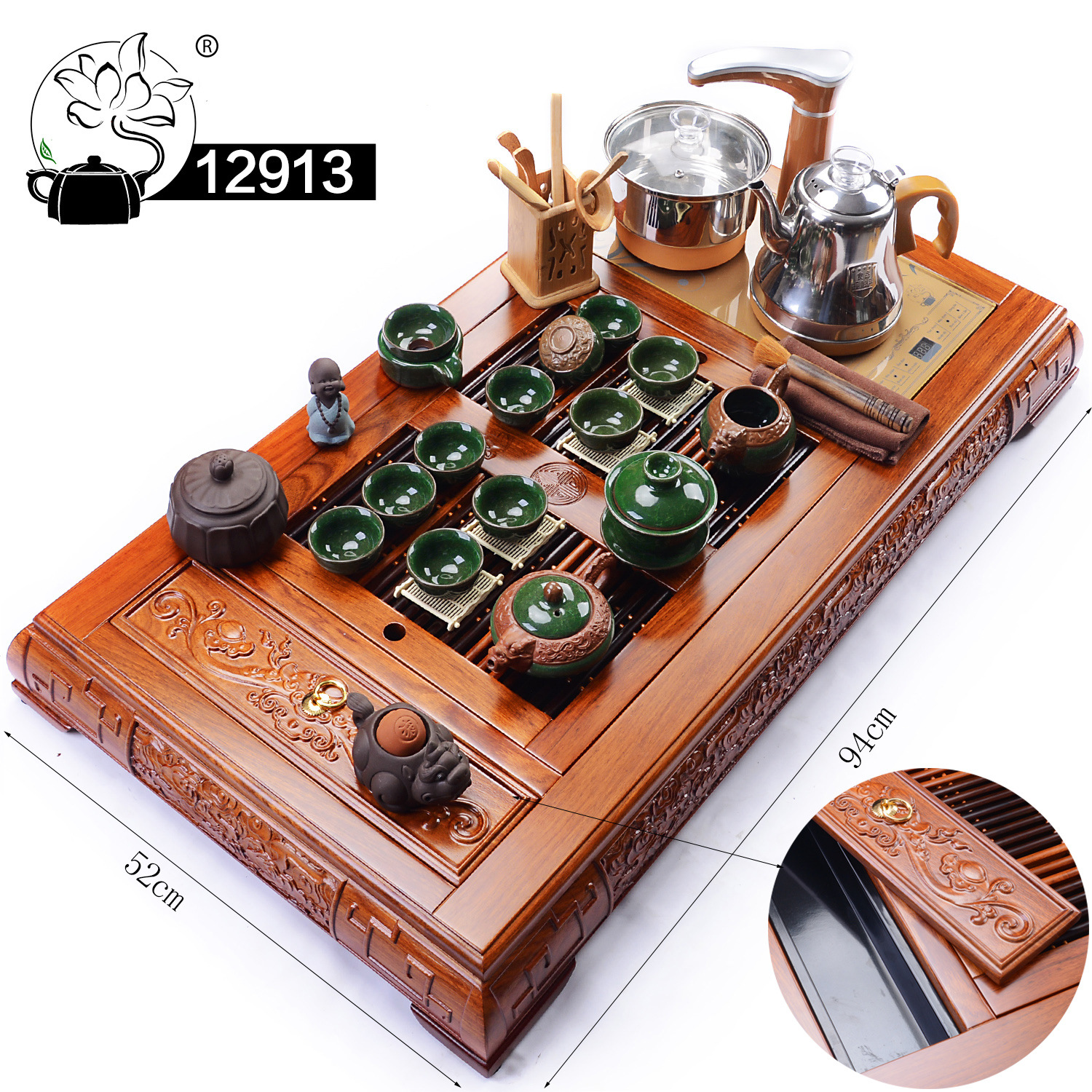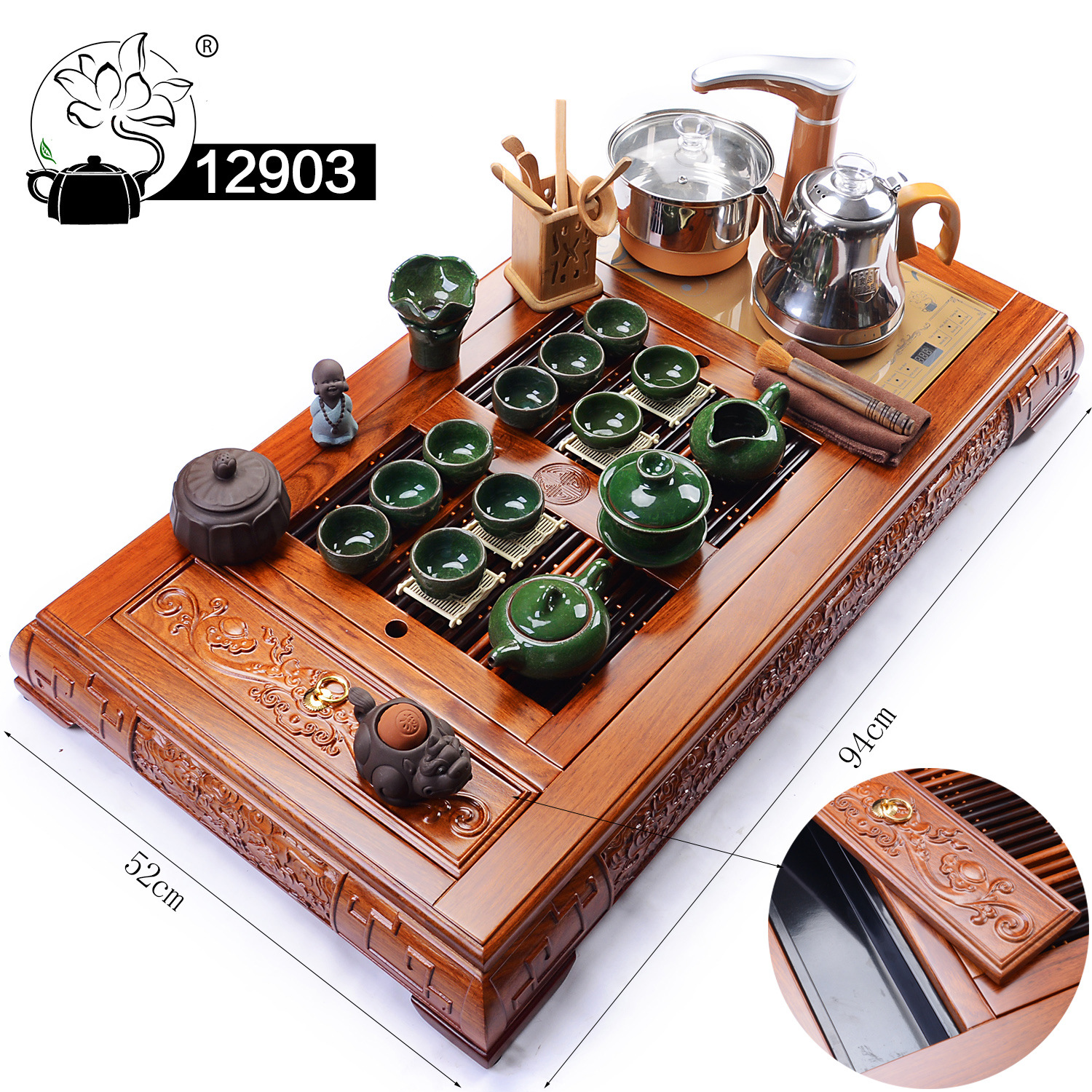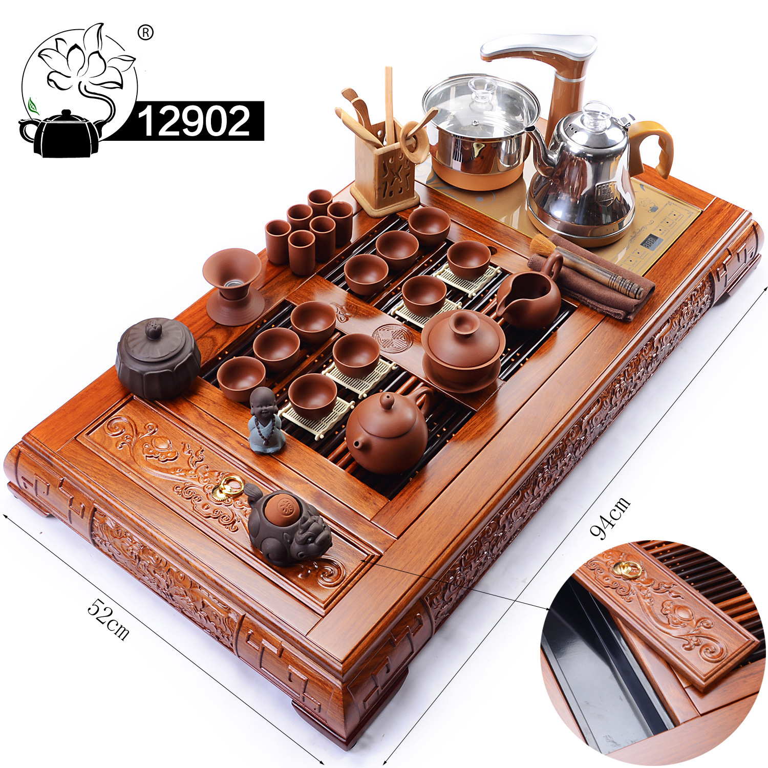 129花梨木黑檀茶盘家用套装客厅办公室茶台烧水壶一体嵌入式实木