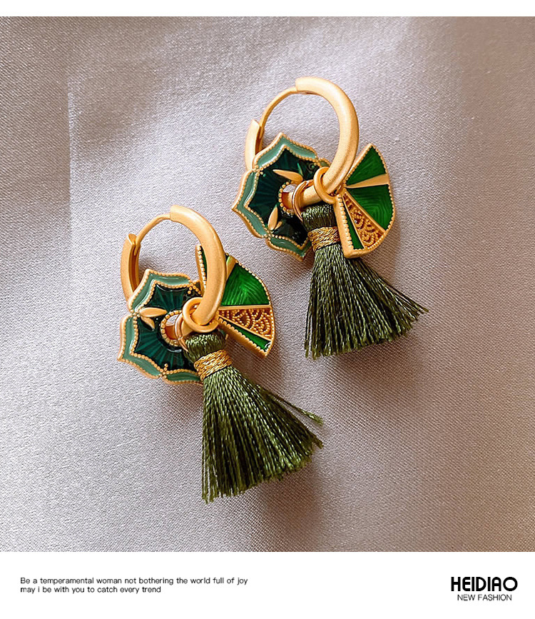 新中式复古流苏耳环女2024年爆款轻奢高级感耳钉气质独特国风耳饰