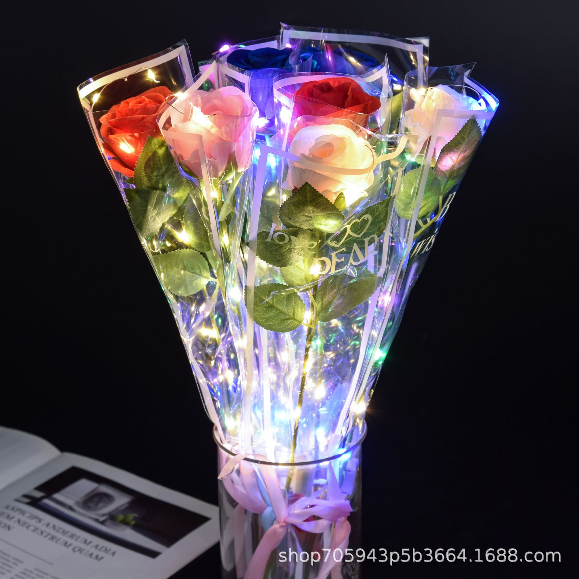 新款创意仿真发光玫瑰花七夕情人节表白礼物花束地摊夜市货源批发