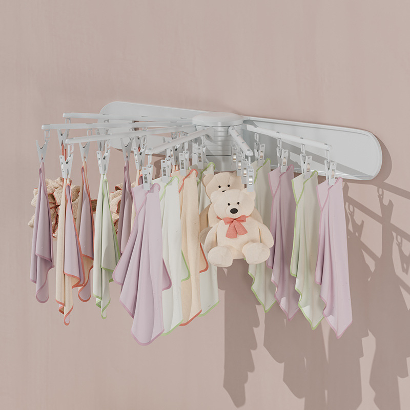 免打孔折叠衣架无痕黏胶晾晒架晒袜子架子夹神器多功能挂钩衣架