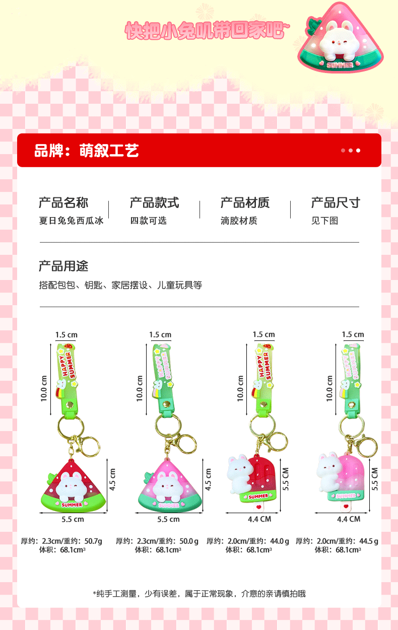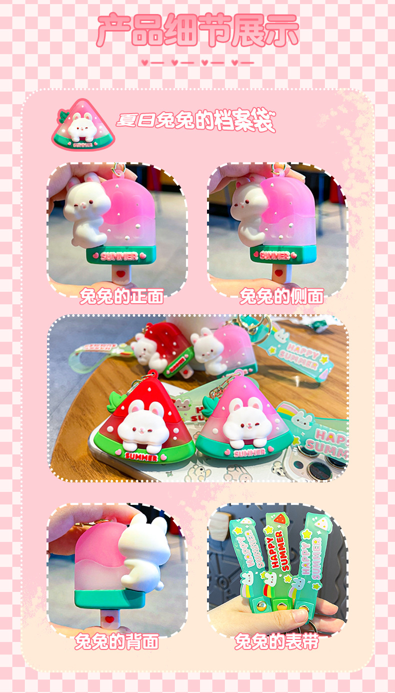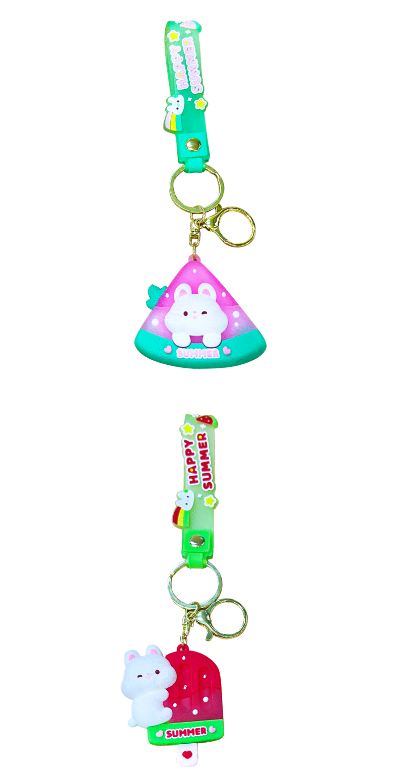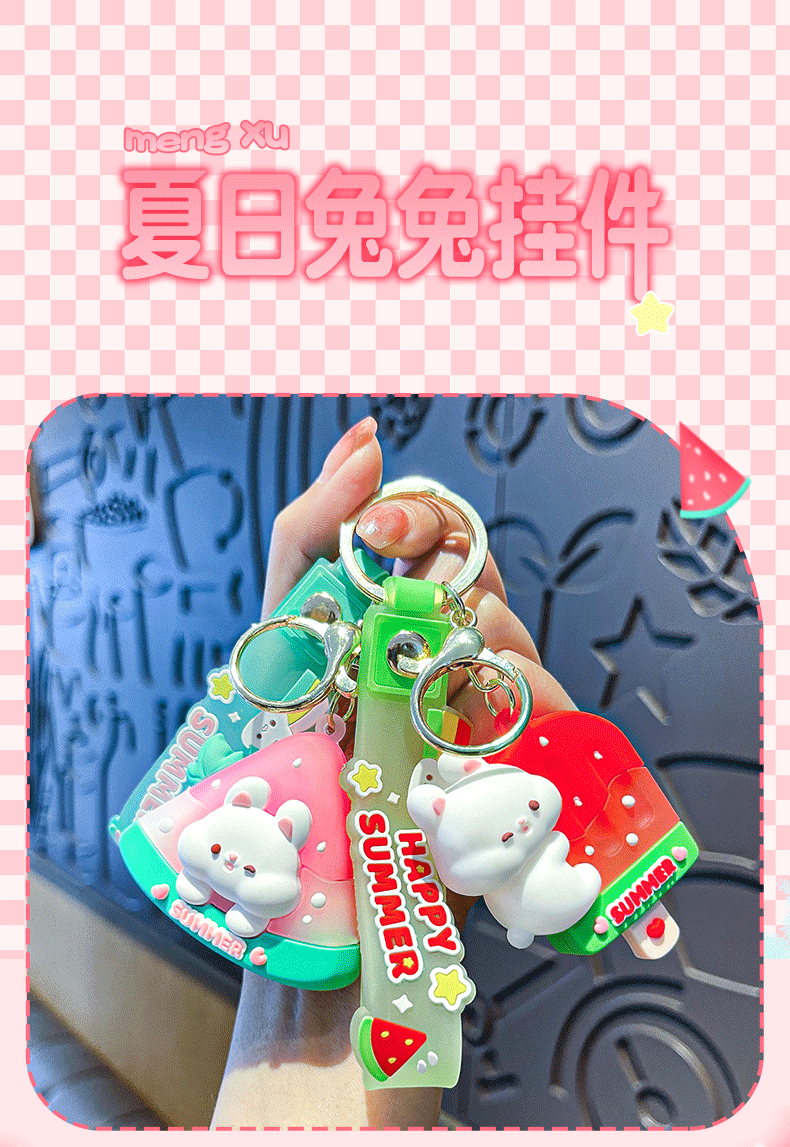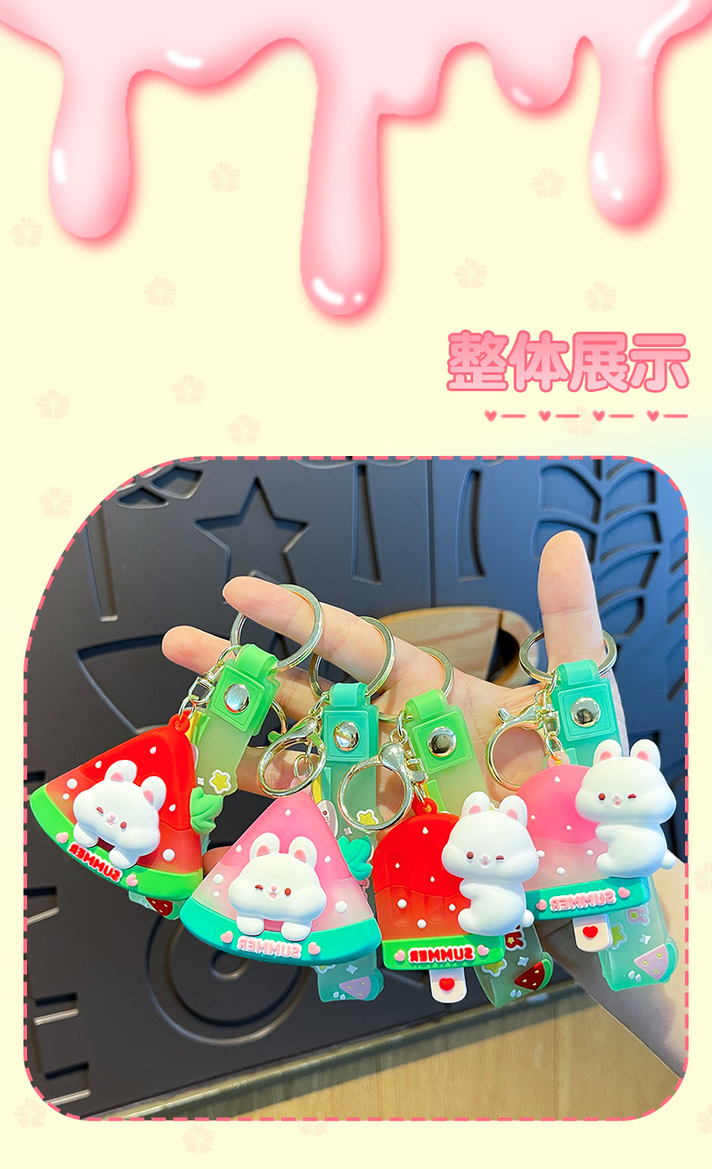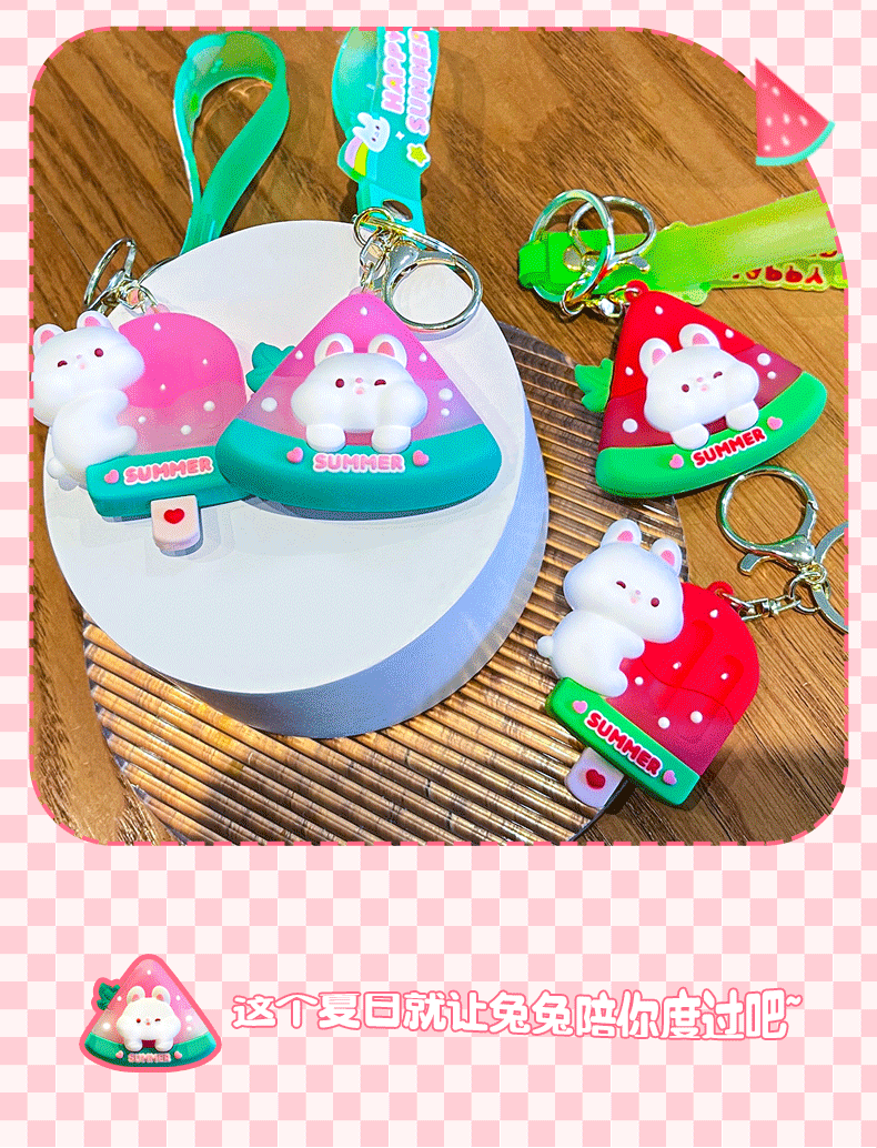 原创夏日兔兔西瓜冰卡通钥匙扣挂件女可爱公仔情侣小挂件书包挂饰