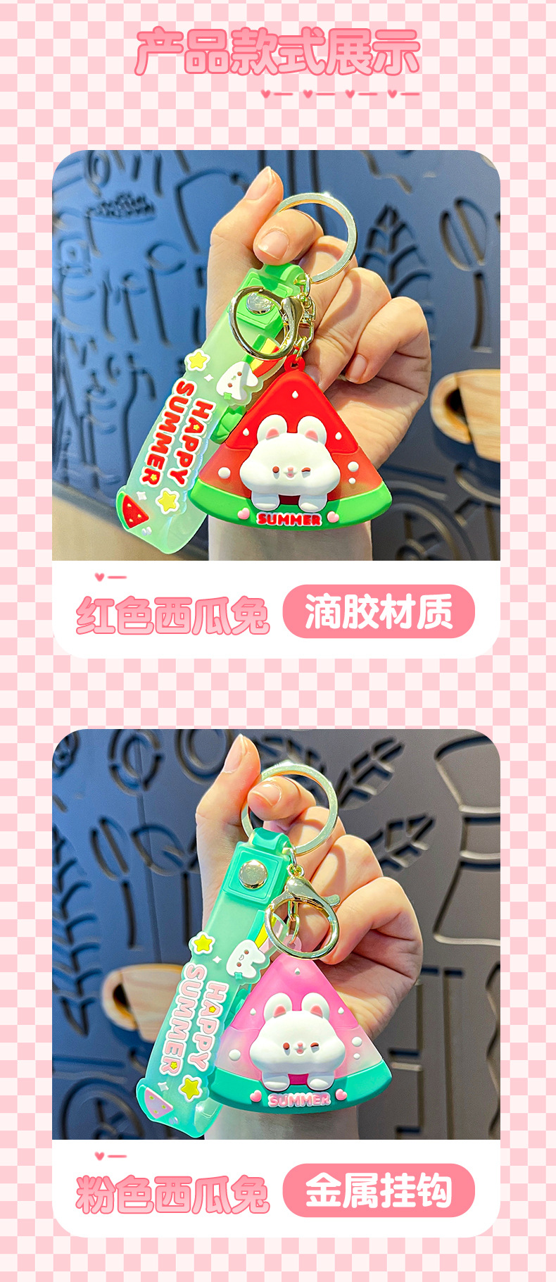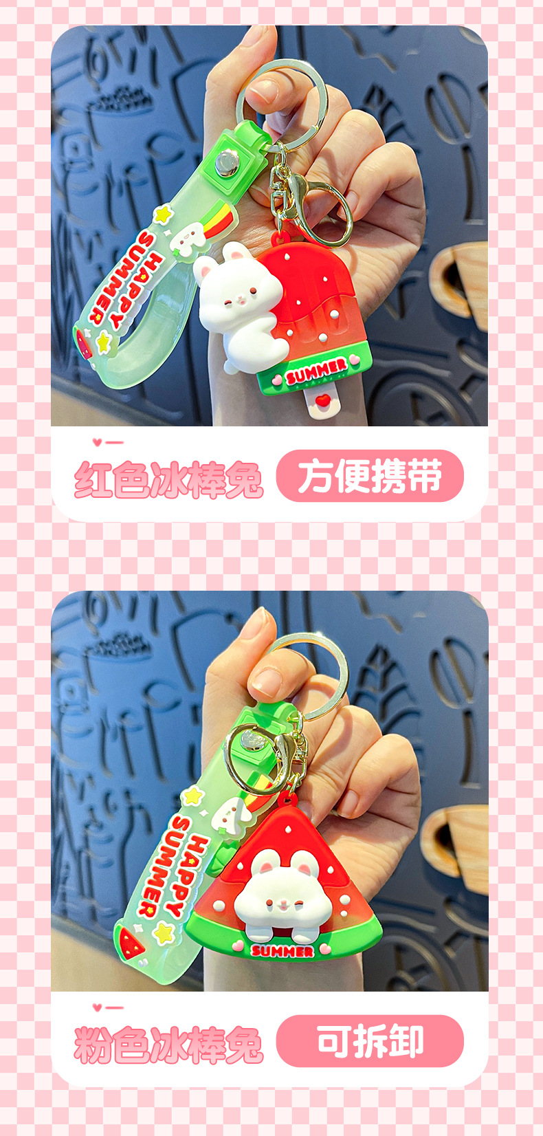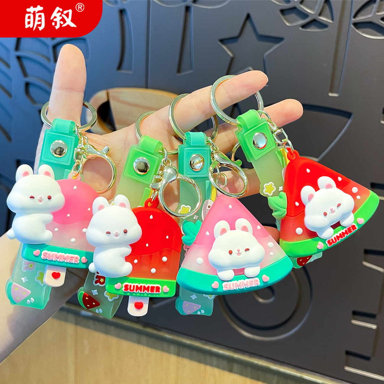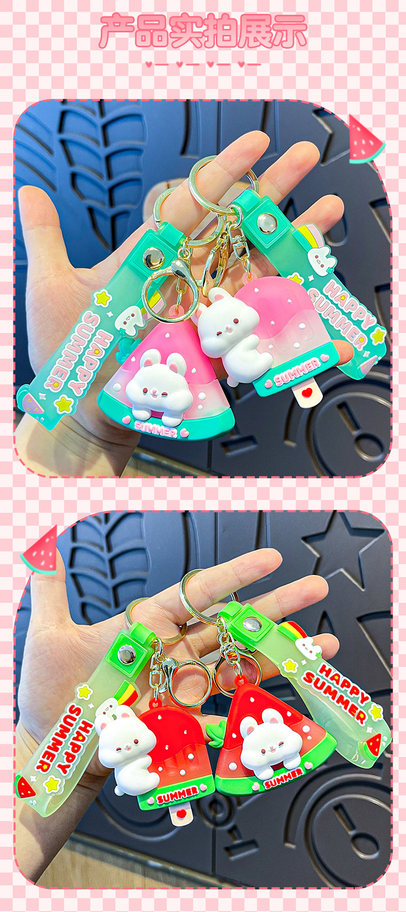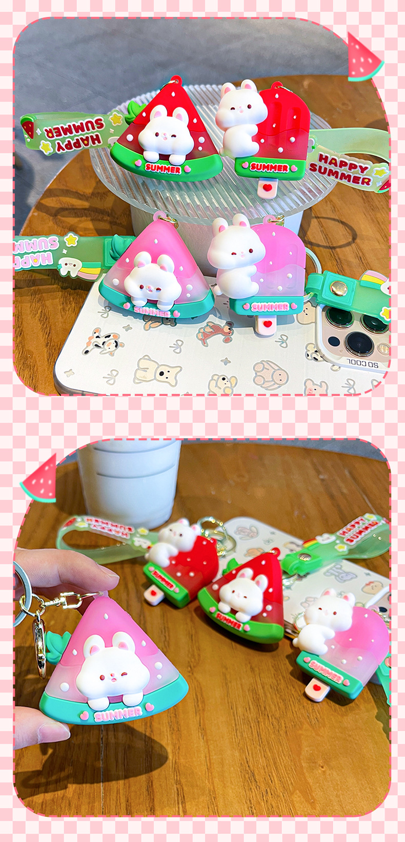 原创夏日兔兔西瓜冰卡通钥匙扣挂件女可爱公仔情侣小挂件书包挂饰