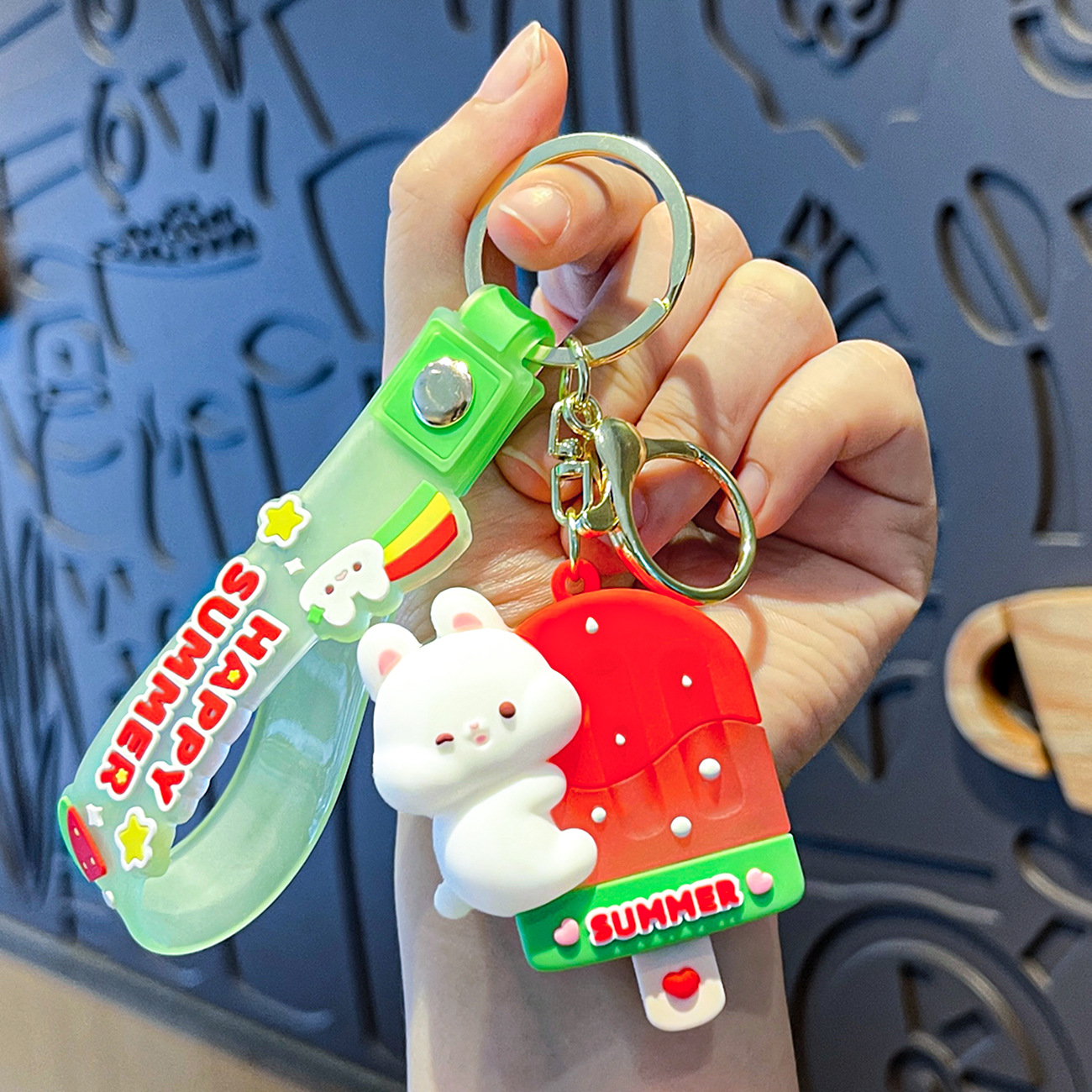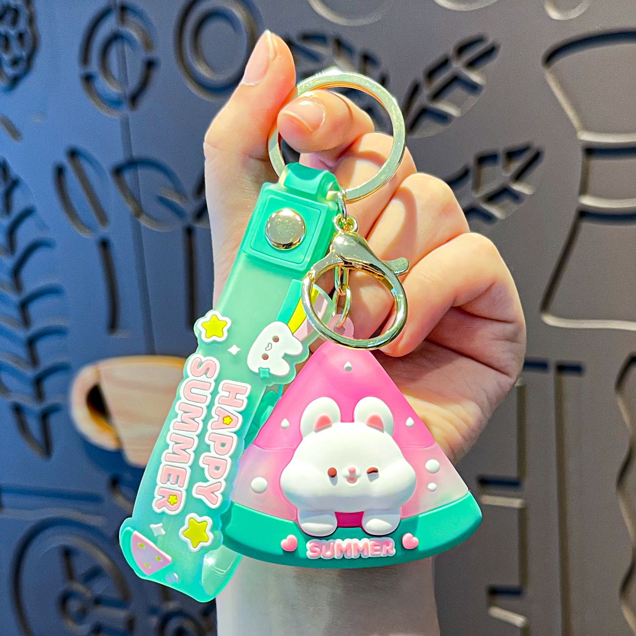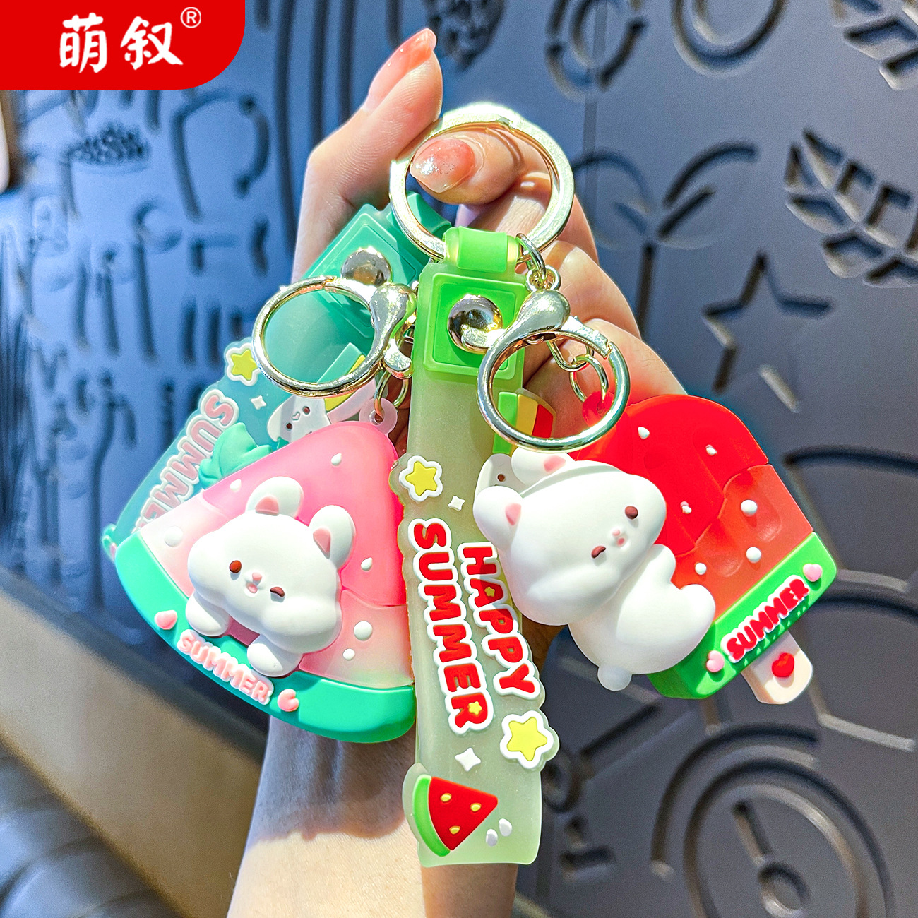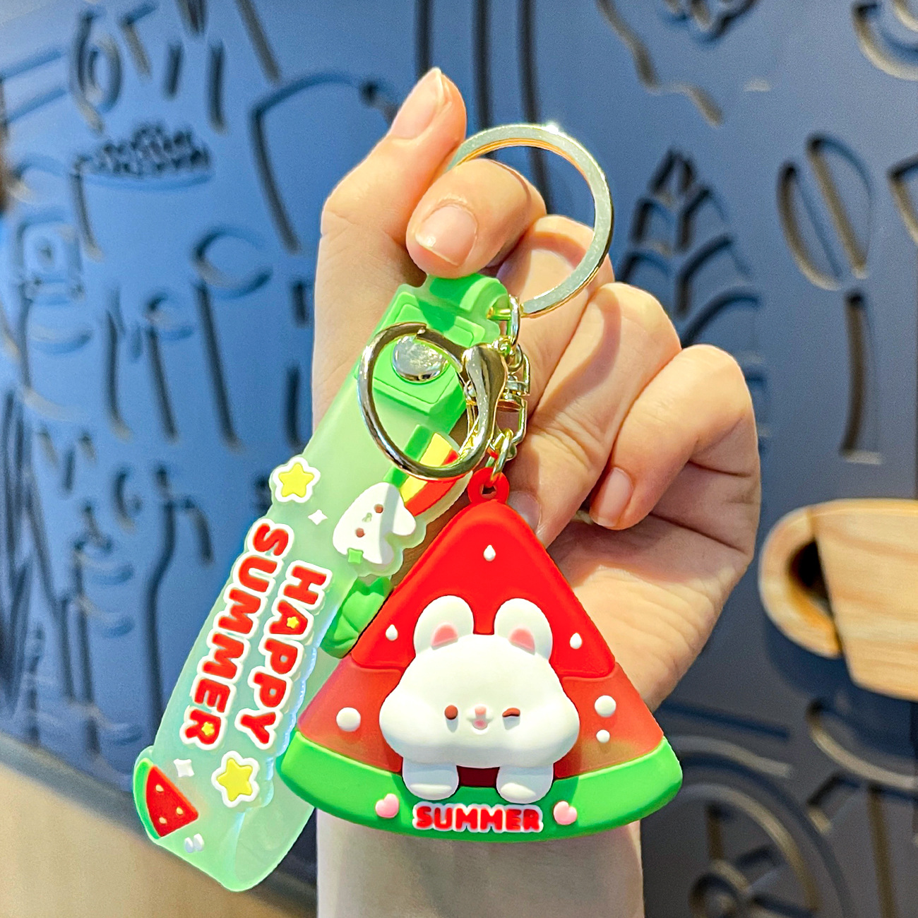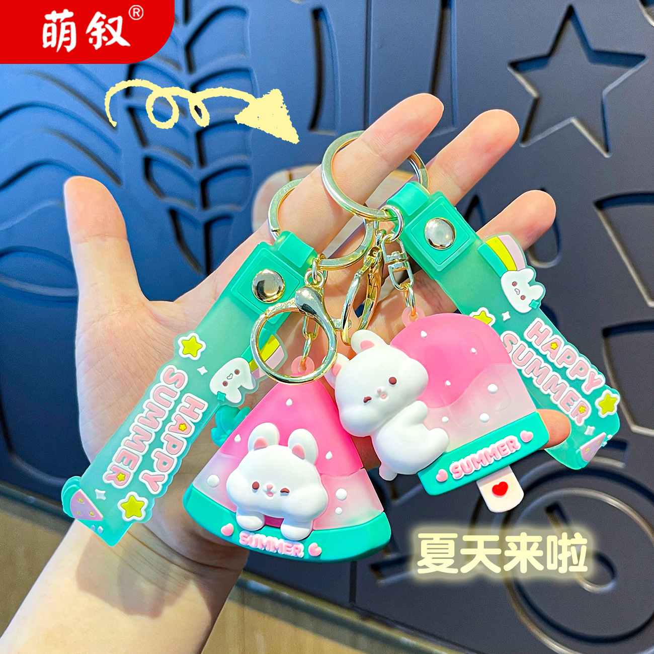 原创夏日兔兔西瓜冰卡通钥匙扣挂件女可爱公仔情侣小挂件书包挂饰