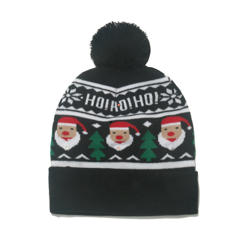 跨境秋冬时尚LED灯针织帽彩灯派对成人圣诞帽高档麋鹿图案毛线帽