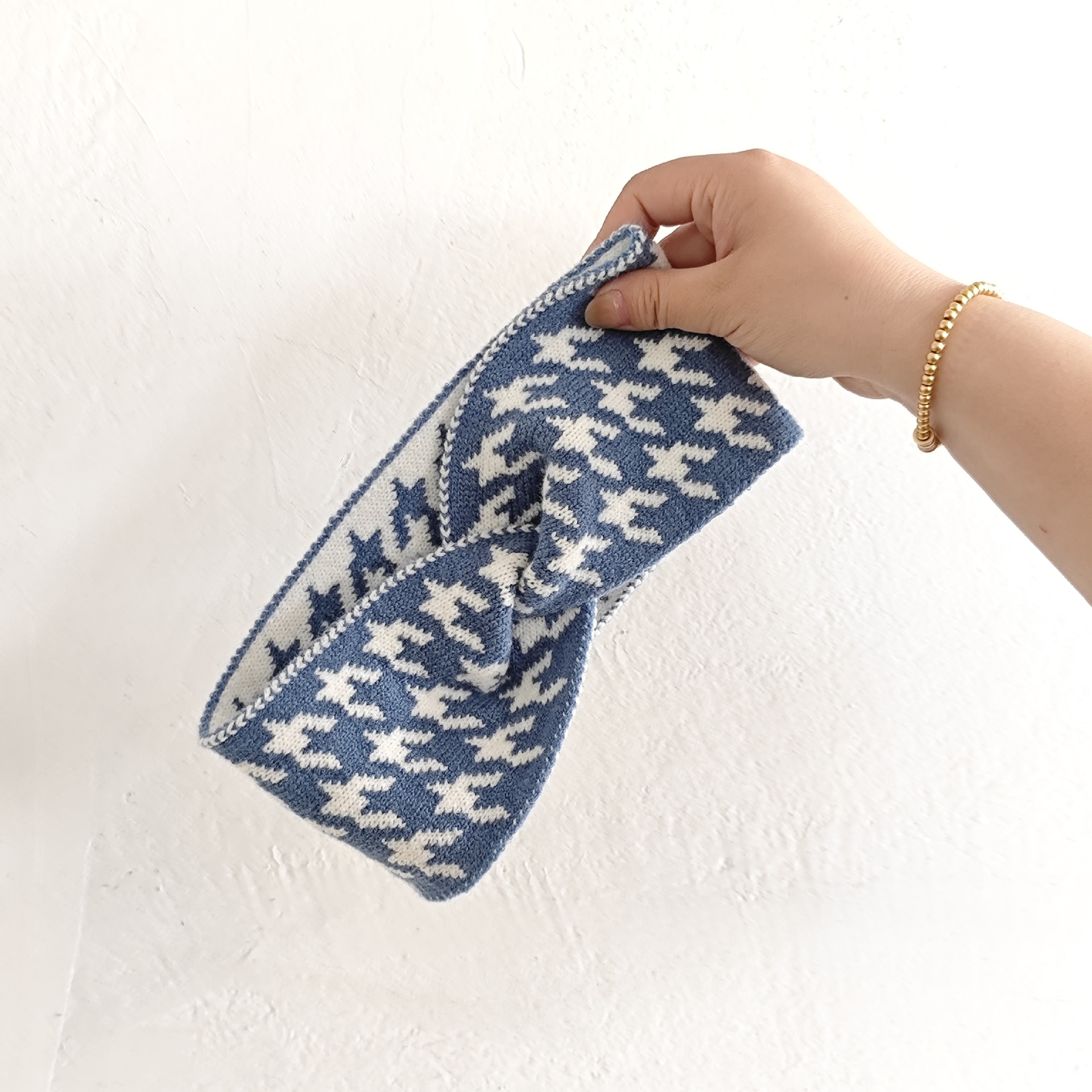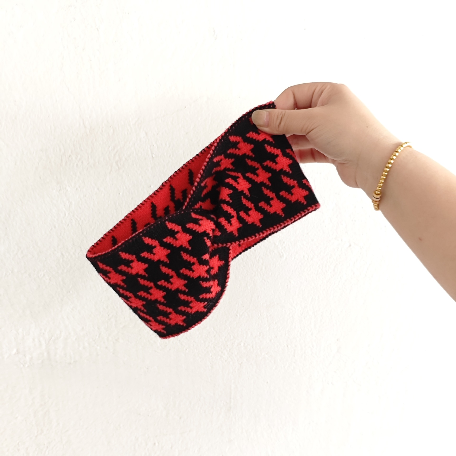 网红千鸟格毛线发带女复古针织交叉宽边发箍时尚百搭简约洗脸头饰
