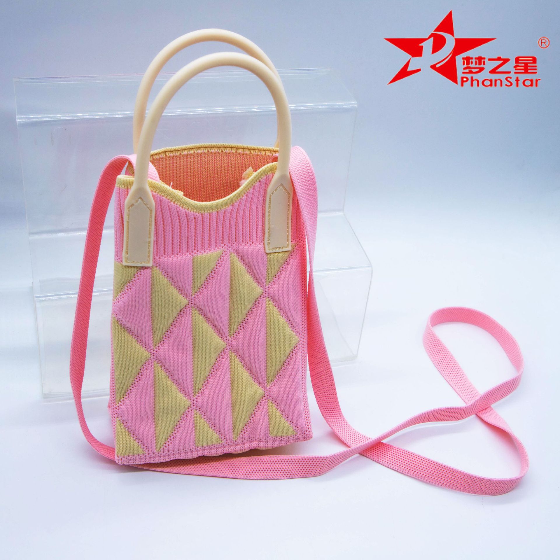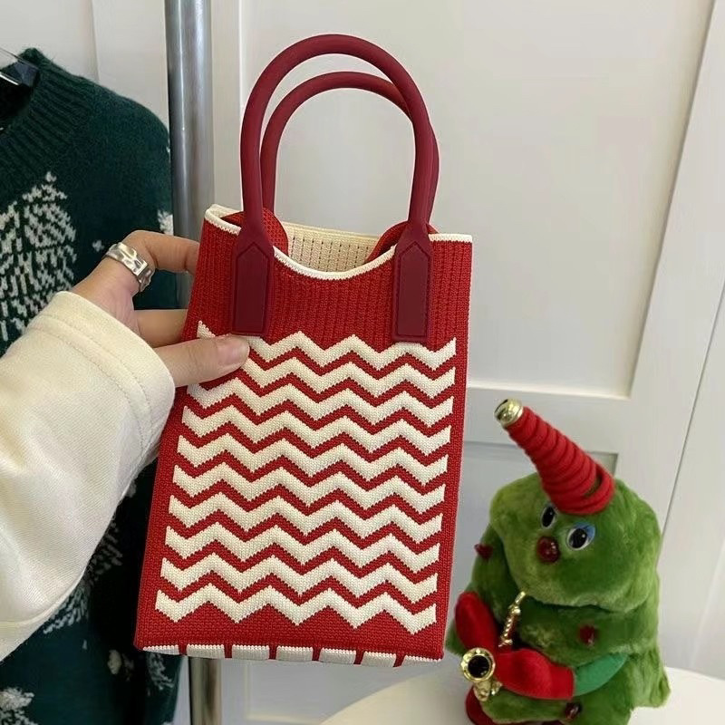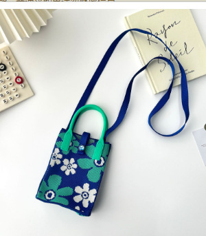 格子装放手机包女斜挎包迷你小包包小巧可爱轻便四季手提包针织包