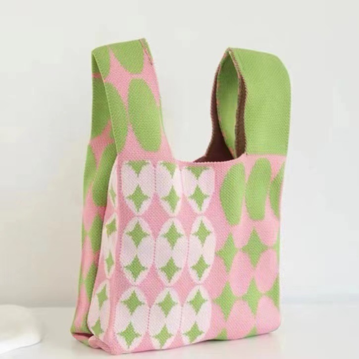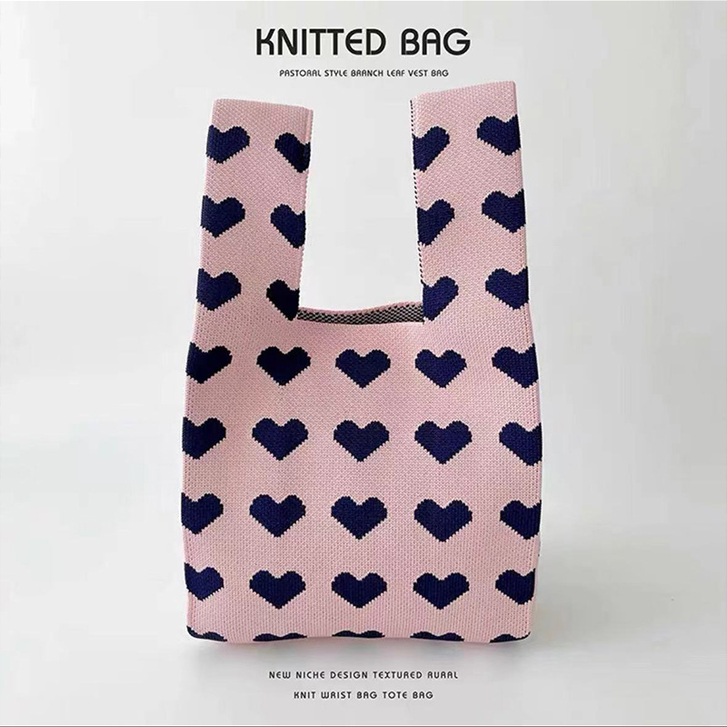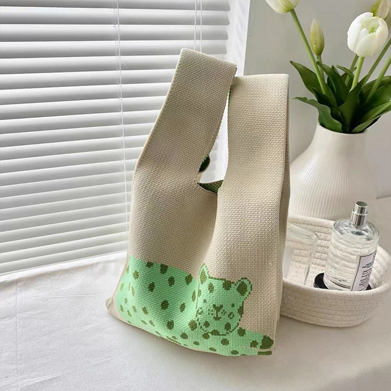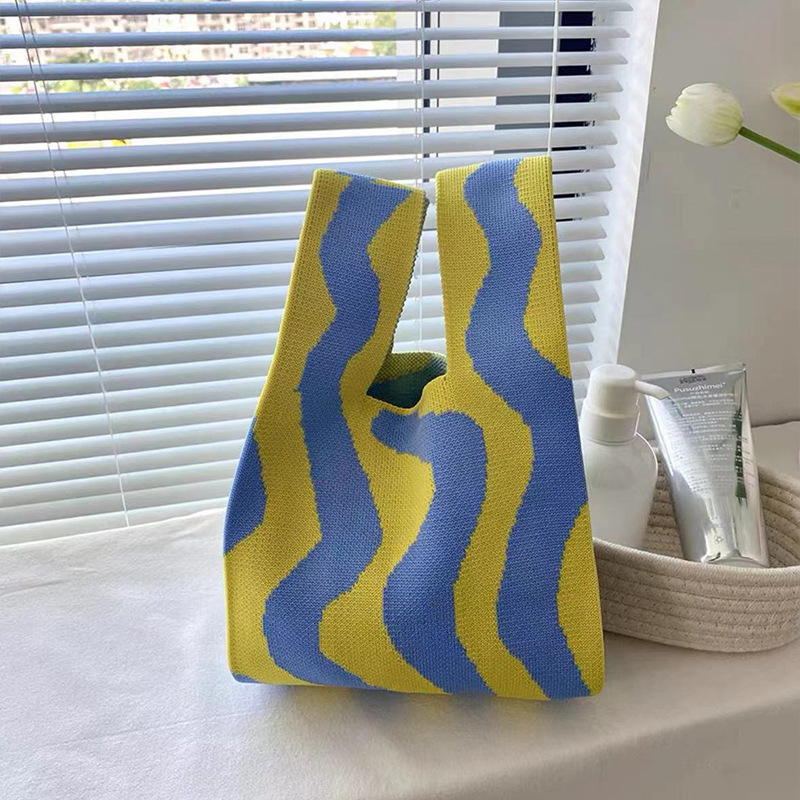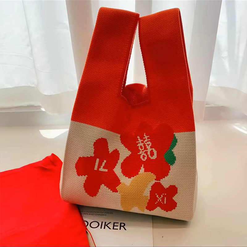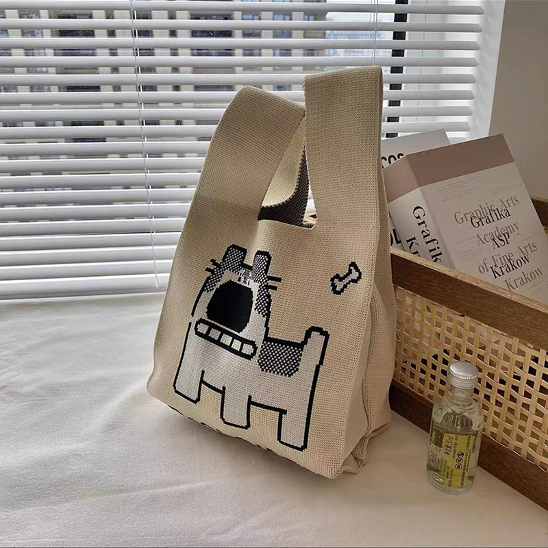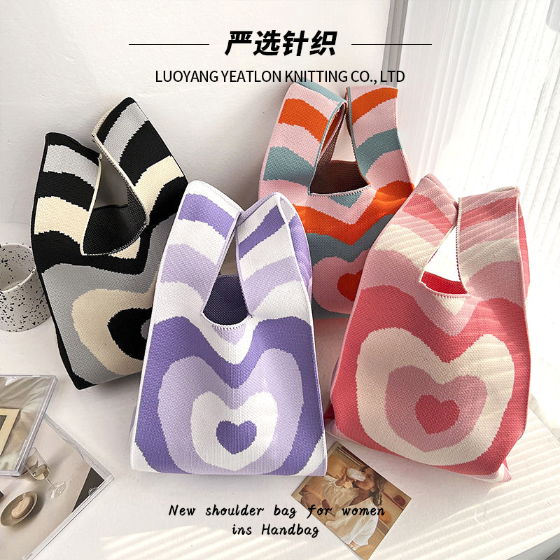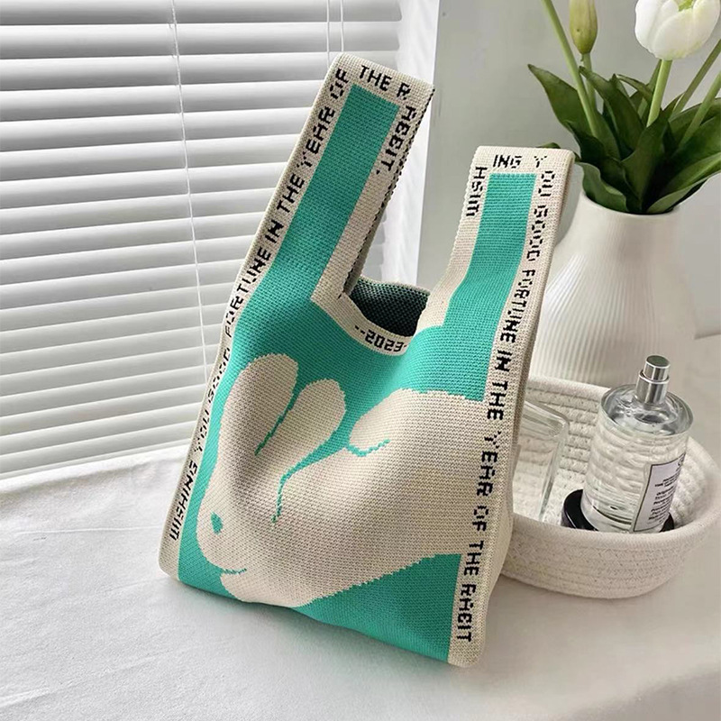 新款节日礼品 韩系ins少女卡通针织手提包百搭水桶包手拎包托特包