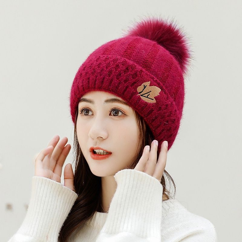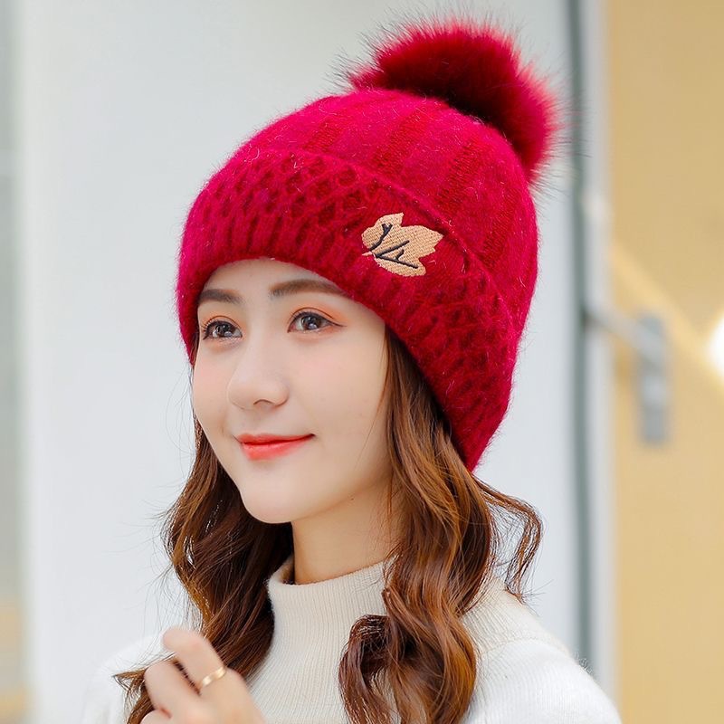 帽子女冬季防寒百搭韩版时尚兔毛线帽加绒保暖针织套头月子帽潮